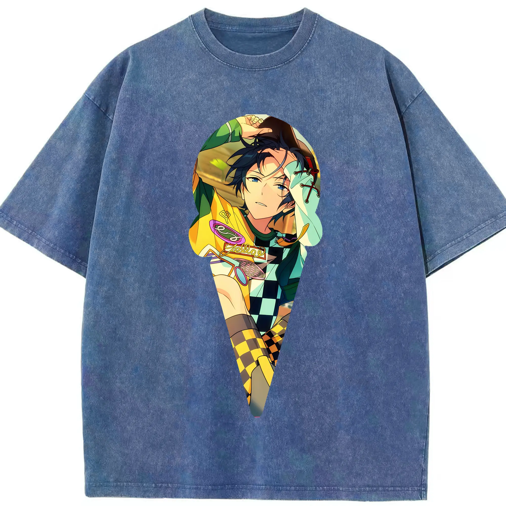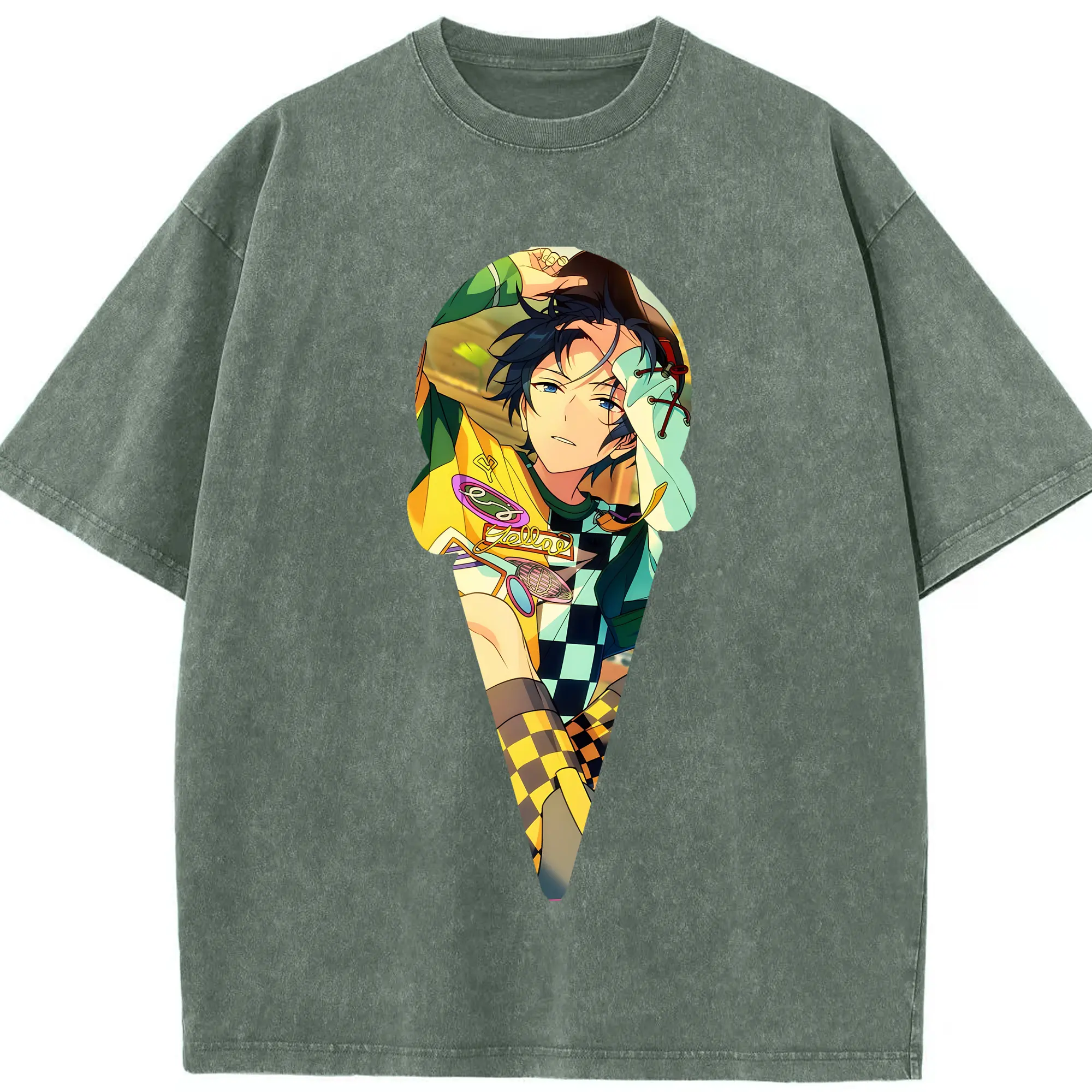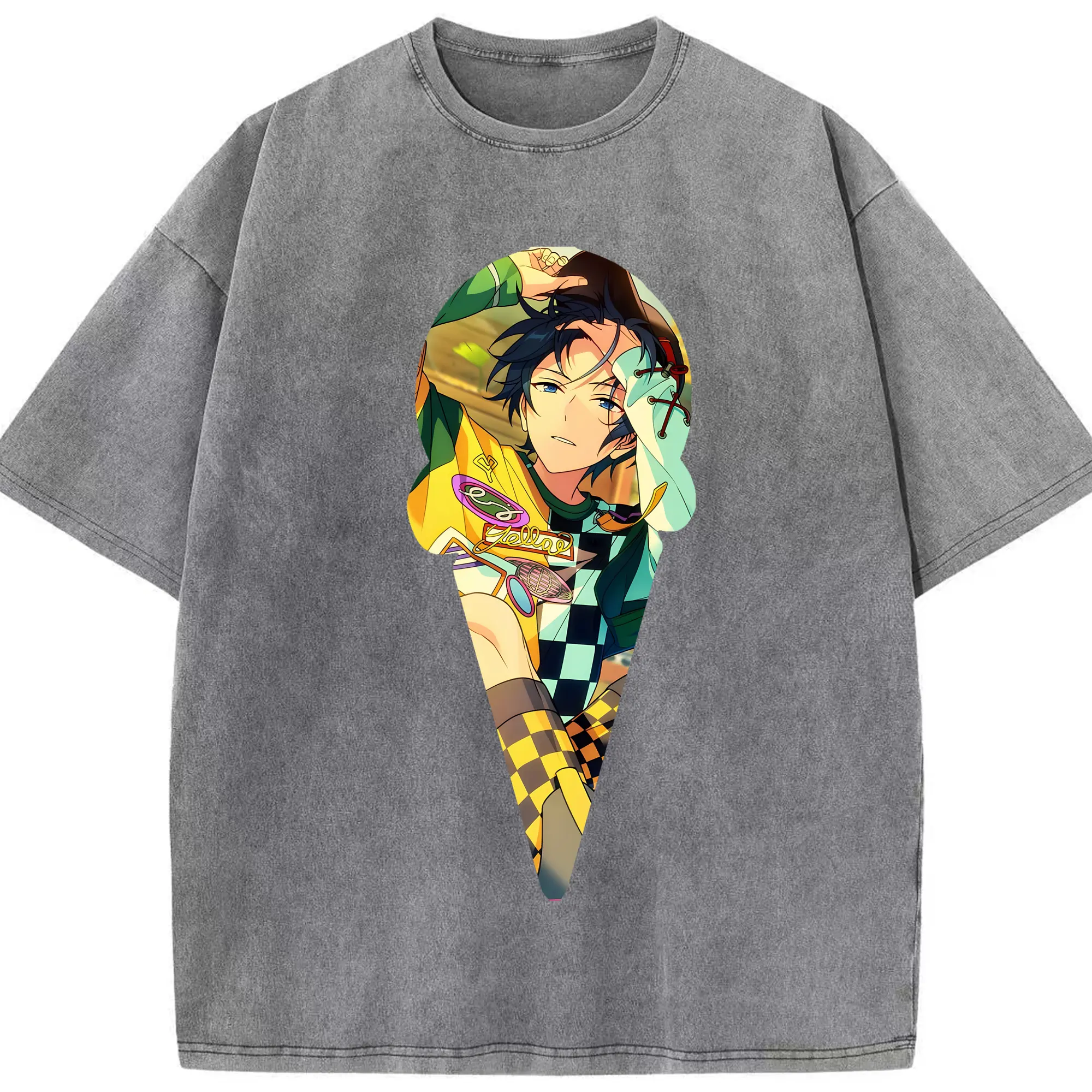 あんさん ぶる グッズ Trickstar 氷鷹北斗 - 綿100% ヴィンテージ風 半袖Tシャツ ・ 背面プリント ・ 柔らか肌触り ・ 通気性 快適 ・ スポーツ カジュアル 外出用