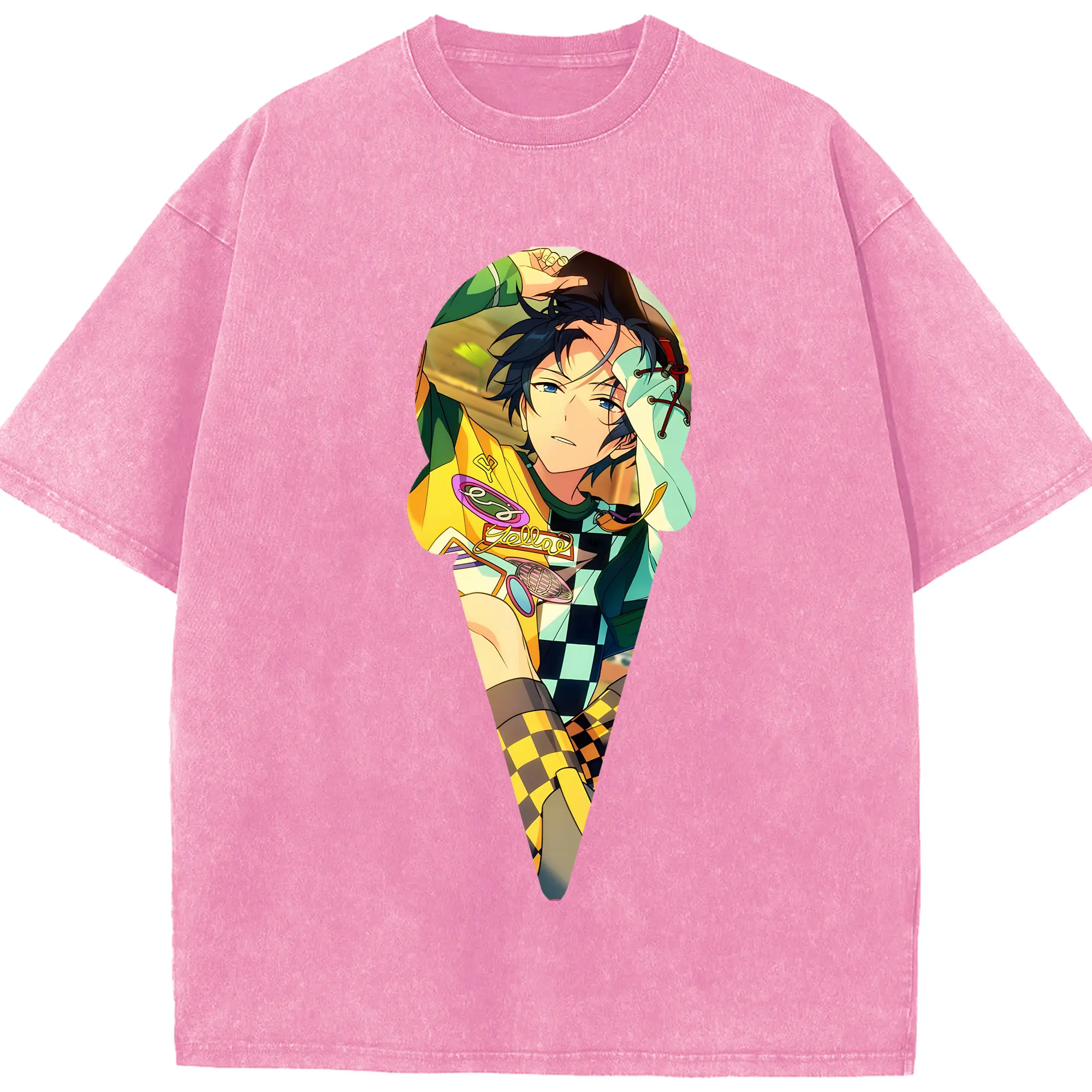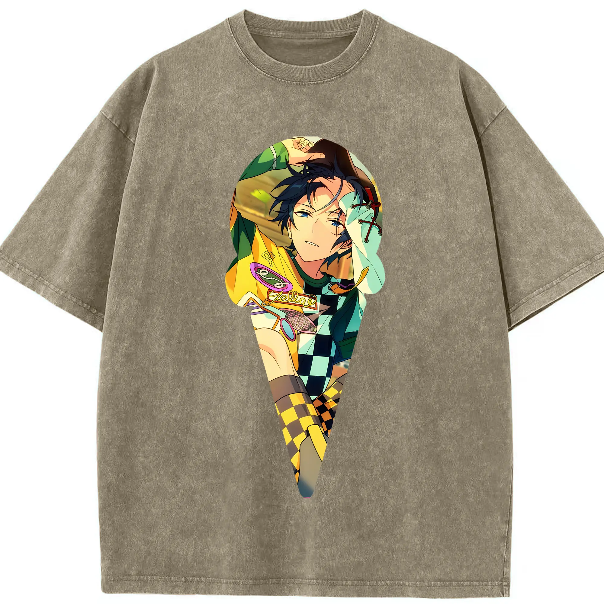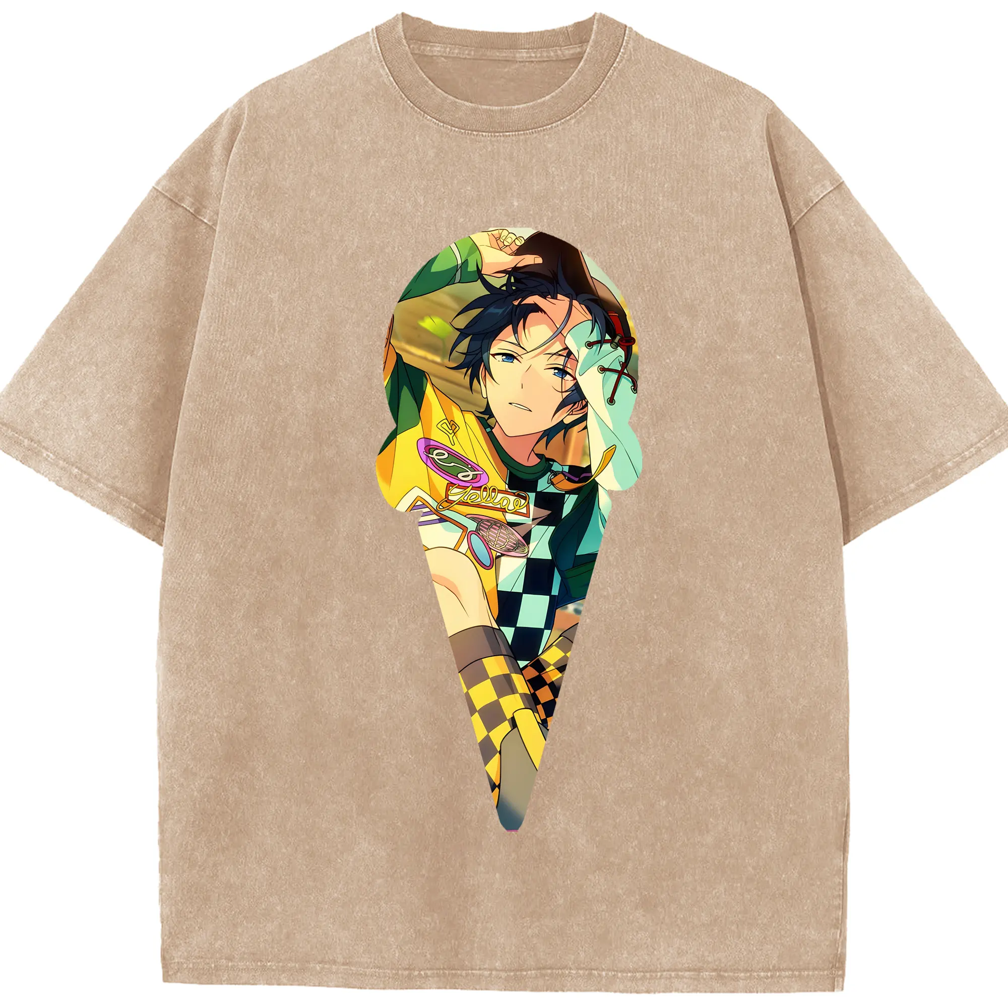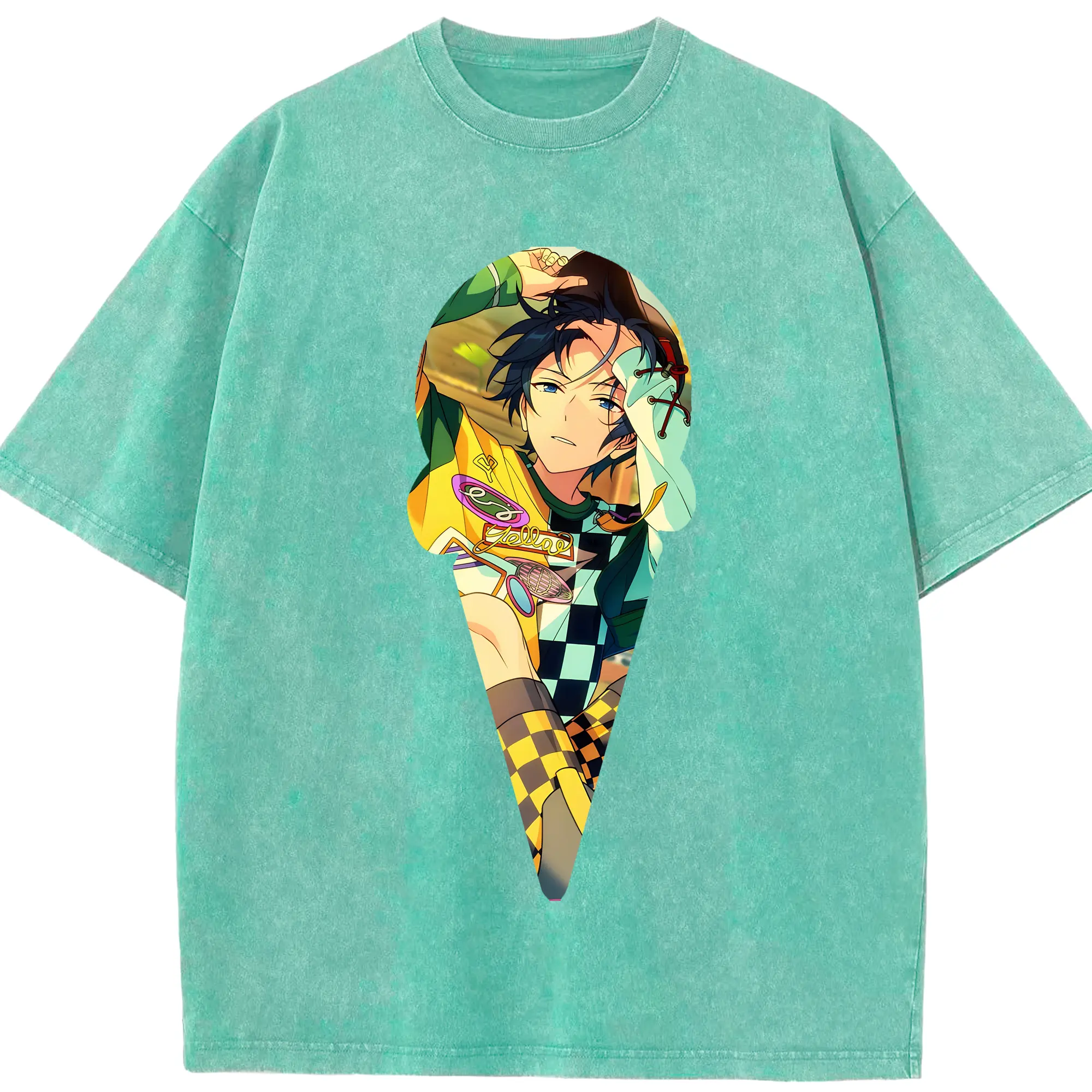 あんさん ぶる グッズ Trickstar 氷鷹北斗 - 綿100% ヴィンテージ風 半袖Tシャツ ・ 背面プリント ・ 柔らか肌触り ・ 通気性 快適 ・ スポーツ カジュアル 外出用