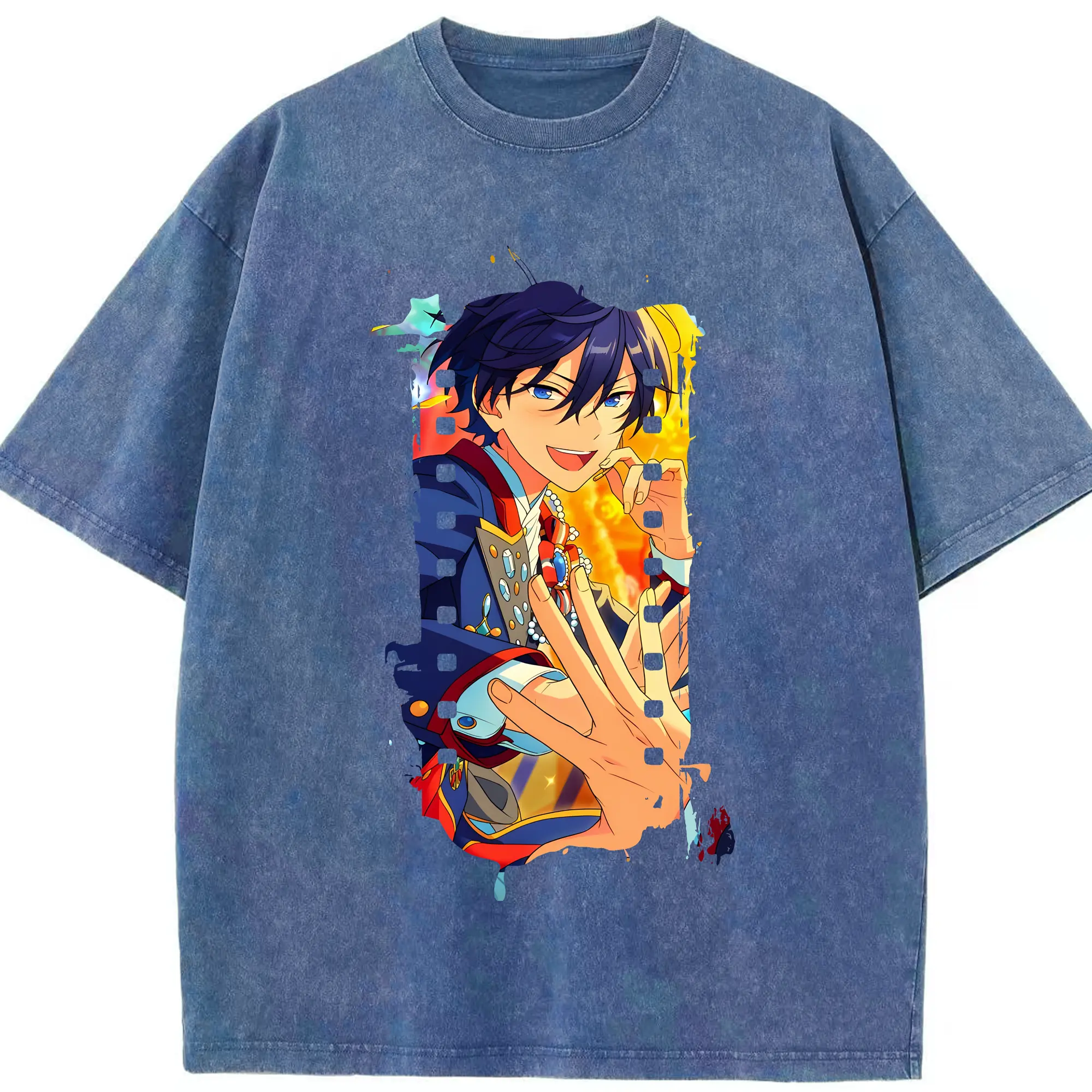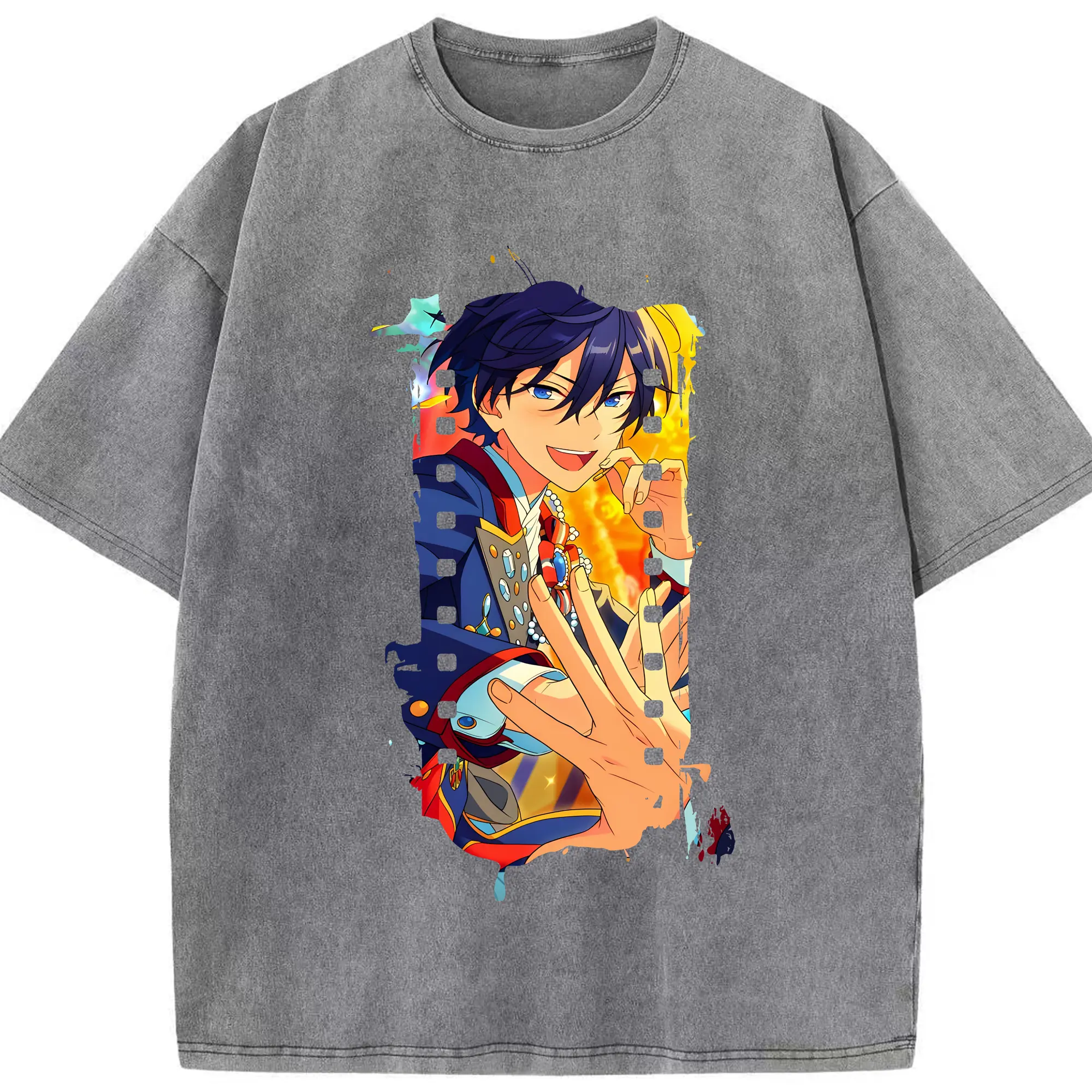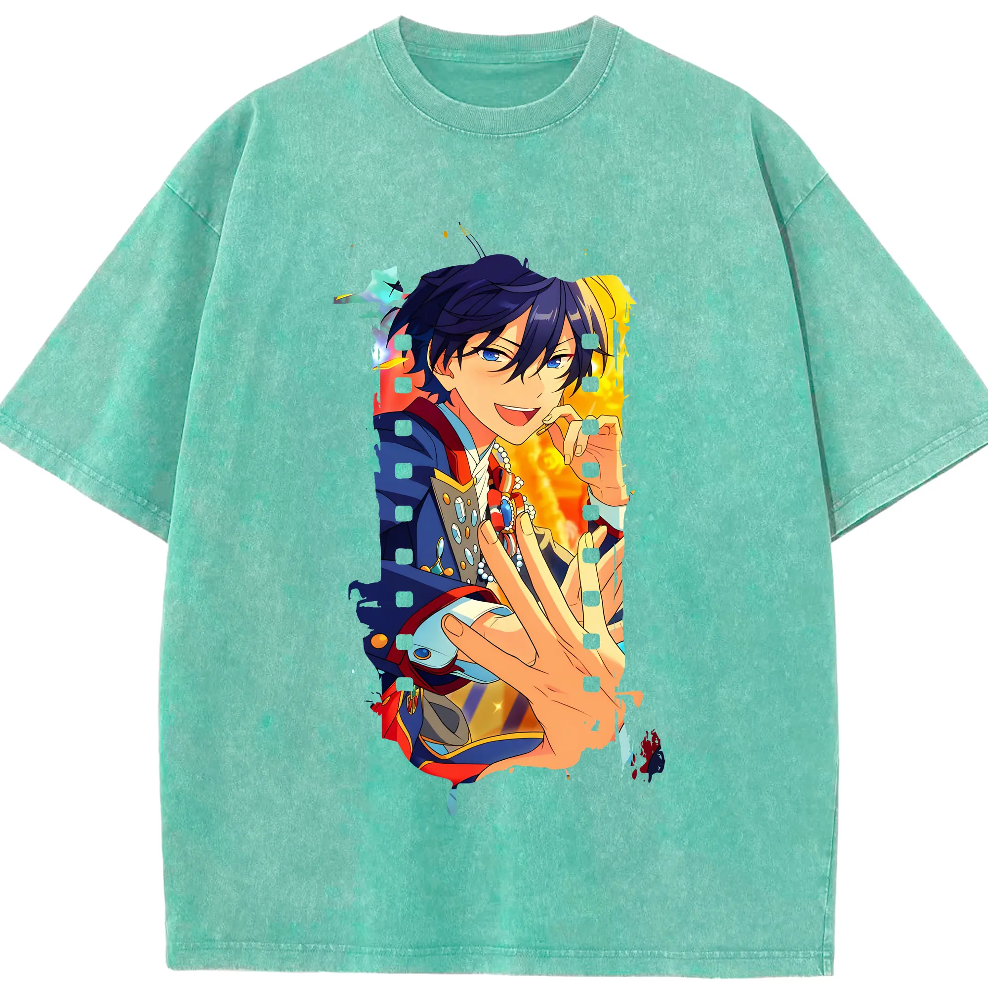 あんさん ぶる グッズ Trickstar 氷鷹北斗 - 綿100% ヴィンテージ風 半袖Tシャツ ・ 背面プリント ・ 柔らか肌触り ・ 通気性 快適 ・ スポーツ カジュアル 外出用
