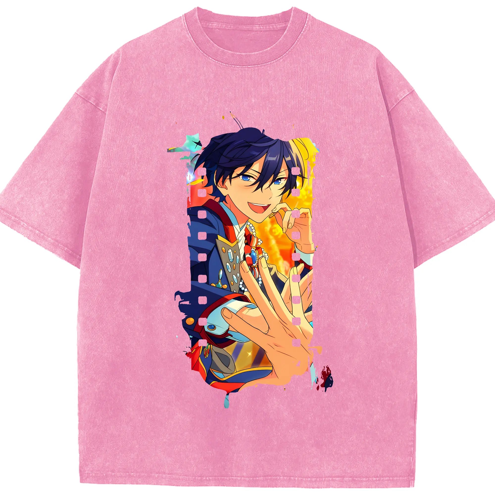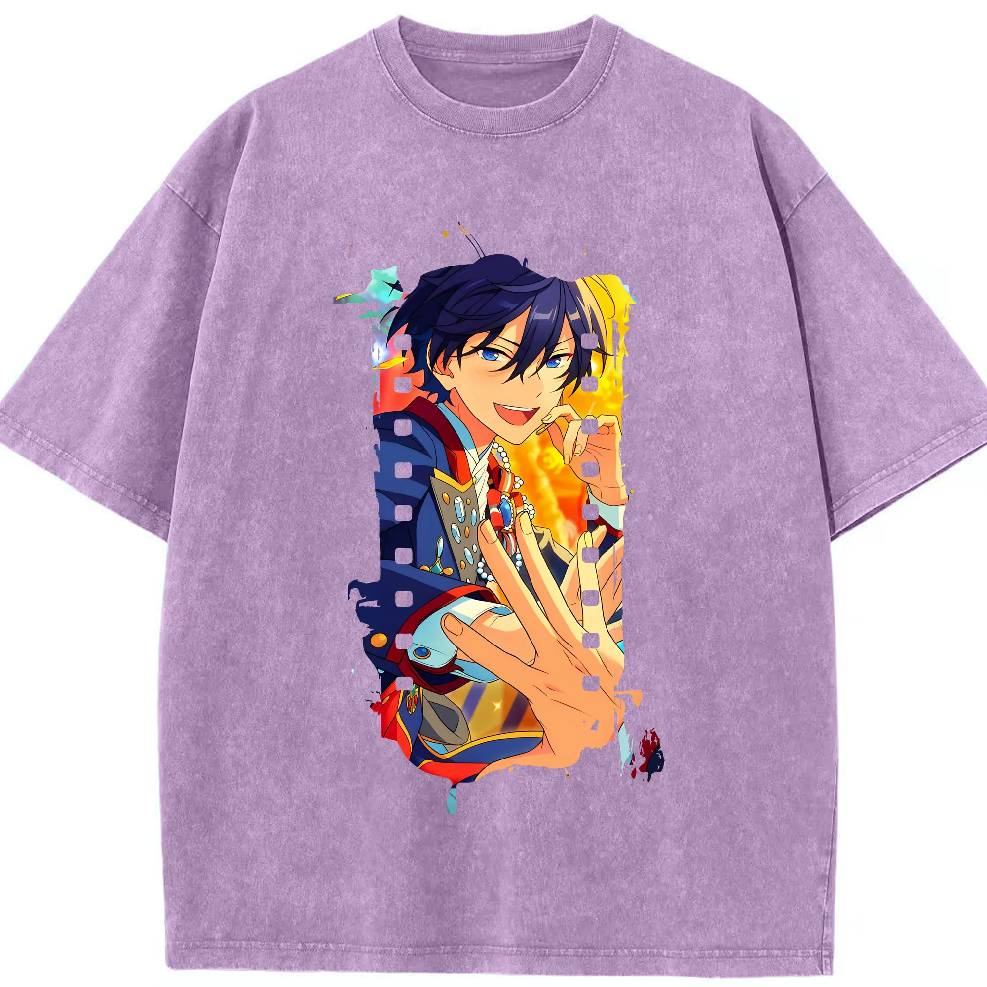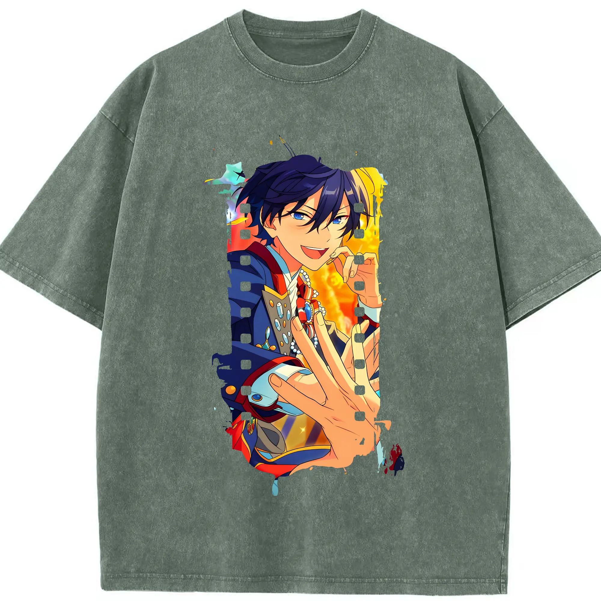 あんさん ぶる グッズ Trickstar 氷鷹北斗 - 綿100% ヴィンテージ風 半袖Tシャツ ・ 背面プリント ・ 柔らか肌触り ・ 通気性 快適 ・ スポーツ カジュアル 外出用