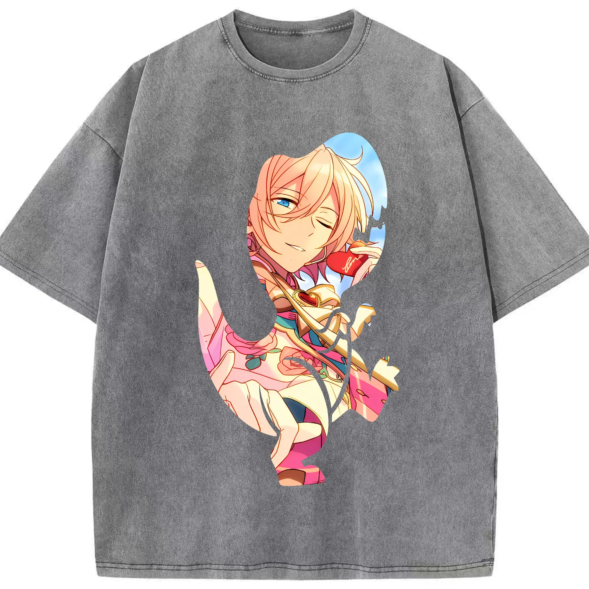 あんさん ぶる グッズ fine 天祥院英智 - 綿100% ヴィンテージ風 半袖Tシャツ ・ 背面プリント ・ 柔らか肌触り ・ 通気性 快適 ・ スポーツ カジュアル 外出用