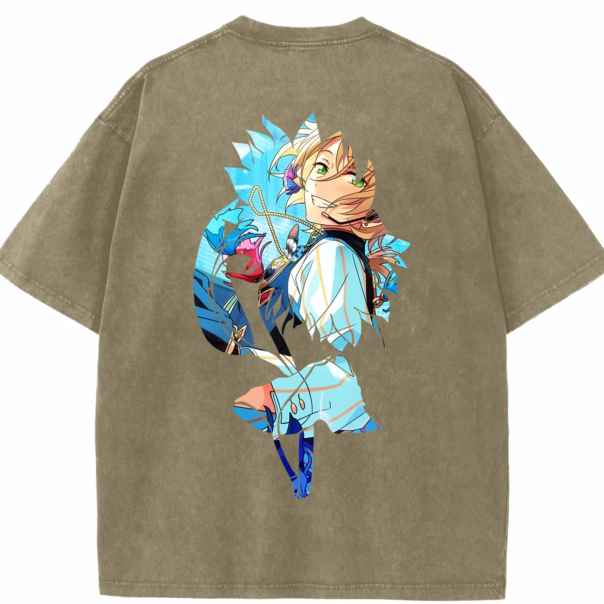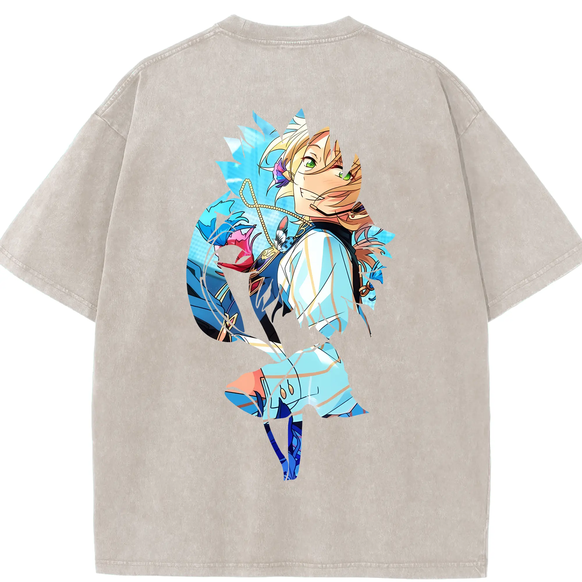 鳴潮 グッズ シャコンヌ - 綿100% ヴィンテージ風 半袖Tシャツ ・ 背面プリント ・ 柔らか肌触り ・ 通気性 快適 ・ スポーツ カジュアル 外出用