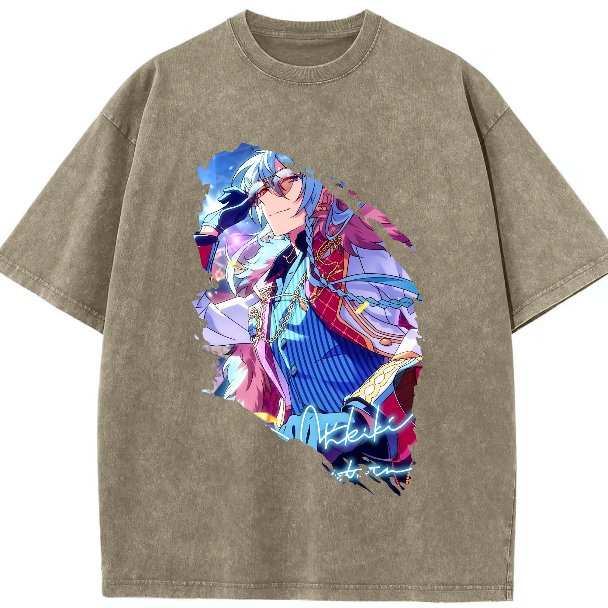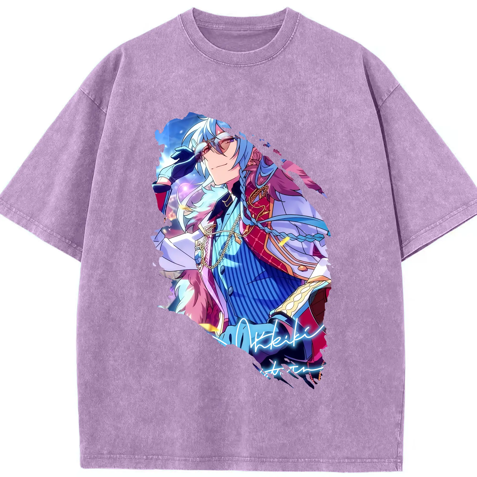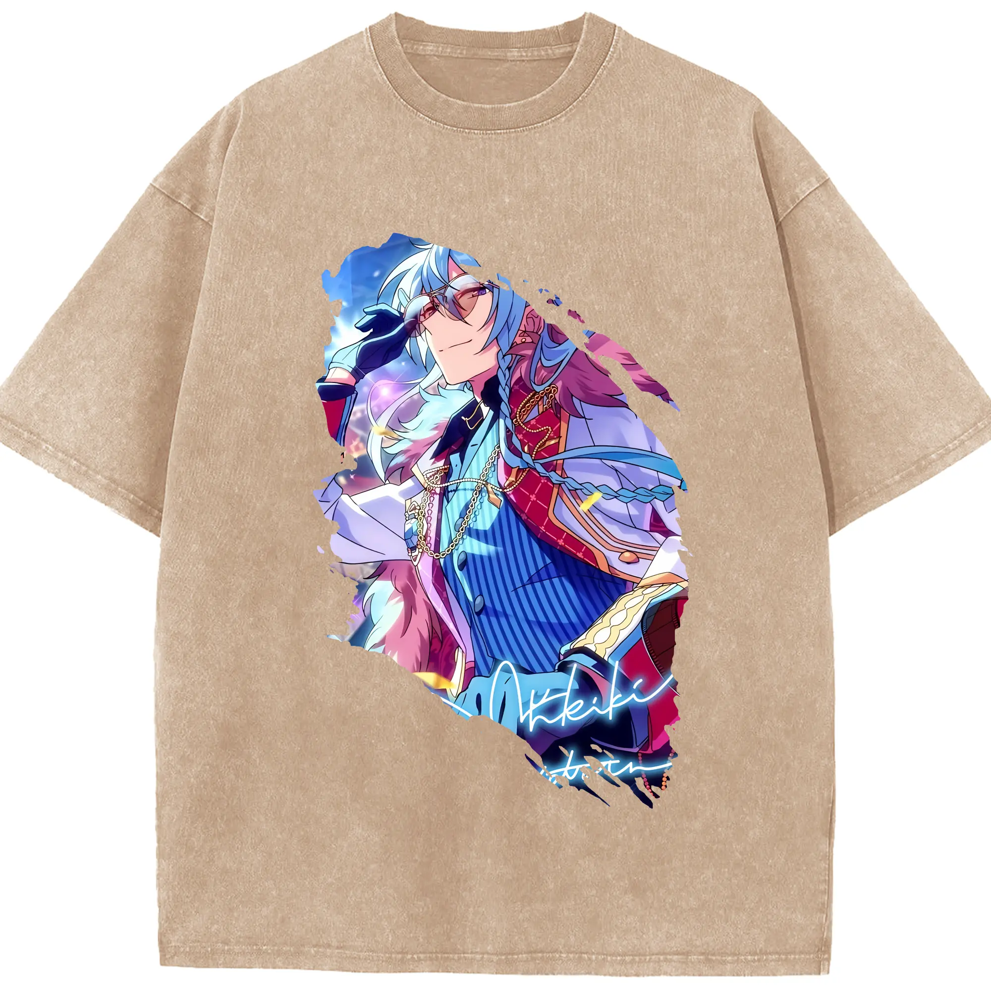ブルーアーカイブ グッズ 聖園ミカ - 綿100% ヴィンテージ風 半袖Tシャツ ・ フロントプリント ・ 柔らか肌触り ・ 通気性 快適 ・ スポーツ カジュアル 外出用