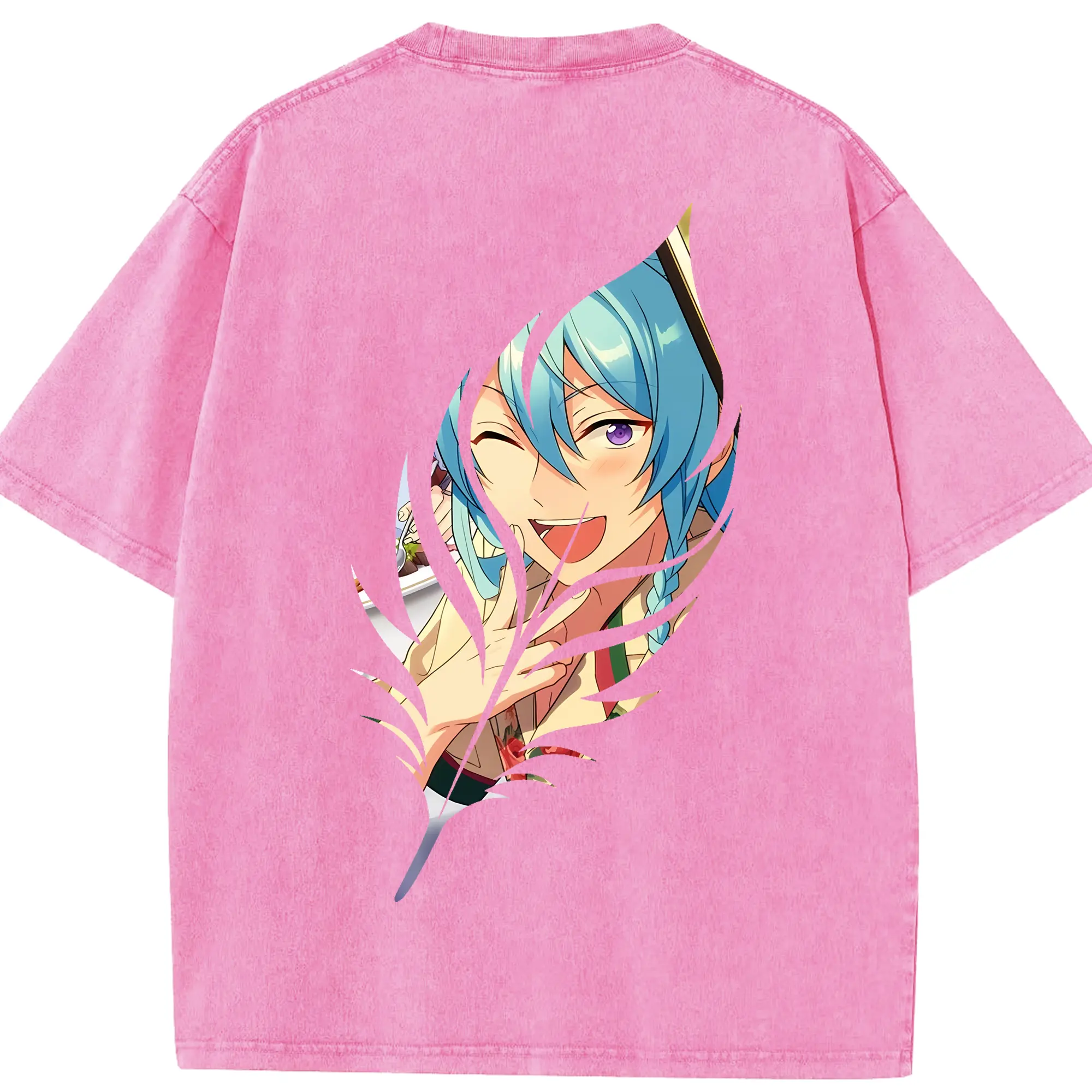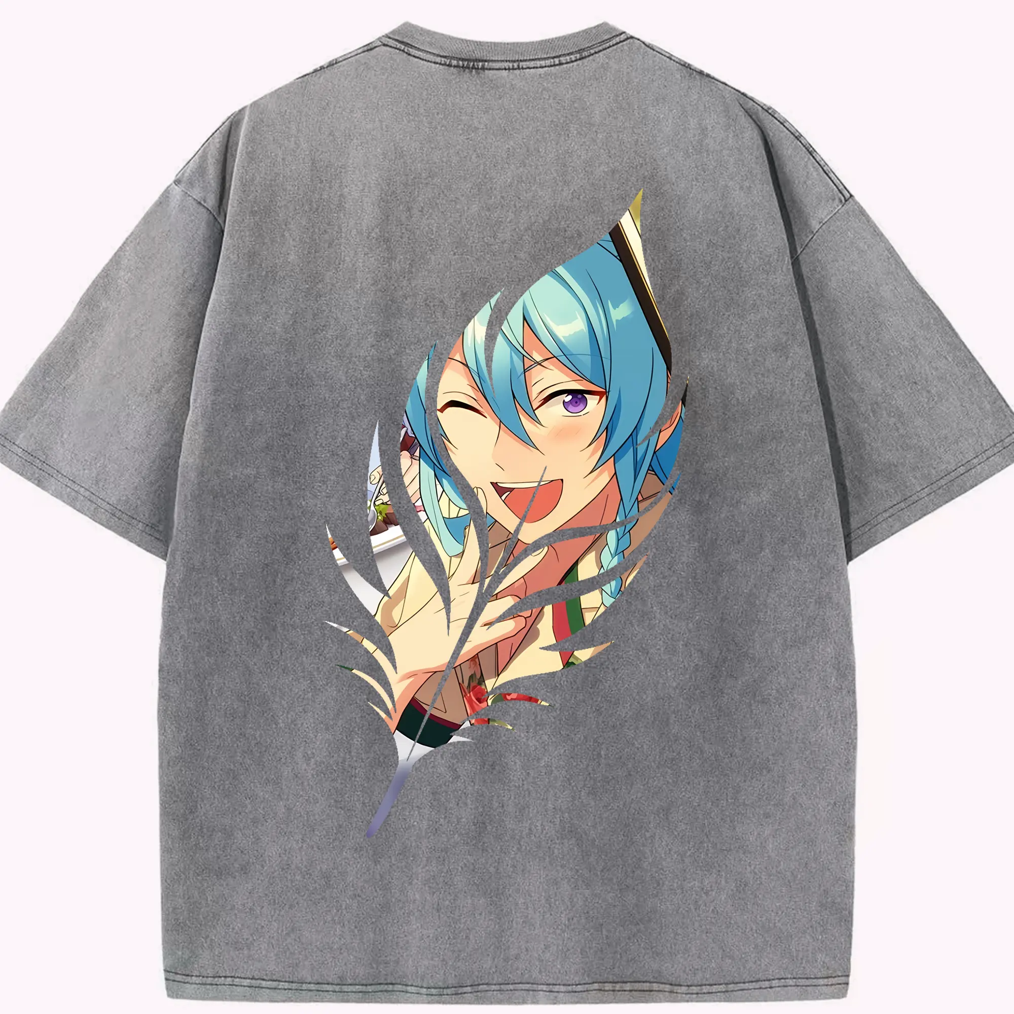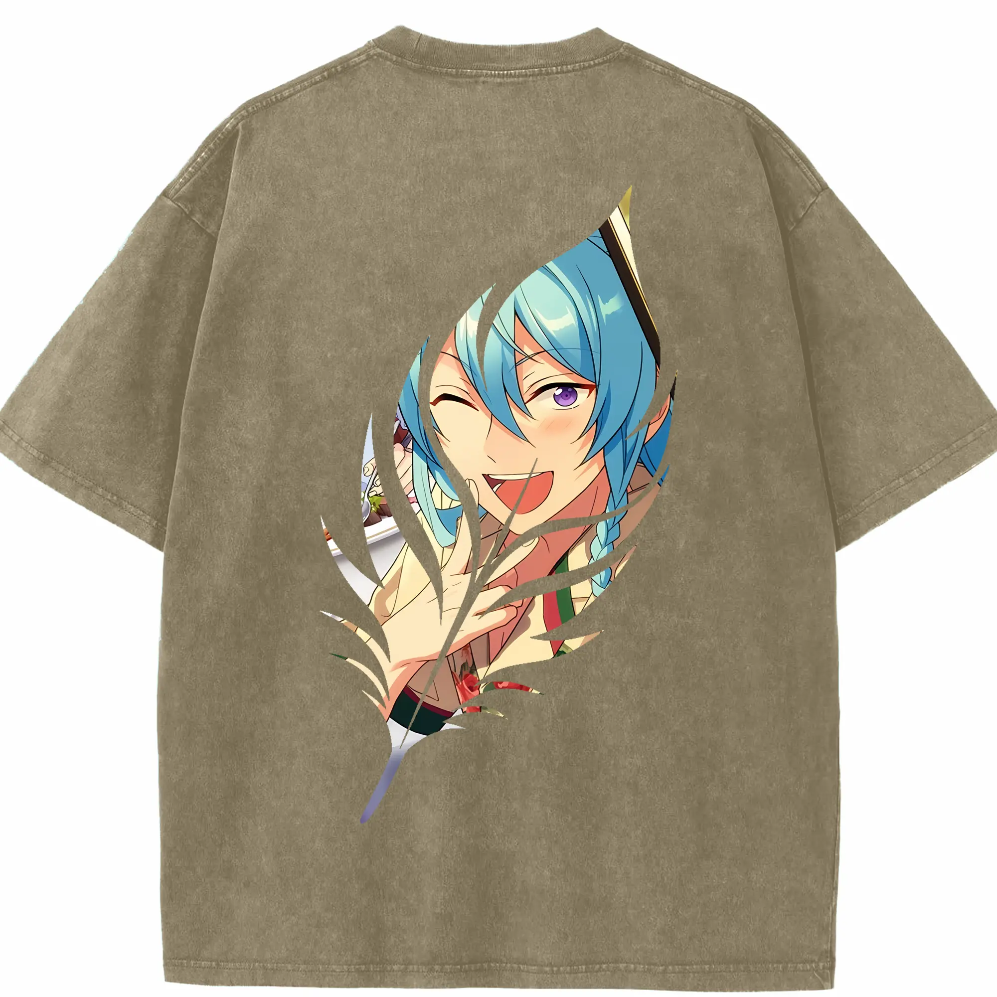 ブルーアーカイブ グッズ 小鳥遊ホシノ - 綿100% ヴィンテージ風 半袖Tシャツ ・ 背面プリント ・ 柔らか肌触り ・ 通気性 快適 ・ スポーツ カジュアル 外出用
