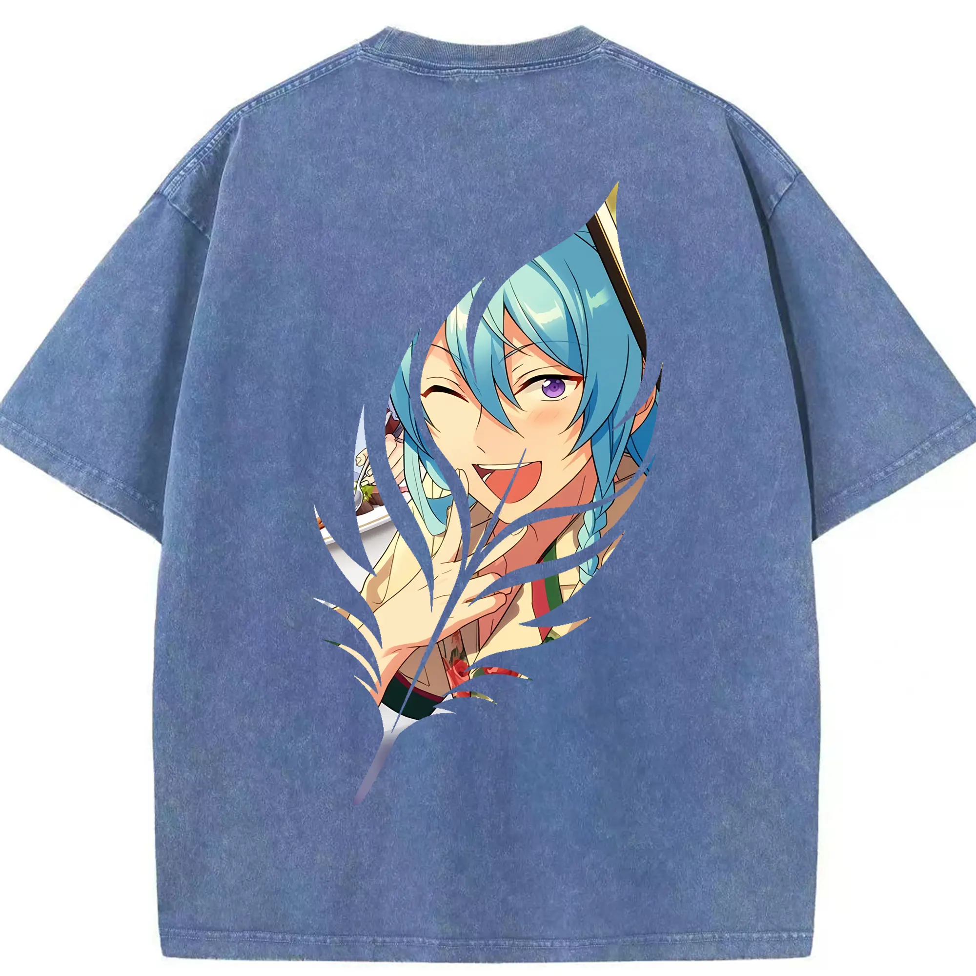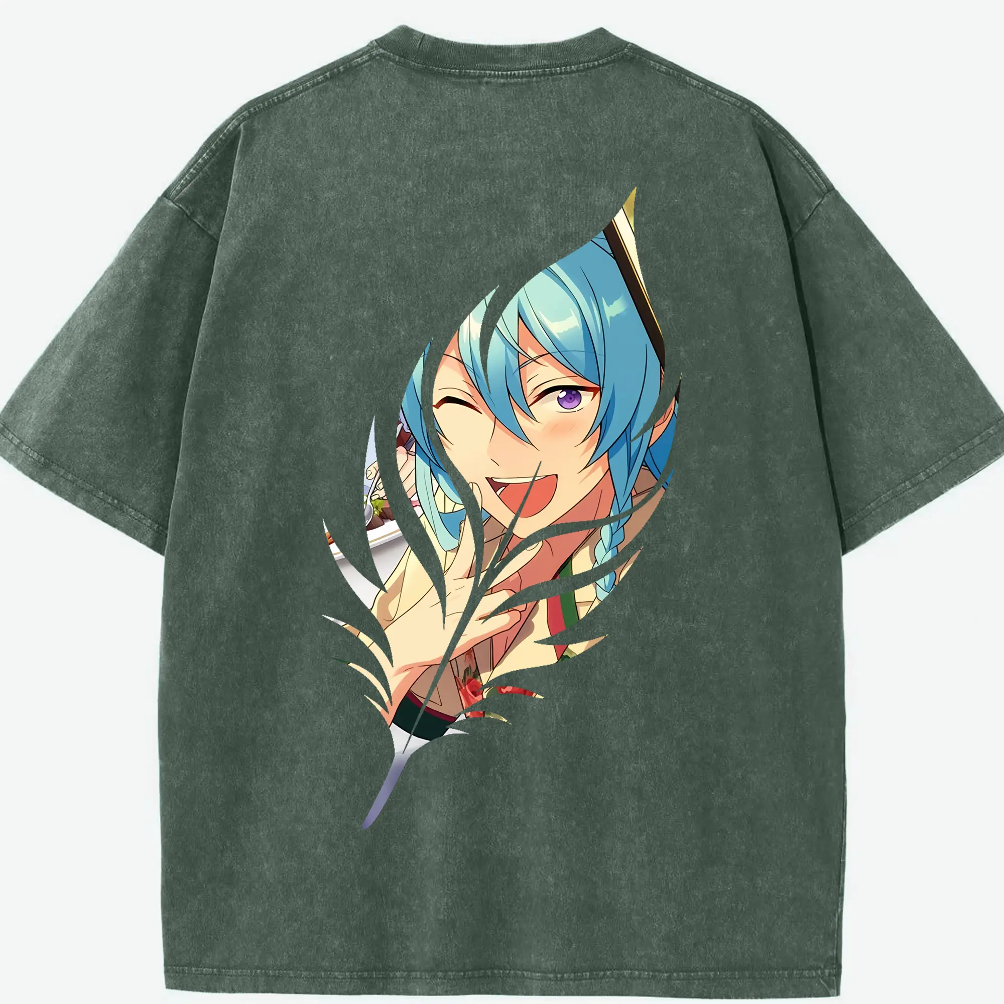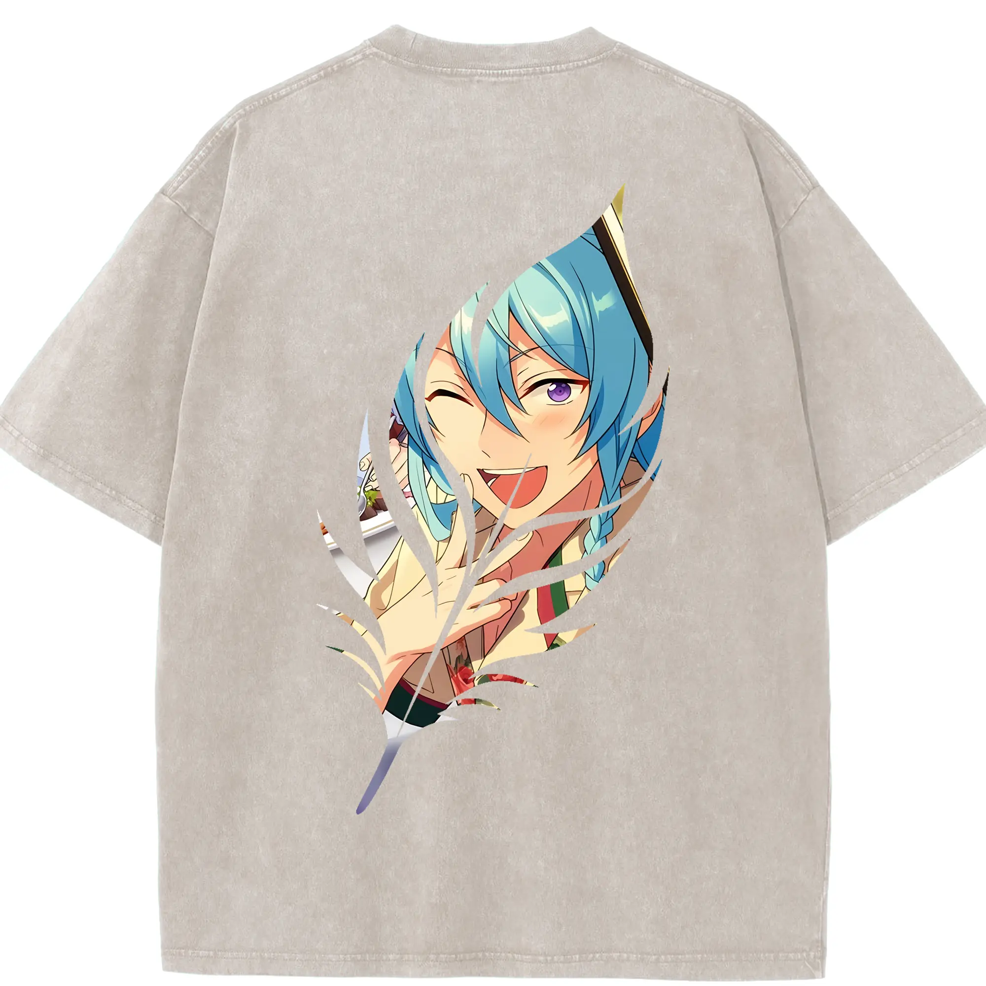 ブルーアーカイブ グッズ 小鳥遊ホシノ - 綿100% ヴィンテージ風 半袖Tシャツ ・ 背面プリント ・ 柔らか肌触り ・ 通気性 快適 ・ スポーツ カジュアル 外出用