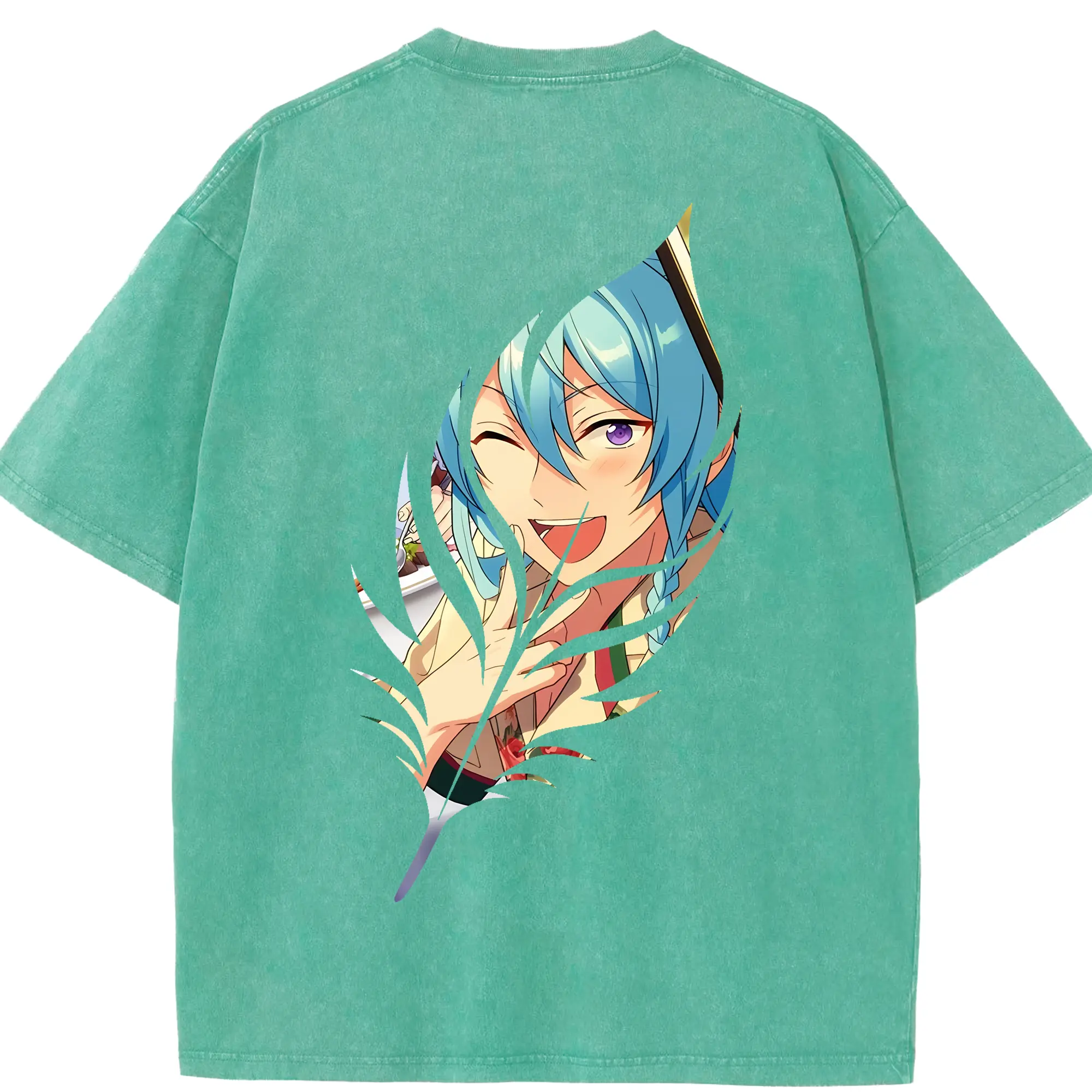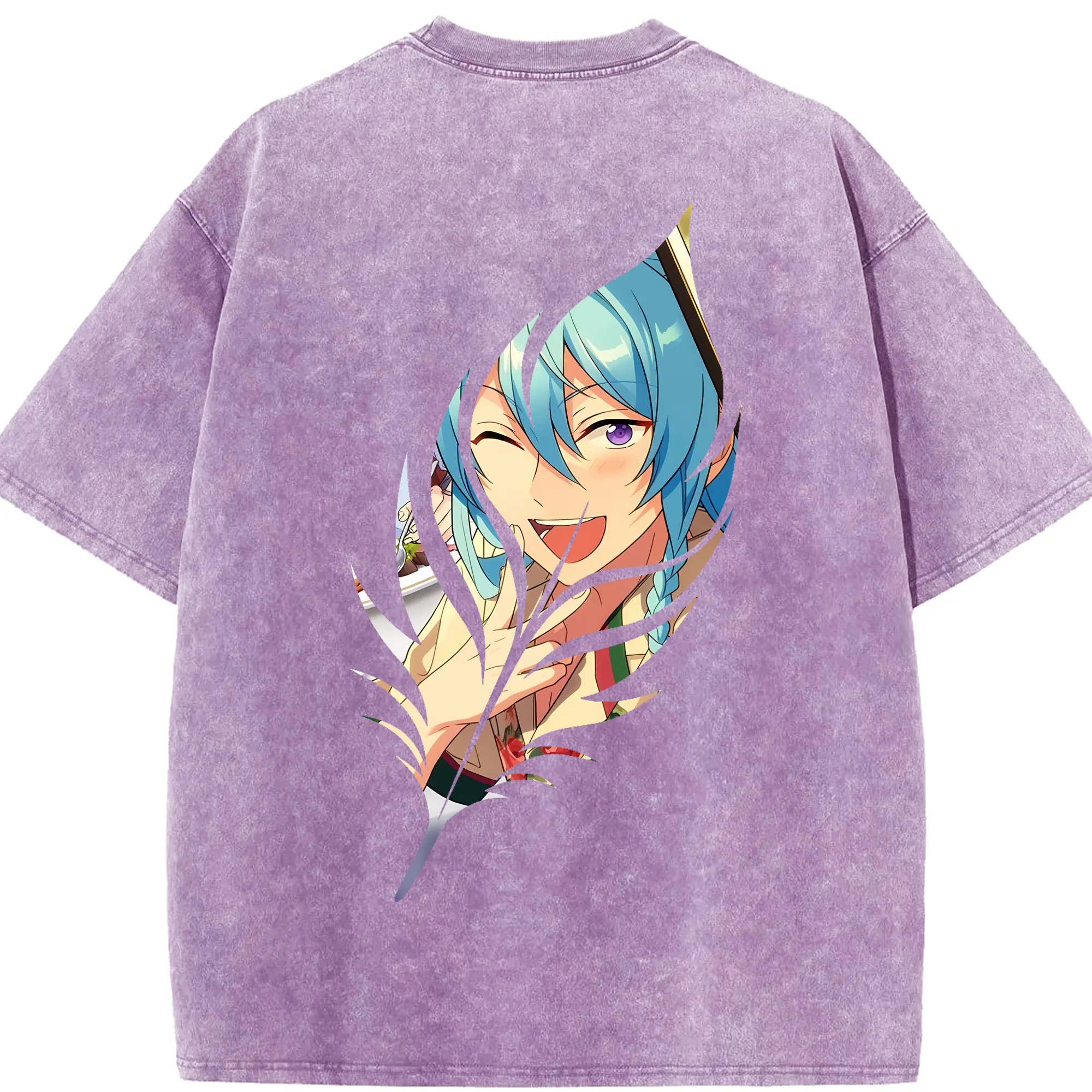 リゼロ グッズ シオン - 綿100% ヴィンテージ風 半袖Tシャツ ・ 背面プリント ・ 柔らか肌触り ・ 通気性 快適 ・ スポーツ カジュアル 外出用