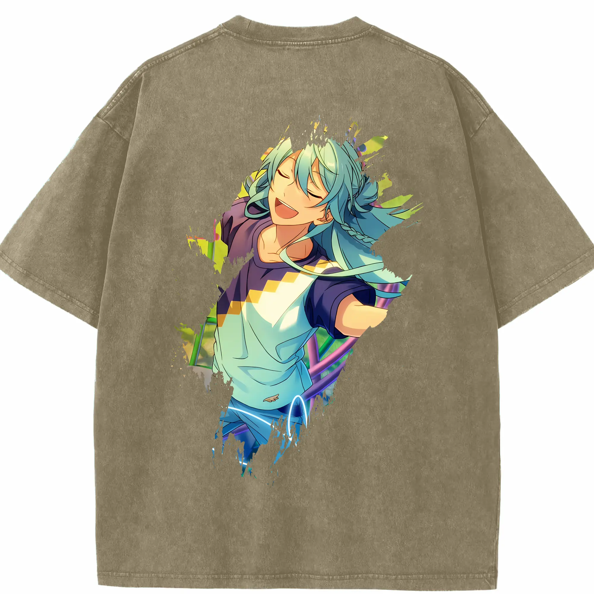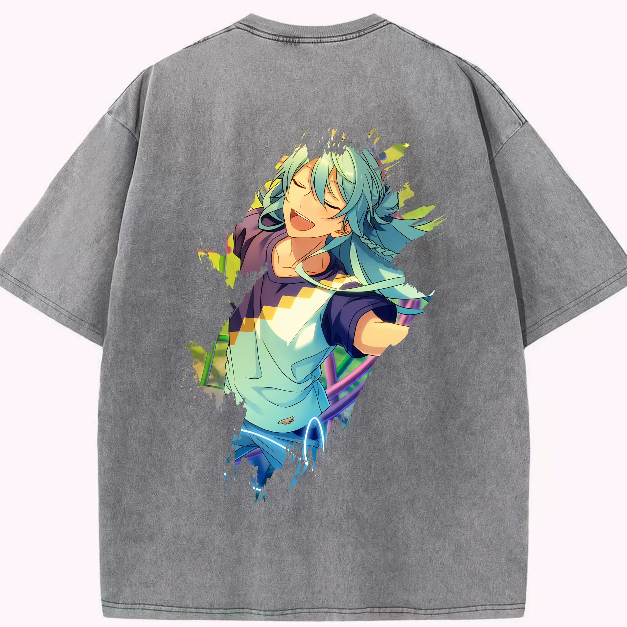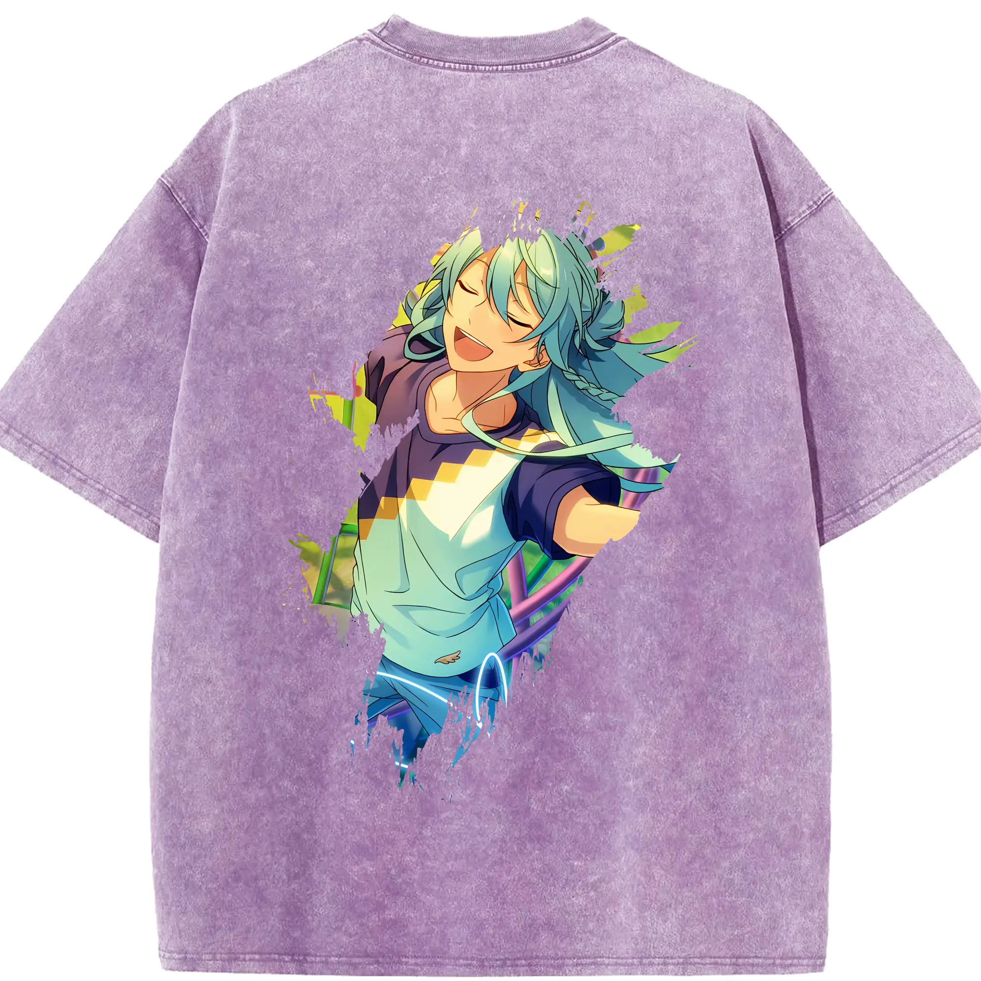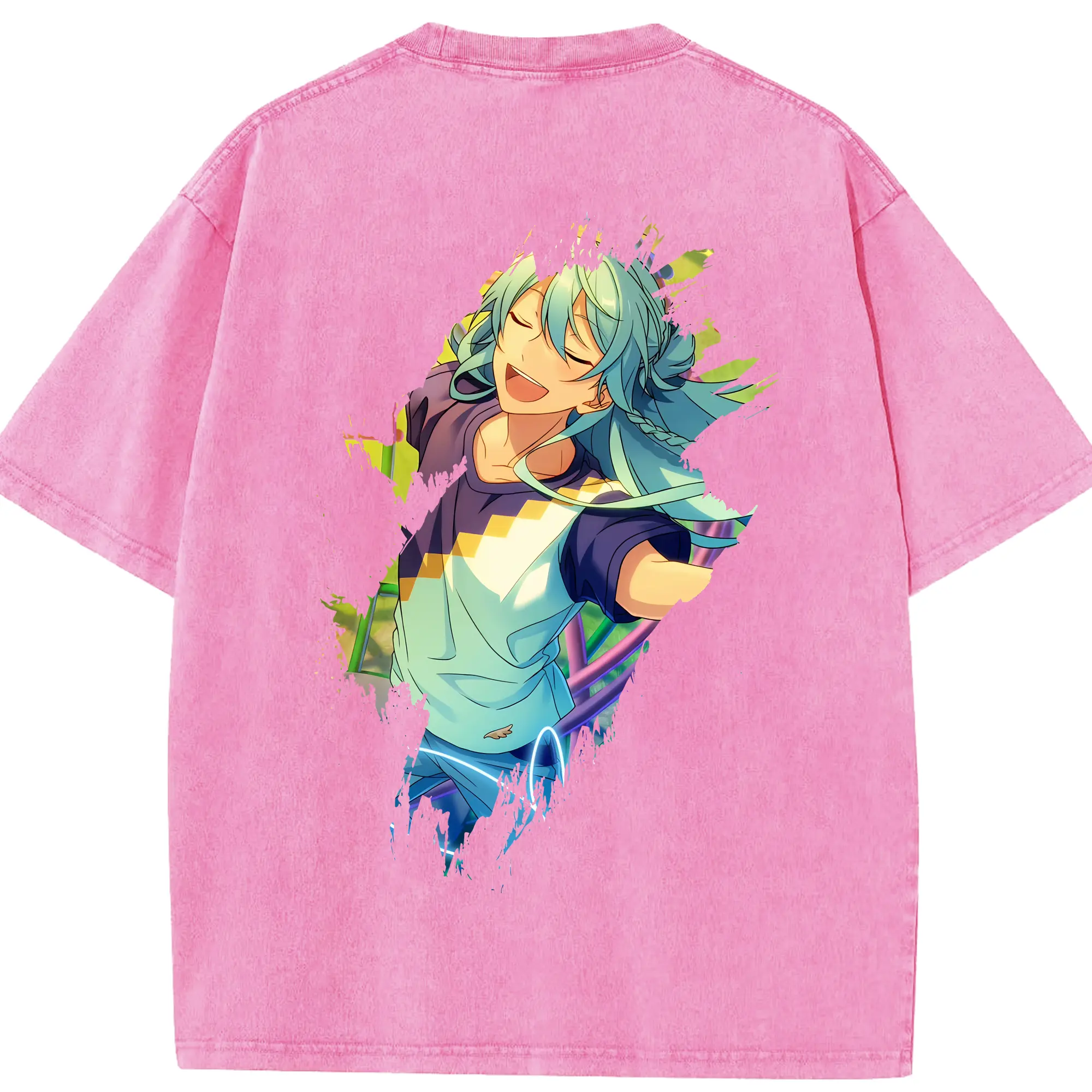 Love Live! グッズ,星空凛 - 綿100% ヴィンテージ風 半袖Tシャツ ・ 背面プリント ・ 柔らか肌触り ・ 通気性 快適 ・ スポーツ カジュアル 外出用