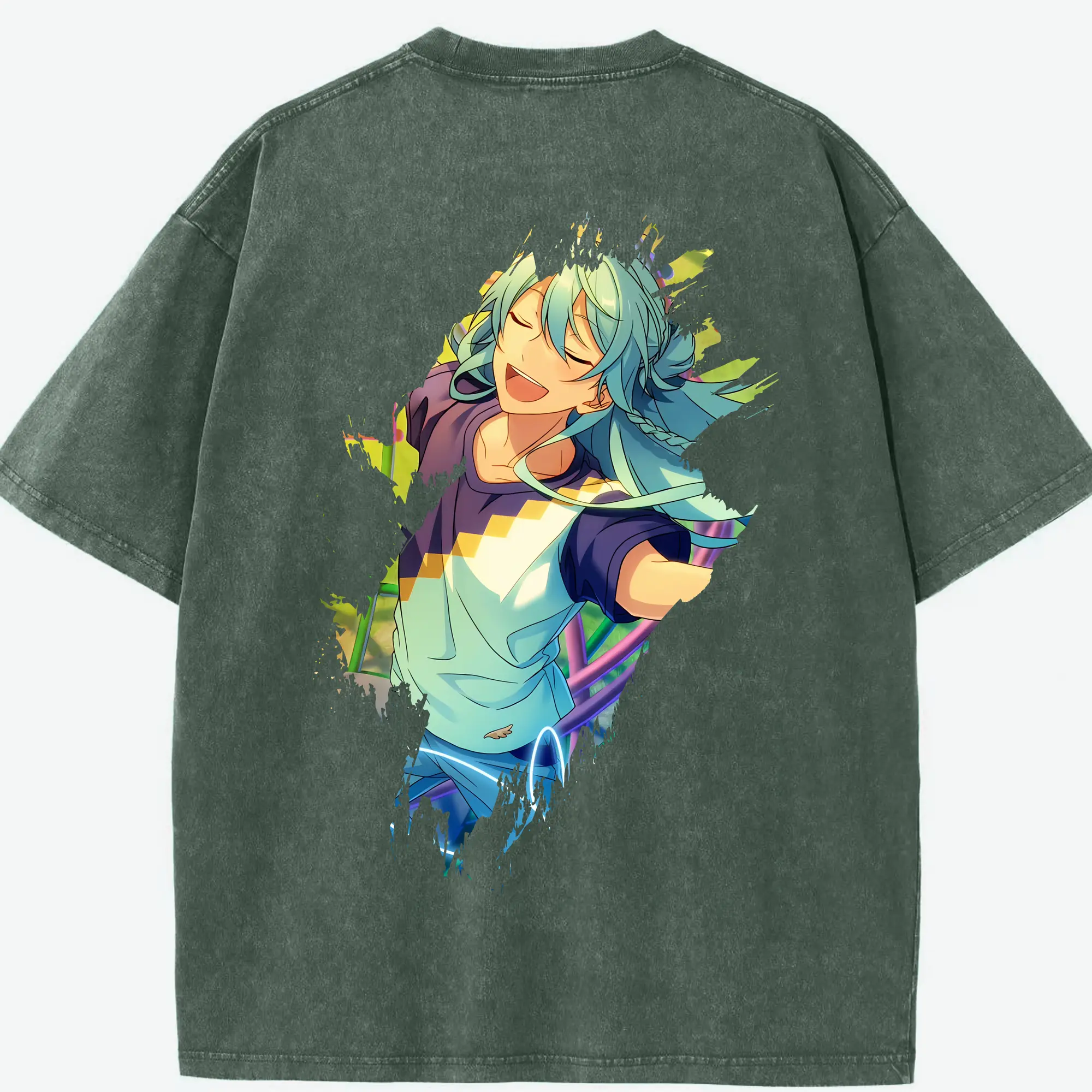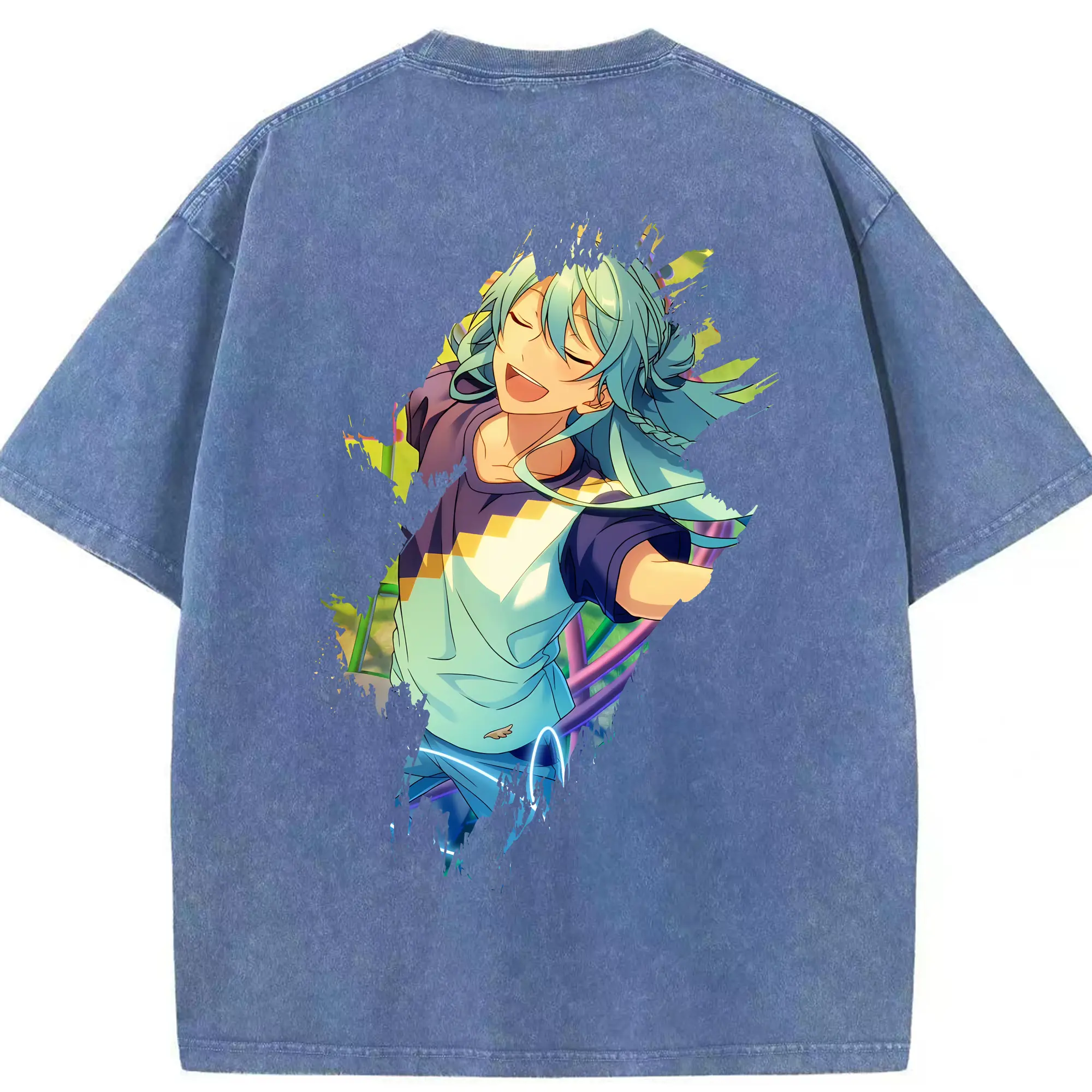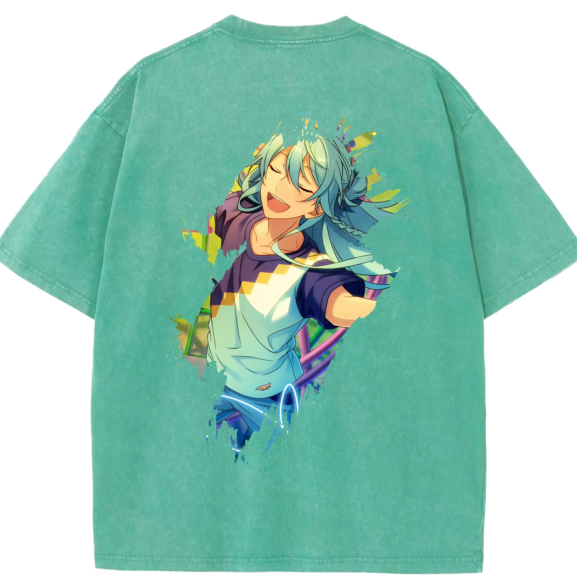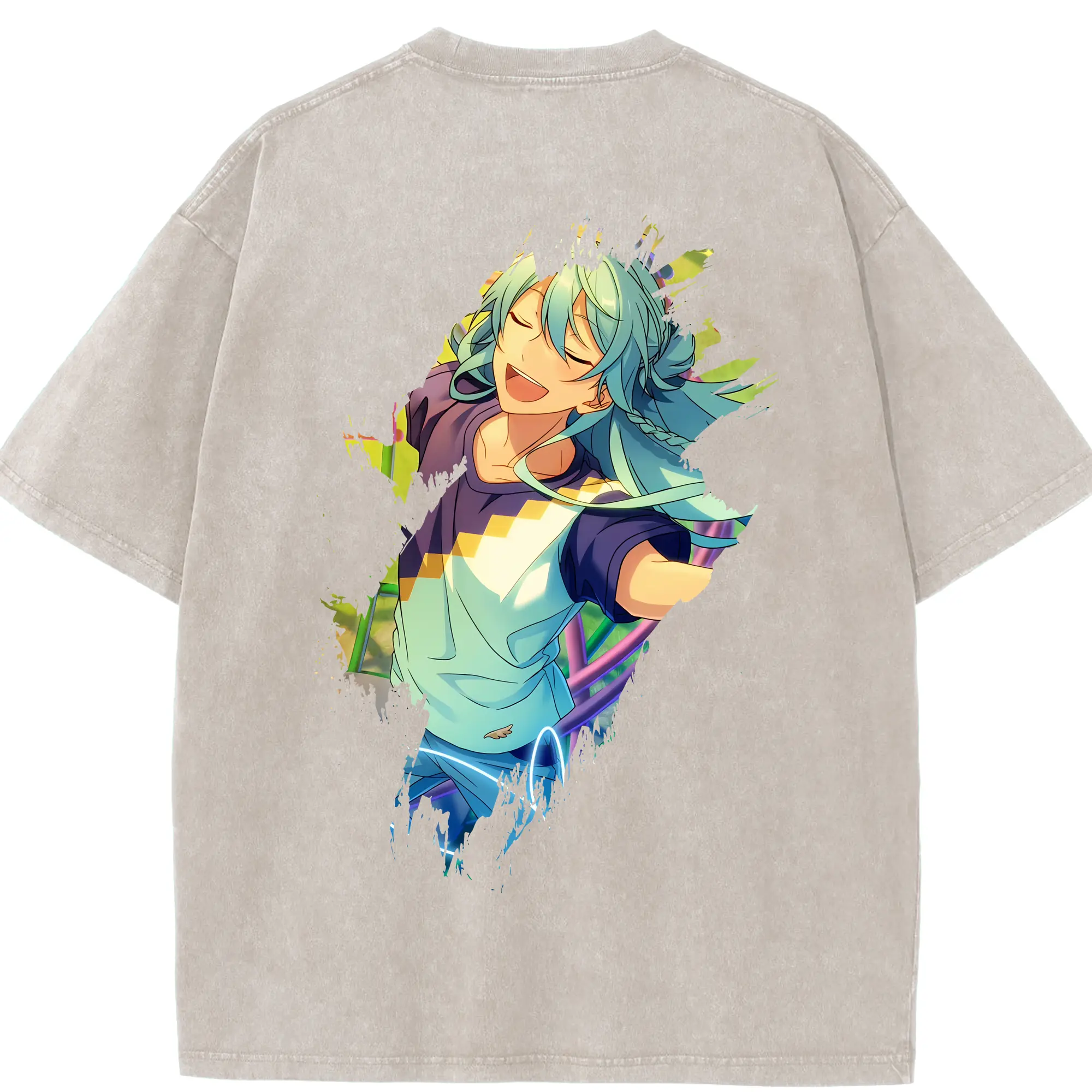 Love Live! グッズ,星空凛 - 綿100% ヴィンテージ風 半袖Tシャツ ・ 背面プリント ・ 柔らか肌触り ・ 通気性 快適 ・ スポーツ カジュアル 外出用