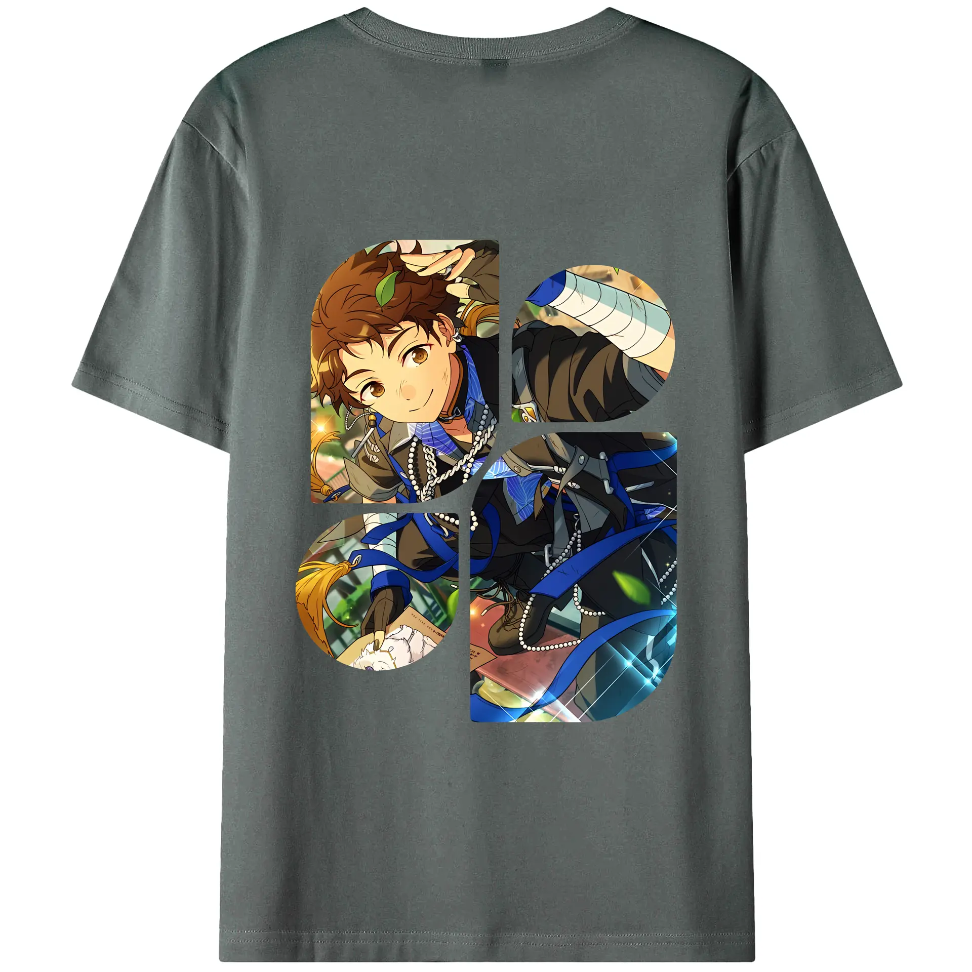 あんさん ぶる グッズ fine 伏見弓弦 - 綿100% ヴィンテージ風 半袖Tシャツ ・ 背面プリント ・ 柔らか肌触り ・ 通気性 快適 ・ スポーツ カジュアル 外出用