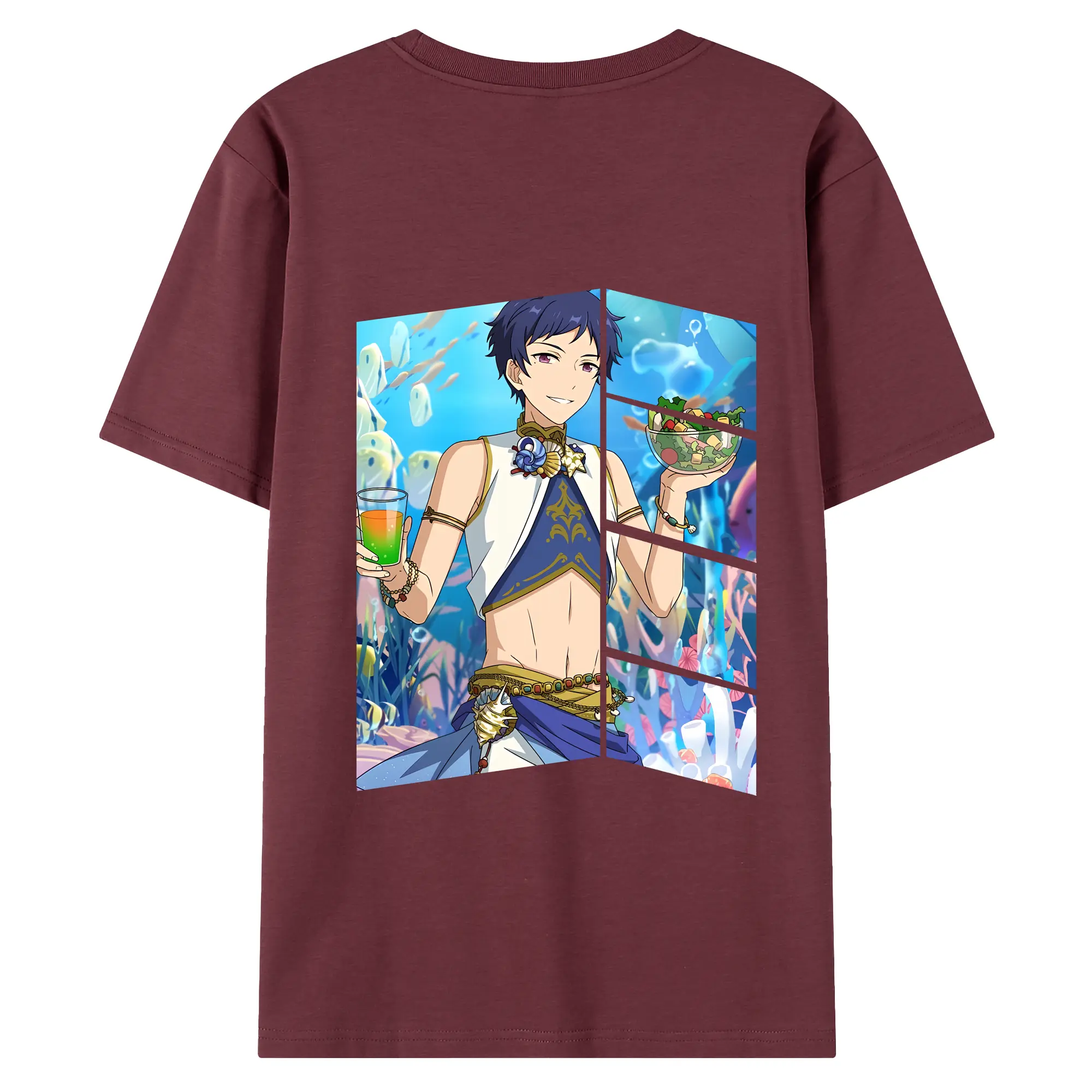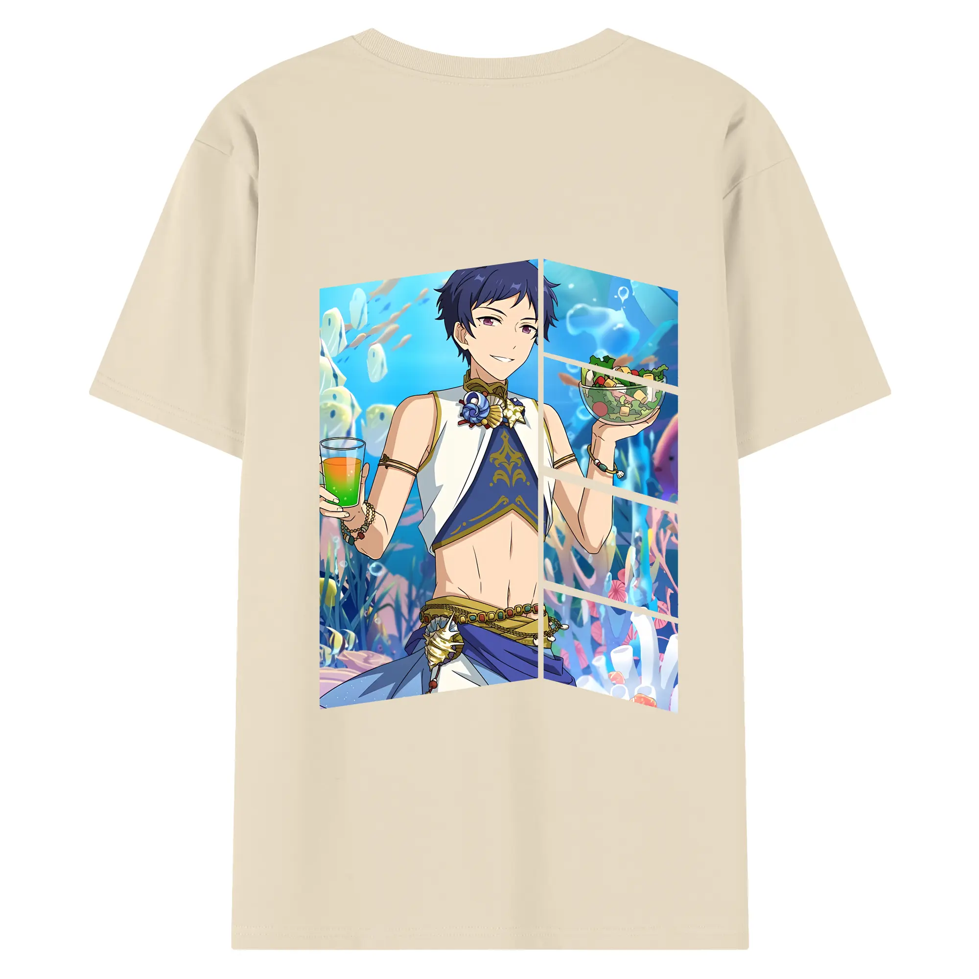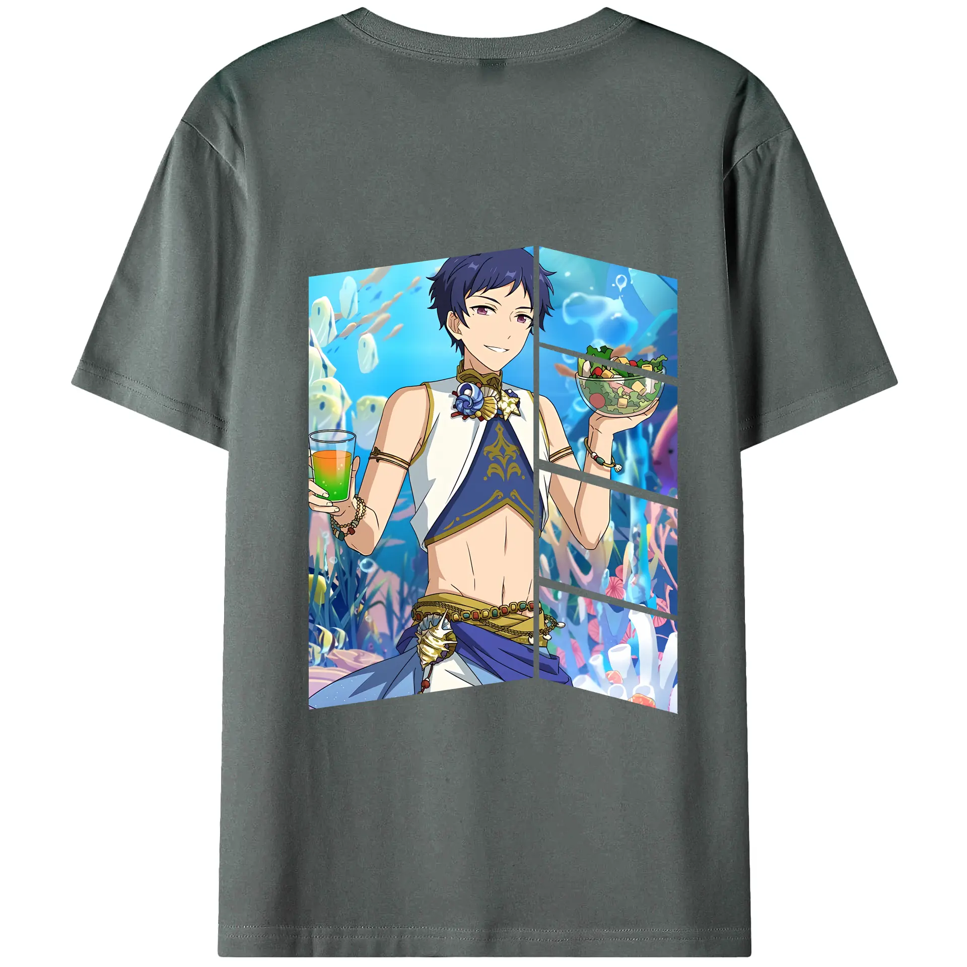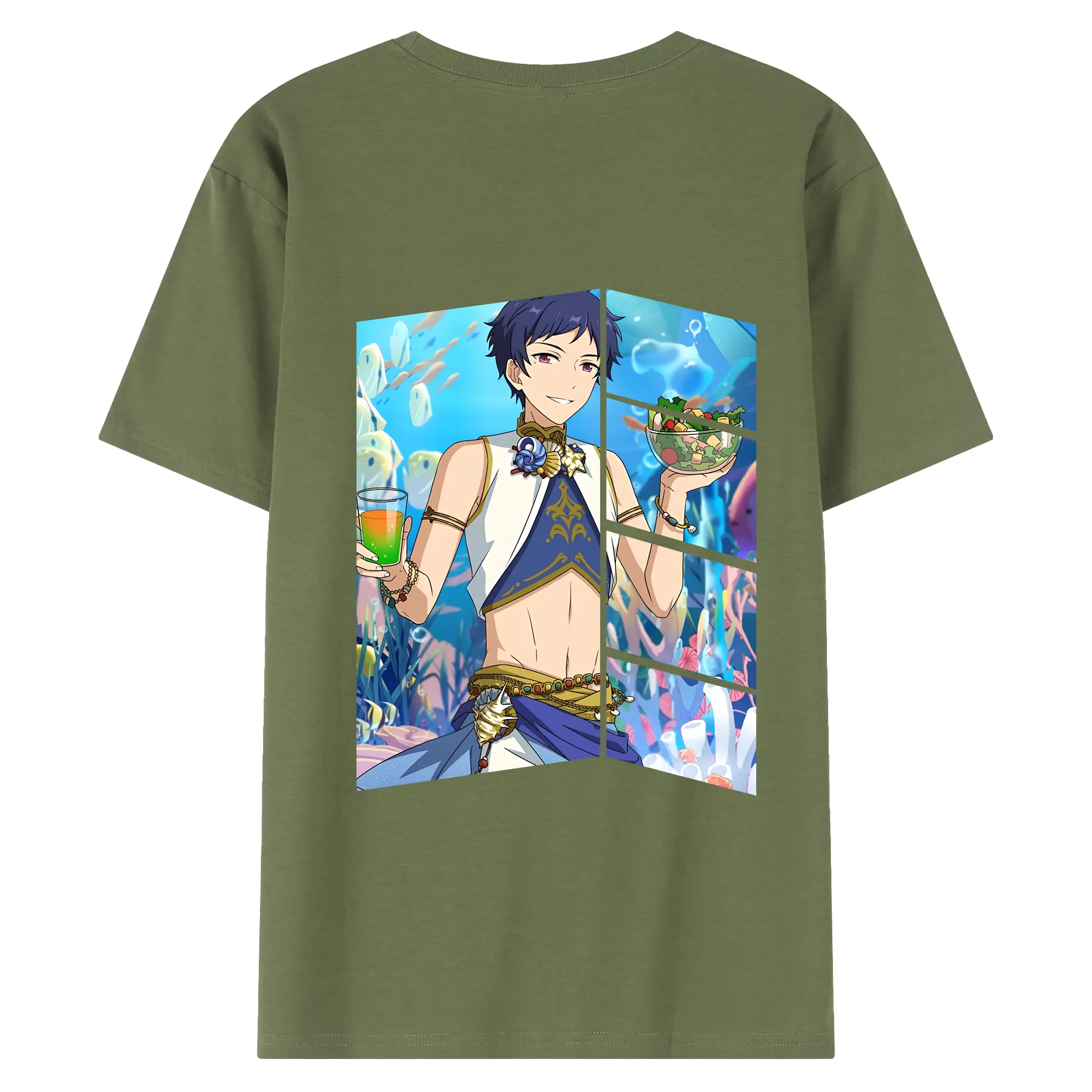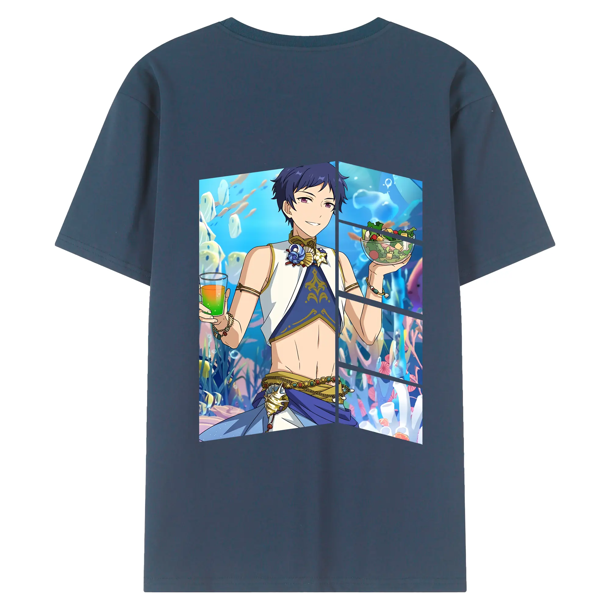 あんさん ぶる グッズ fine 伏見弓弦 - 綿100% ヴィンテージ風 半袖Tシャツ ・ 背面プリント ・ 柔らか肌触り ・ 通気性 快適 ・ スポーツ カジュアル 外出用
