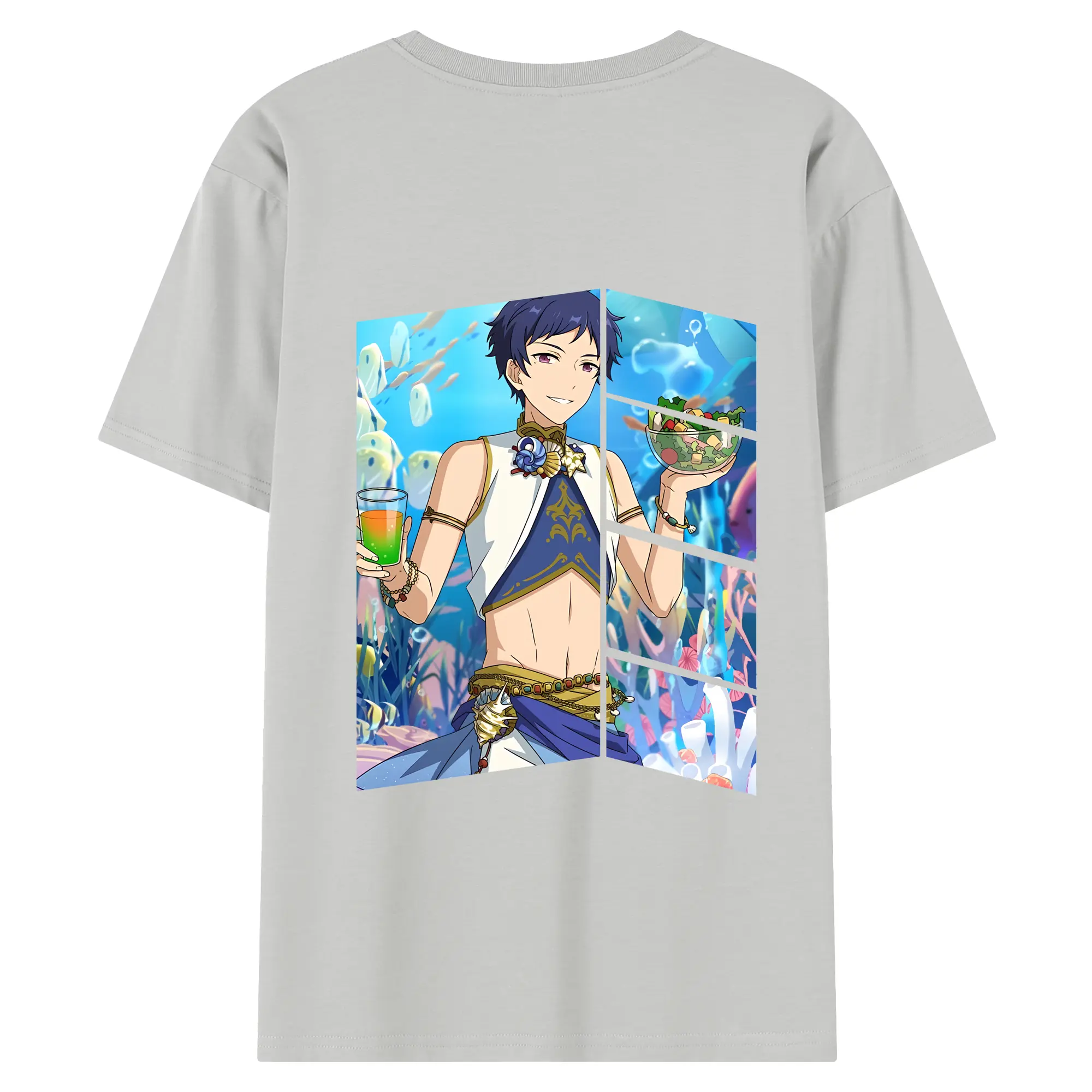 原 神 グッズ ディルック - 綿100% 半袖Tシャツ ・ バックプリント ・ 快適 通気性 ・ 日常使い 散歩 スポーツ用