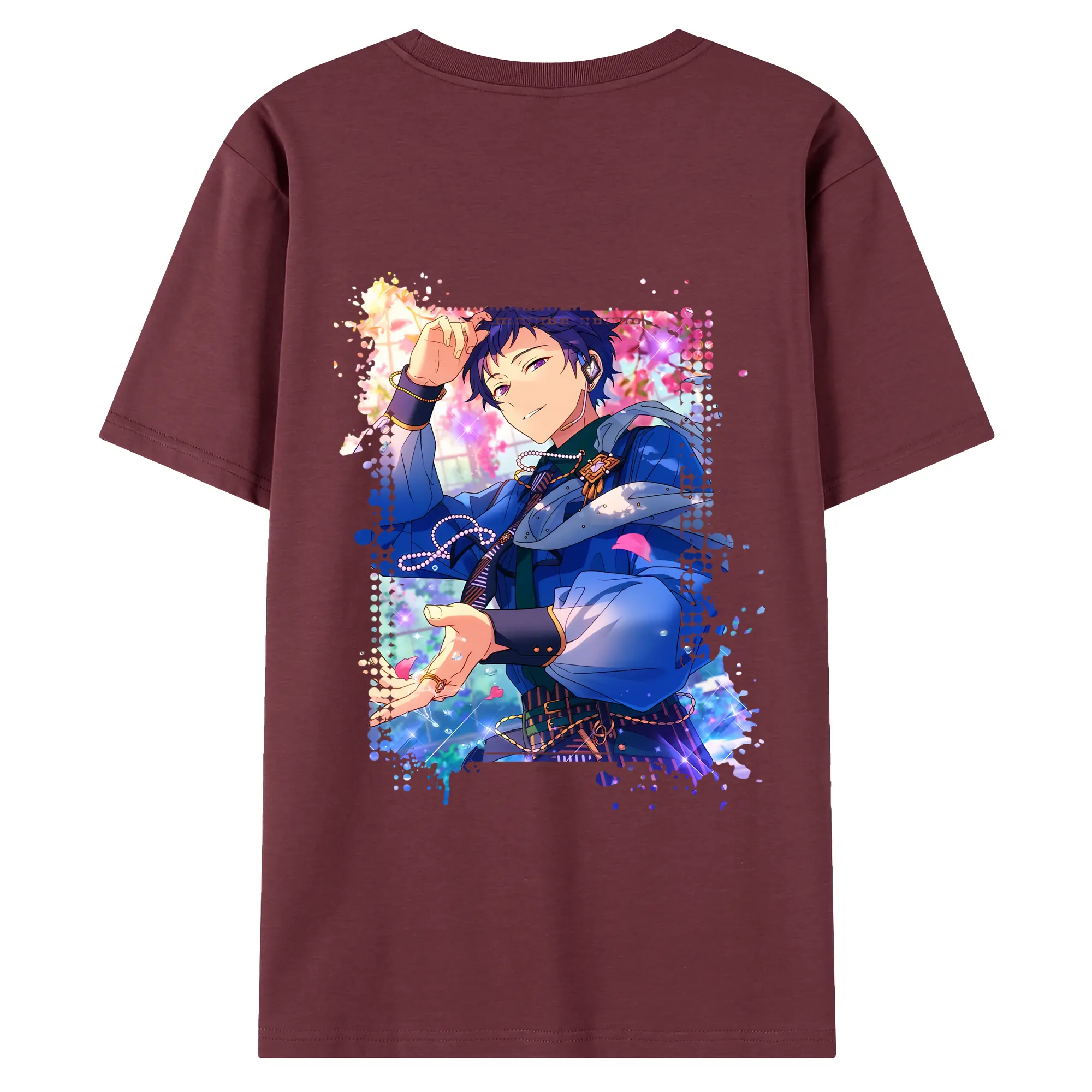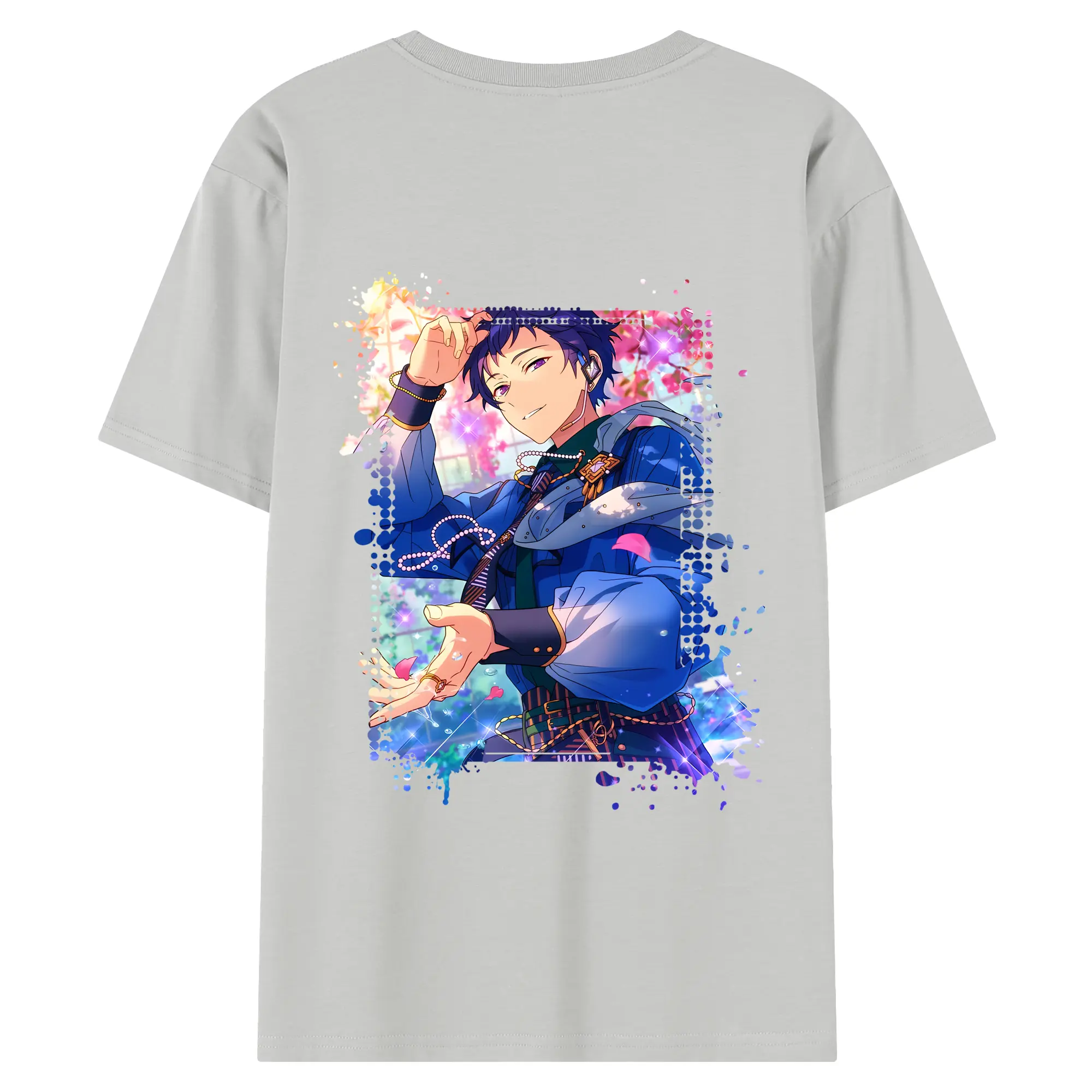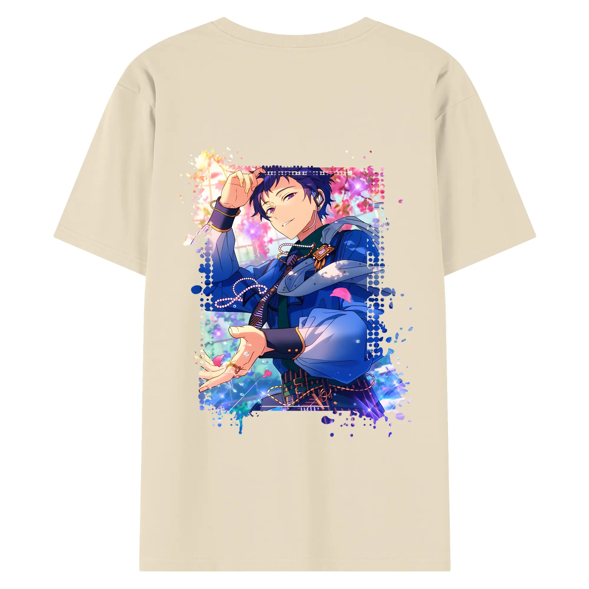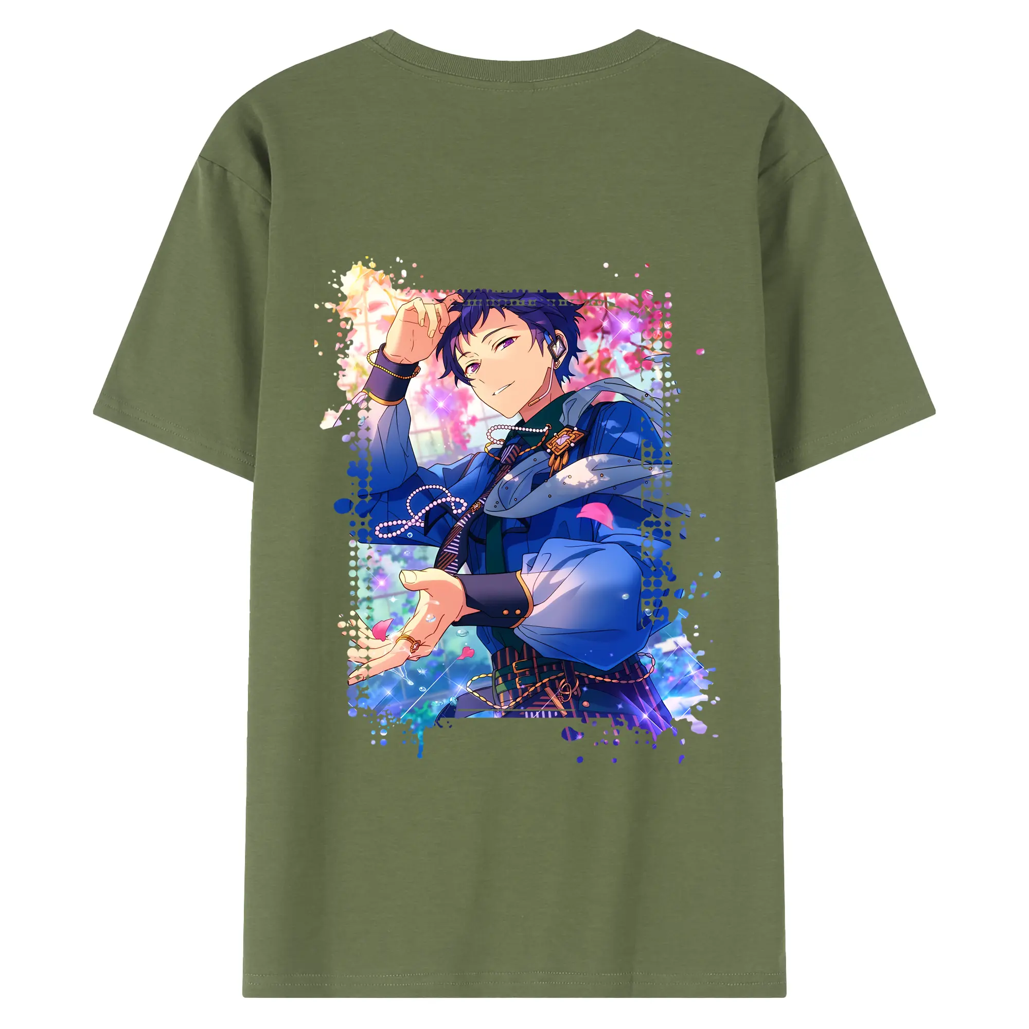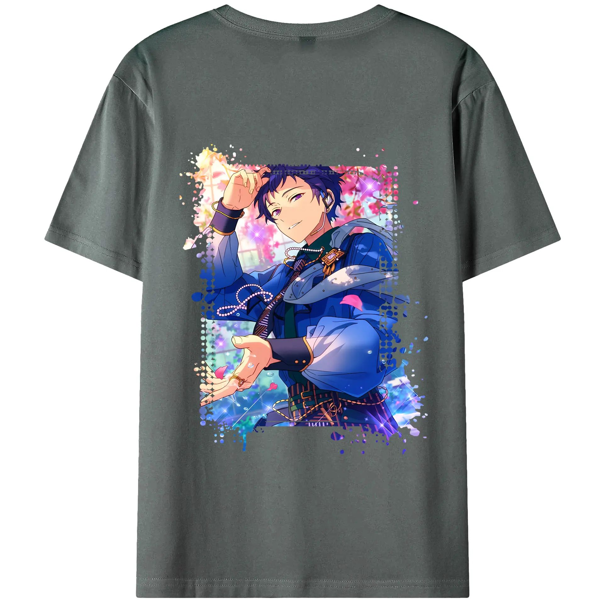 あんさん ぶる グッズ fine 伏見弓弦 - 綿100% ヴィンテージ風 半袖Tシャツ ・ 背面プリント ・ 柔らか肌触り ・ 通気性 快適 ・ スポーツ カジュアル 外出用