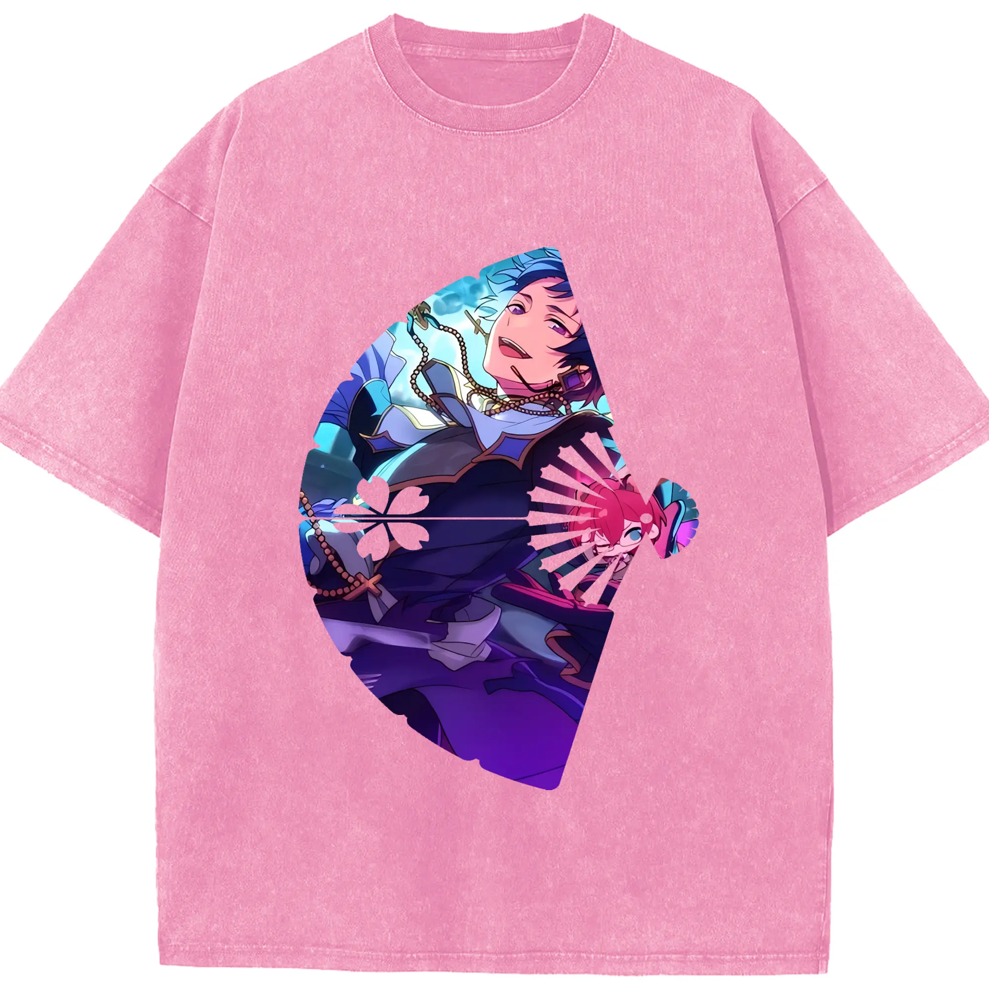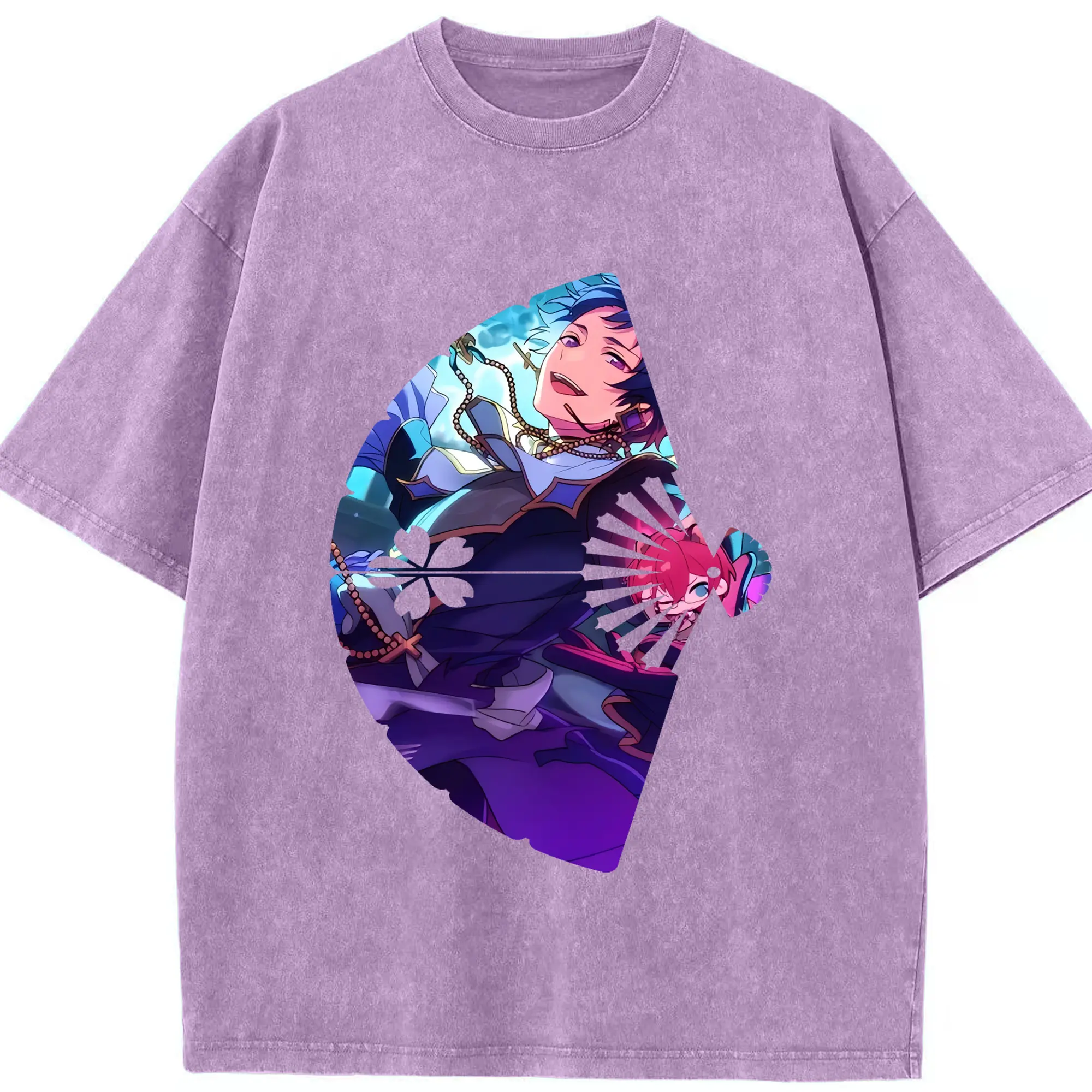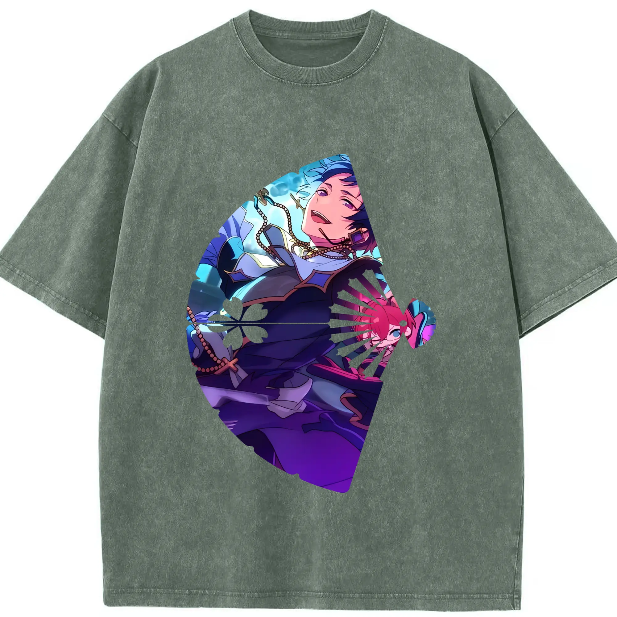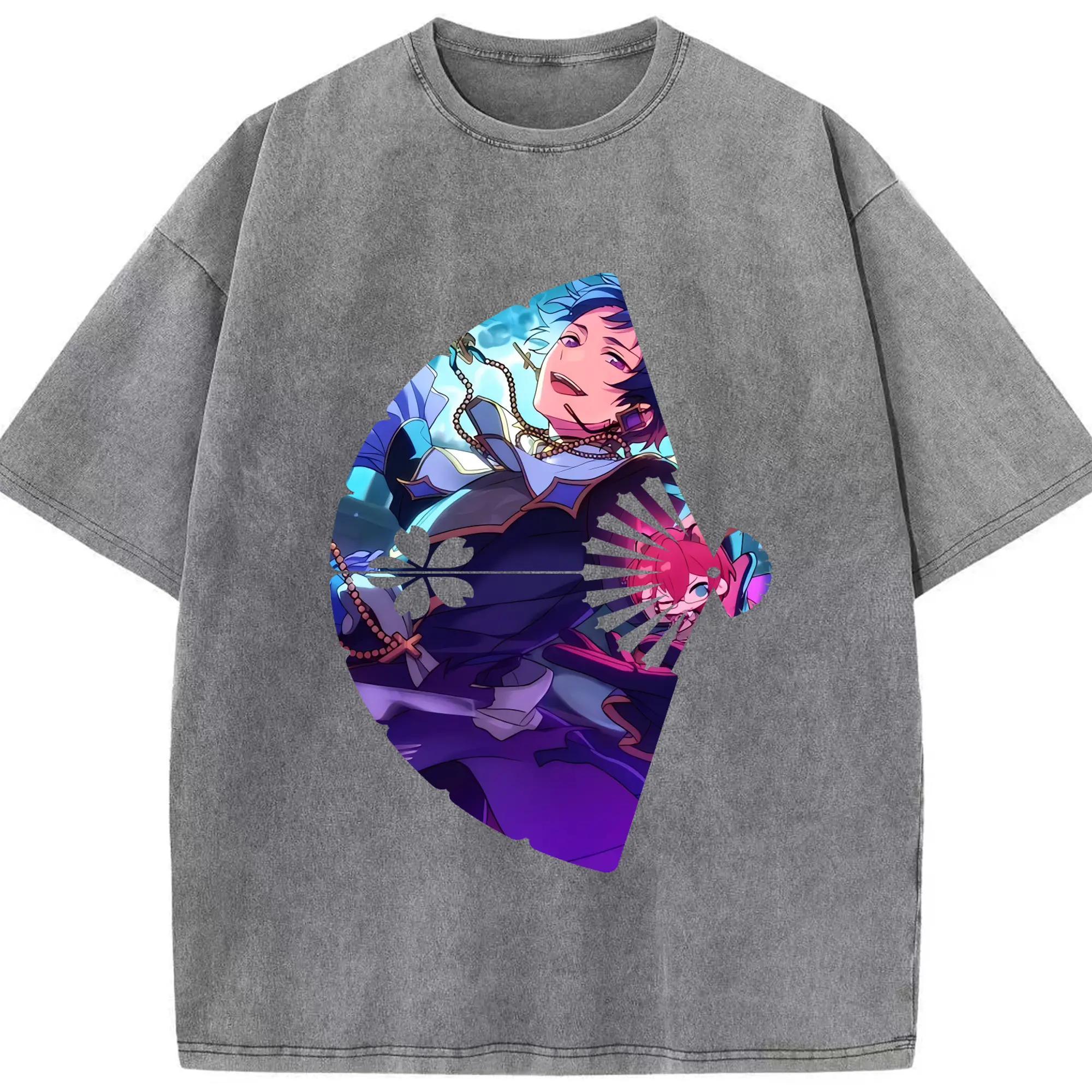 あんさん ぶる グッズ fine 伏見弓弦 - 綿100% ヴィンテージ風 半袖Tシャツ ・ 背面プリント ・ 柔らか肌触り ・ 通気性 快適 ・ スポーツ カジュアル 外出用