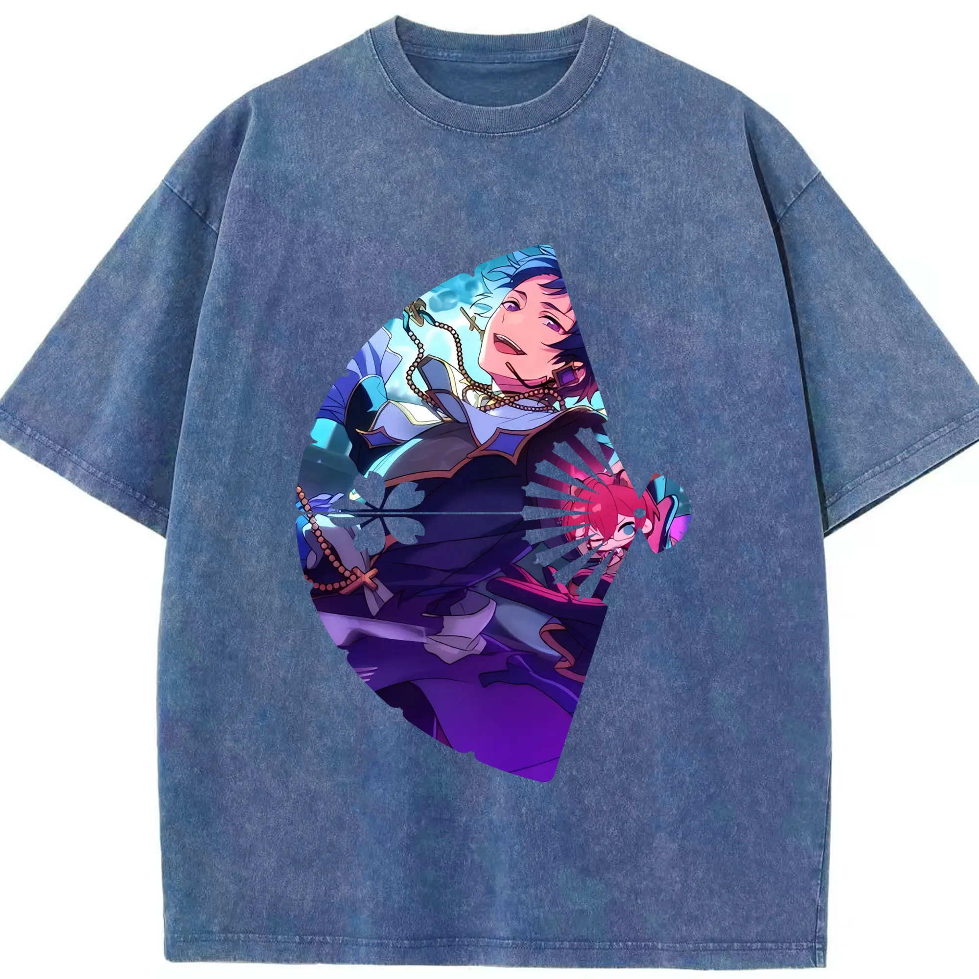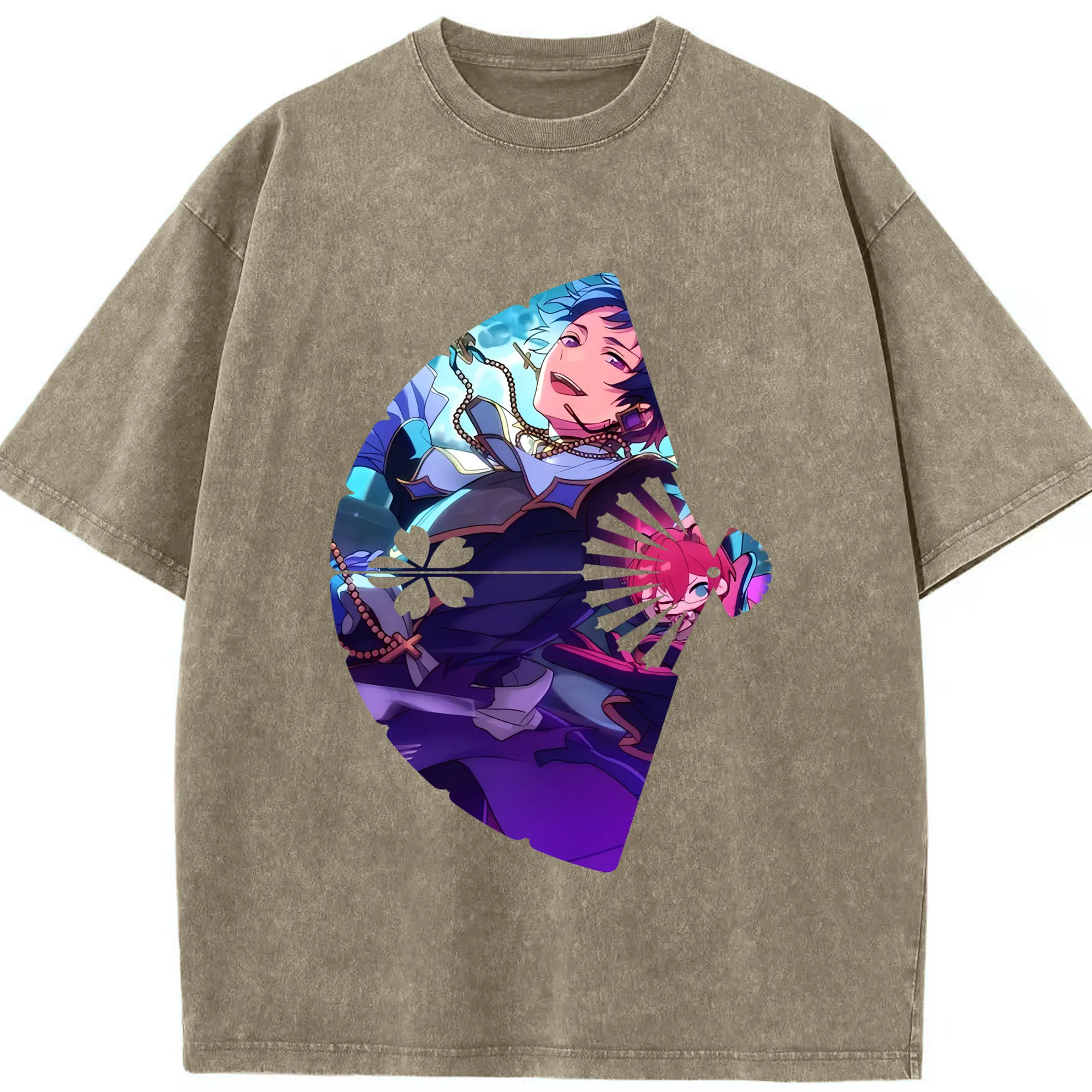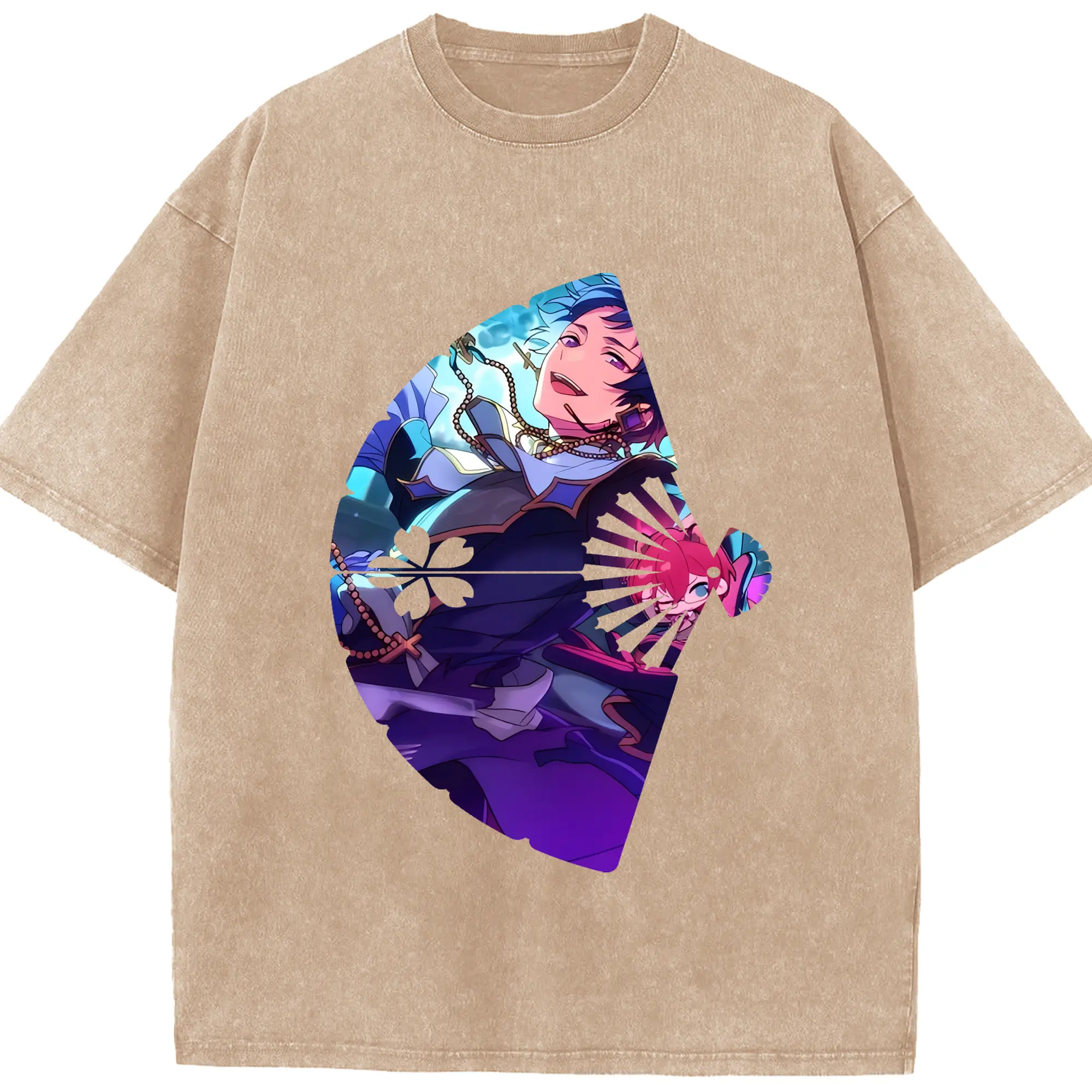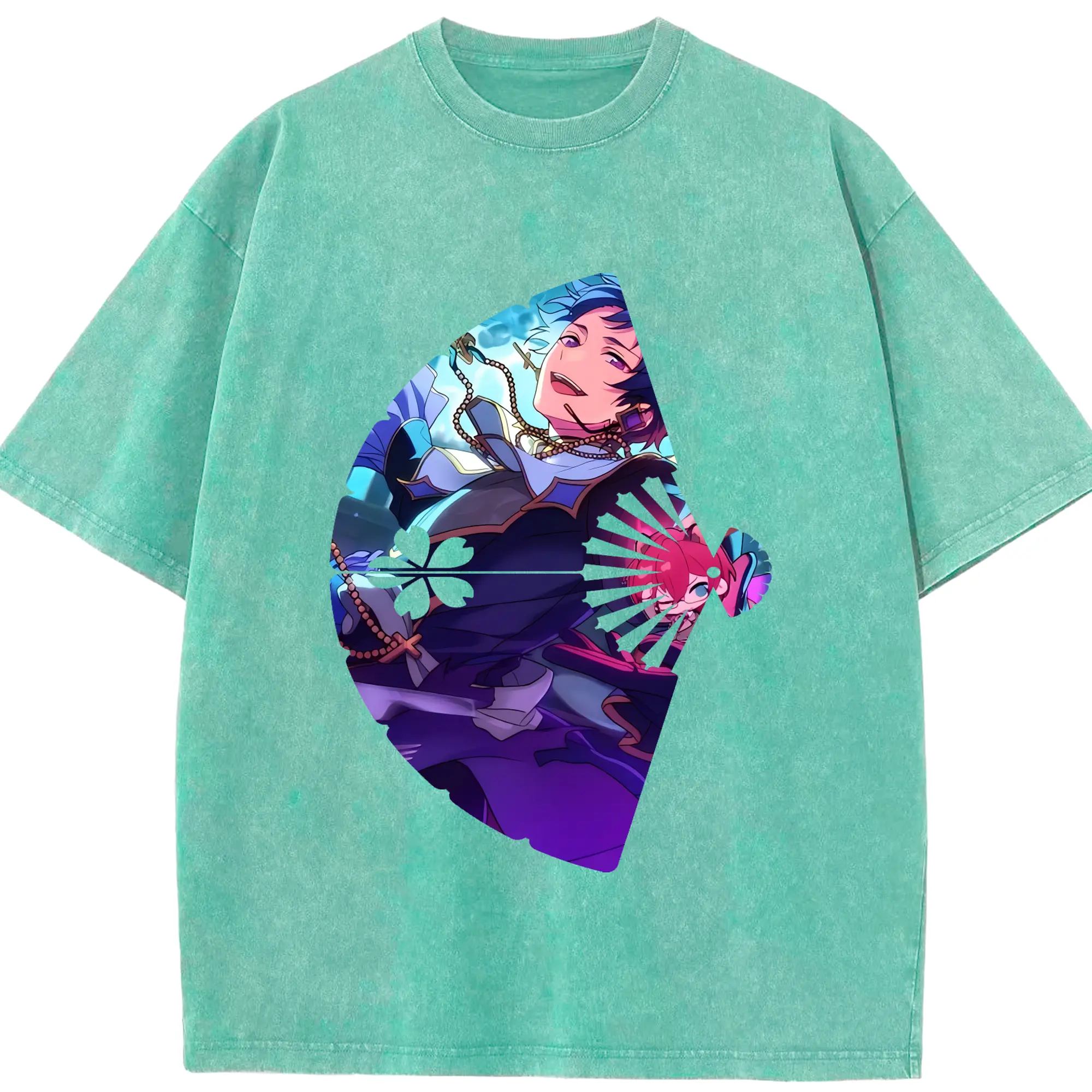 あんさん ぶる グッズ fine 伏見弓弦 - 綿100% ヴィンテージ風 半袖Tシャツ ・ 背面プリント ・ 柔らか肌触り ・ 通気性 快適 ・ スポーツ カジュアル 外出用