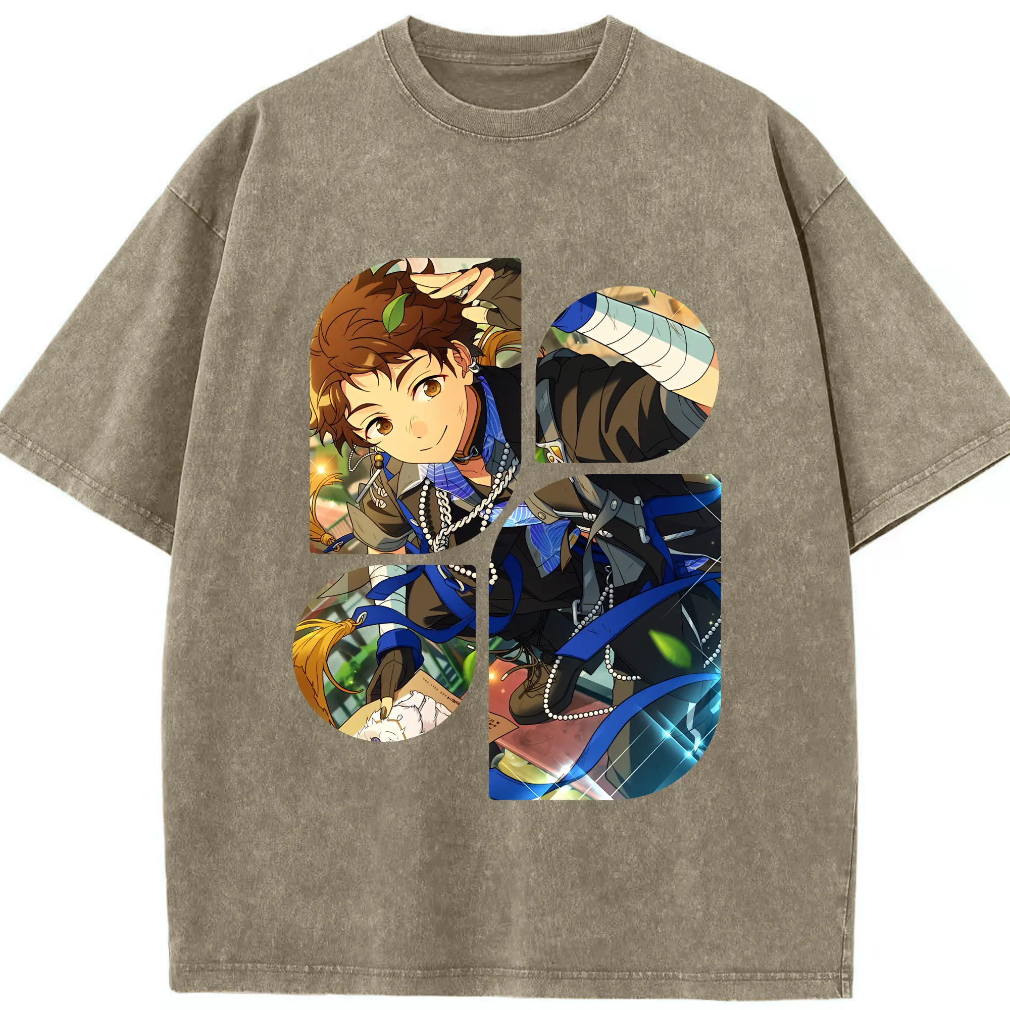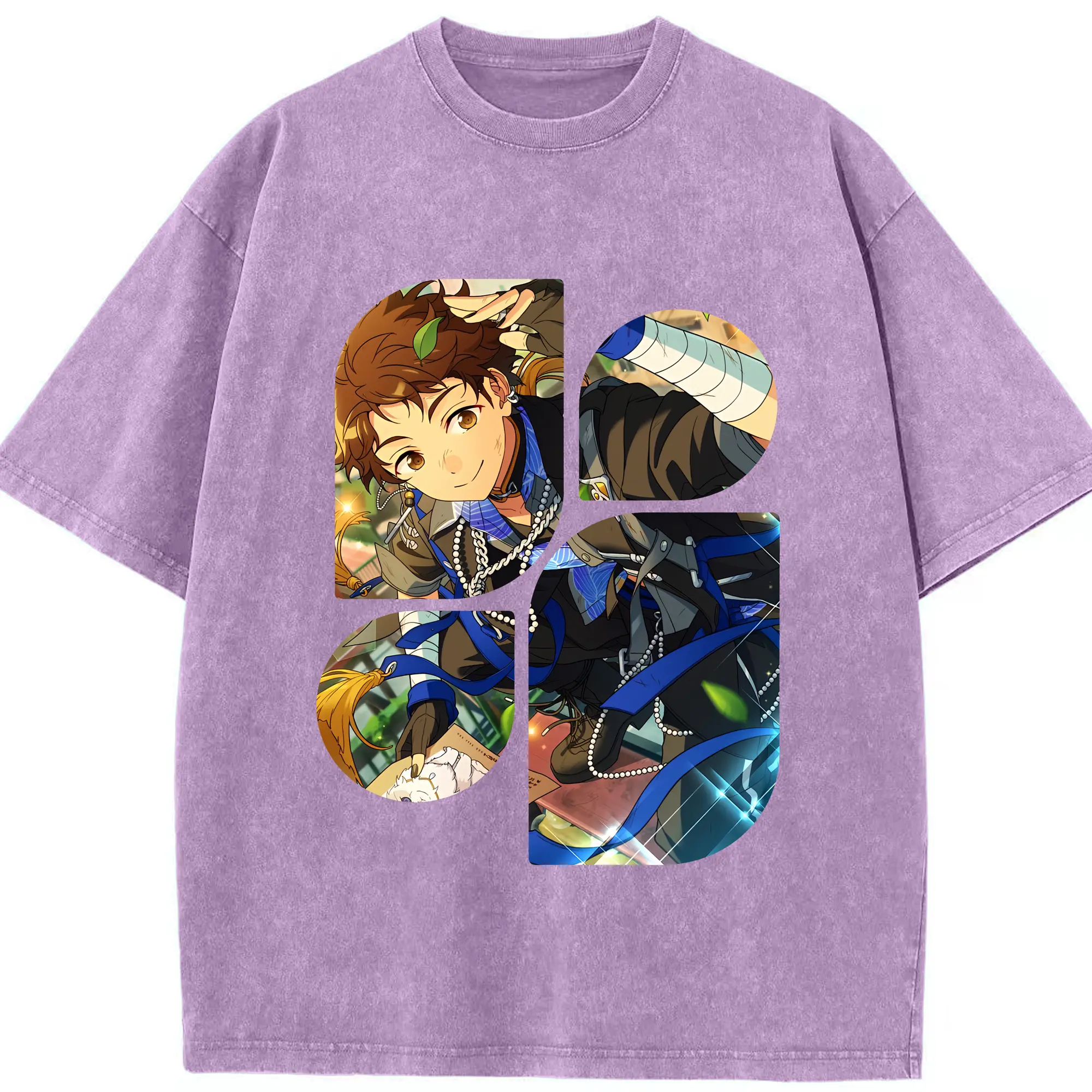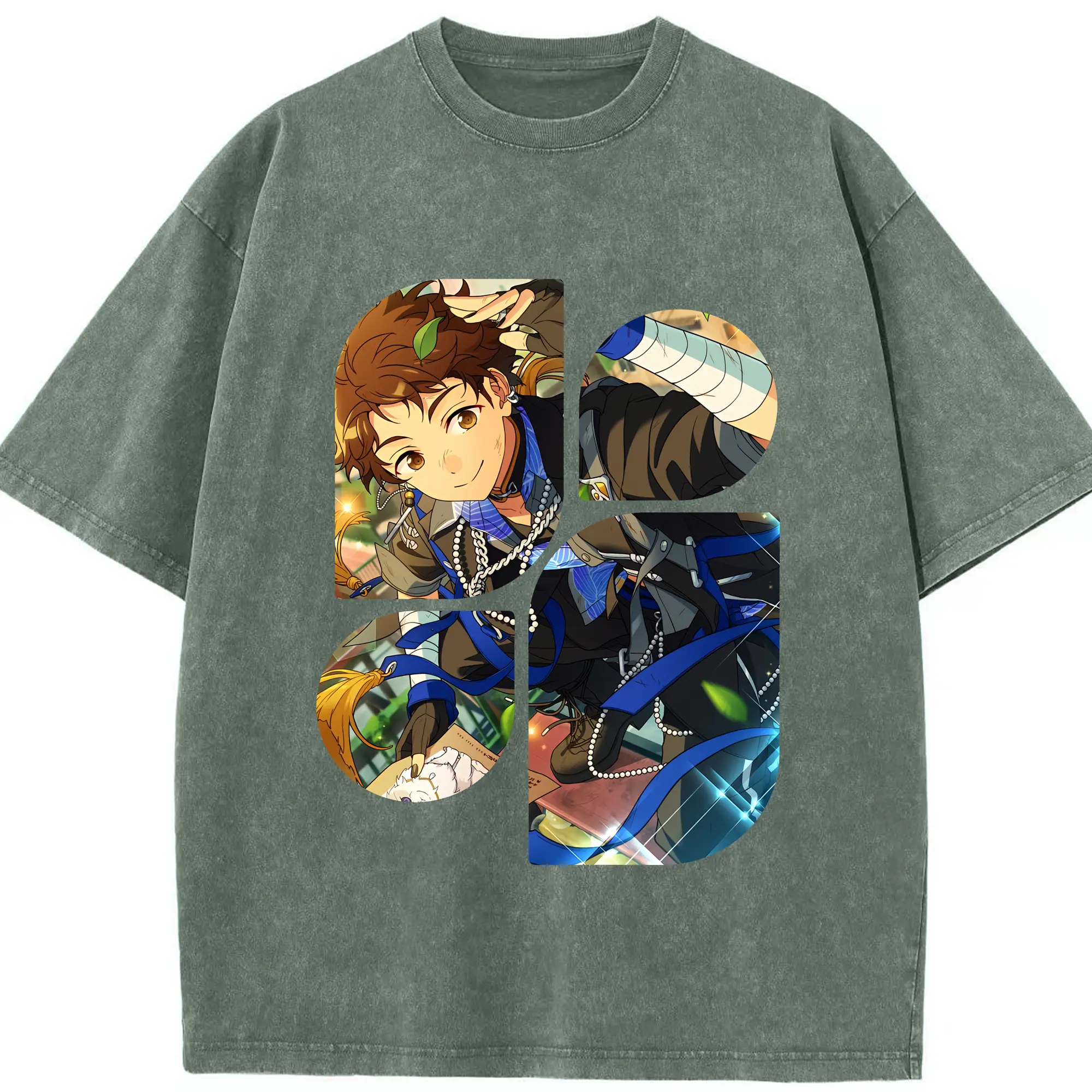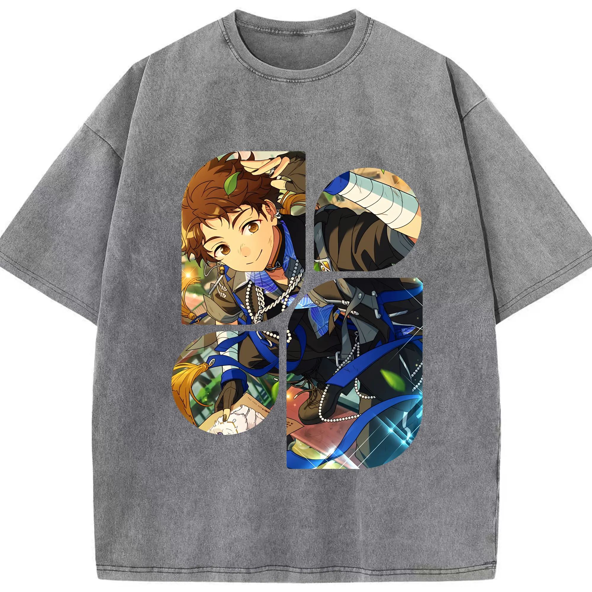 あんさん ぶる グッズ fine 伏見弓弦 - 綿100% ヴィンテージ風 半袖Tシャツ ・ 背面プリント ・ 柔らか肌触り ・ 通気性 快適 ・ スポーツ カジュアル 外出用
