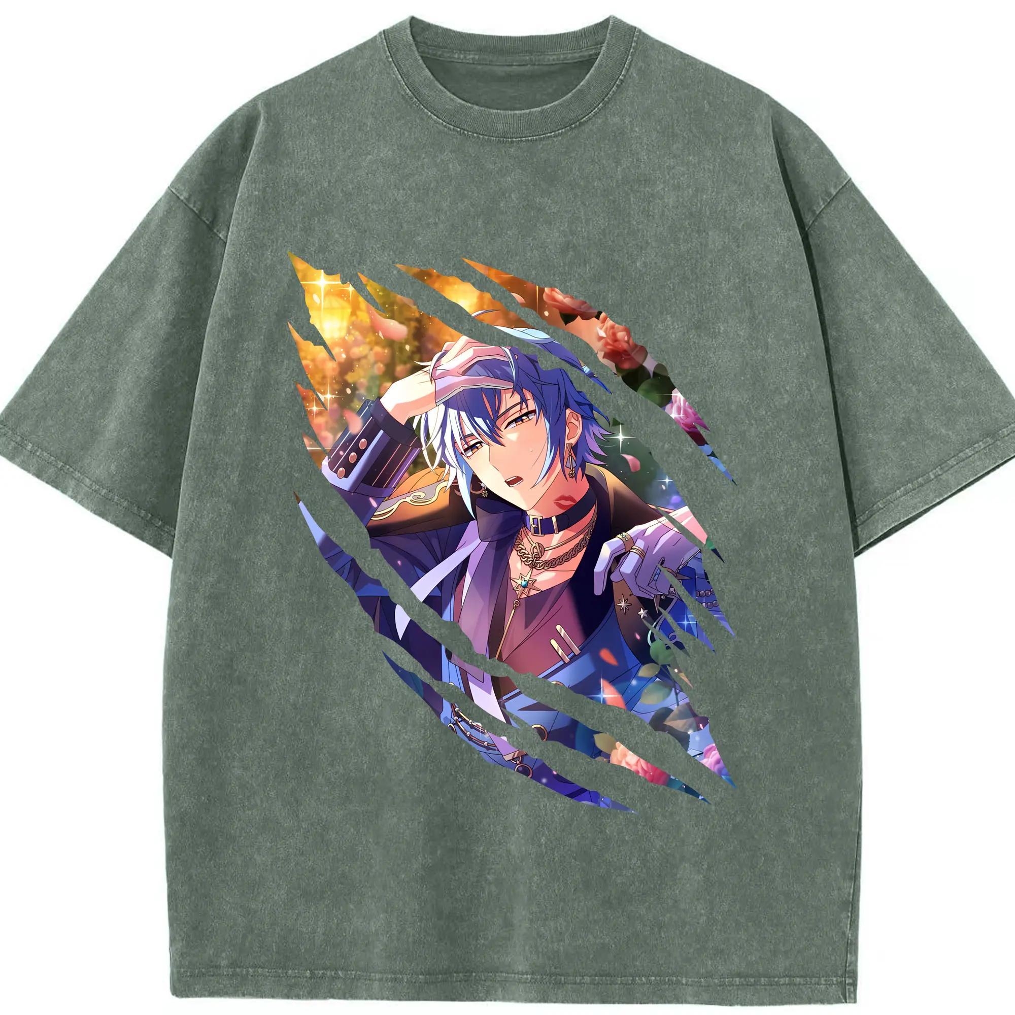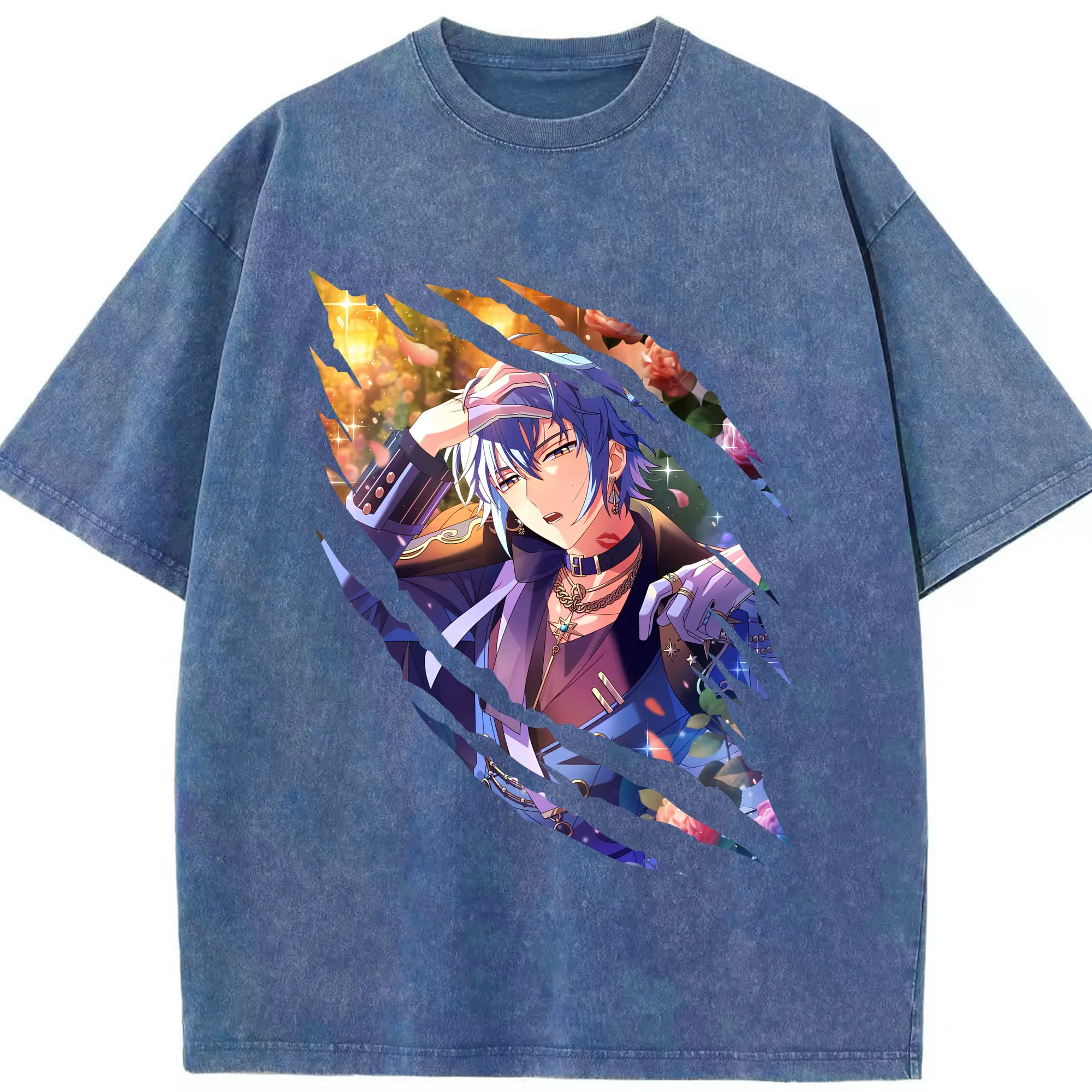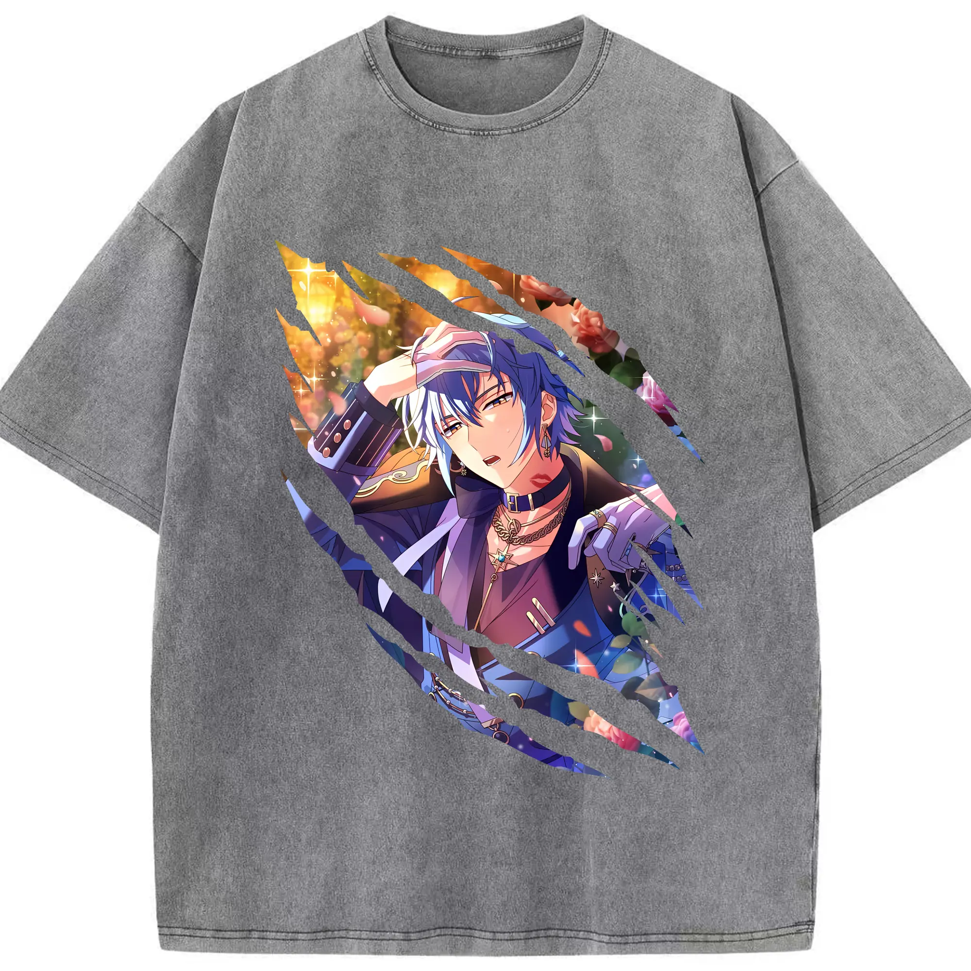 あんさん ぶる グッズ 流星隊 守沢千秋 - 綿100% ヴィンテージ風 半袖Tシャツ ・ フロントプリント ・ 柔らか肌触り ・ 通気性 快適 ・ スポーツ カジュアル 外出用