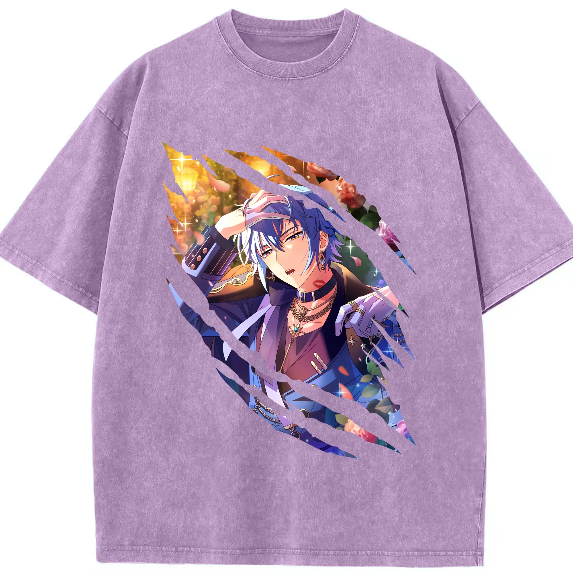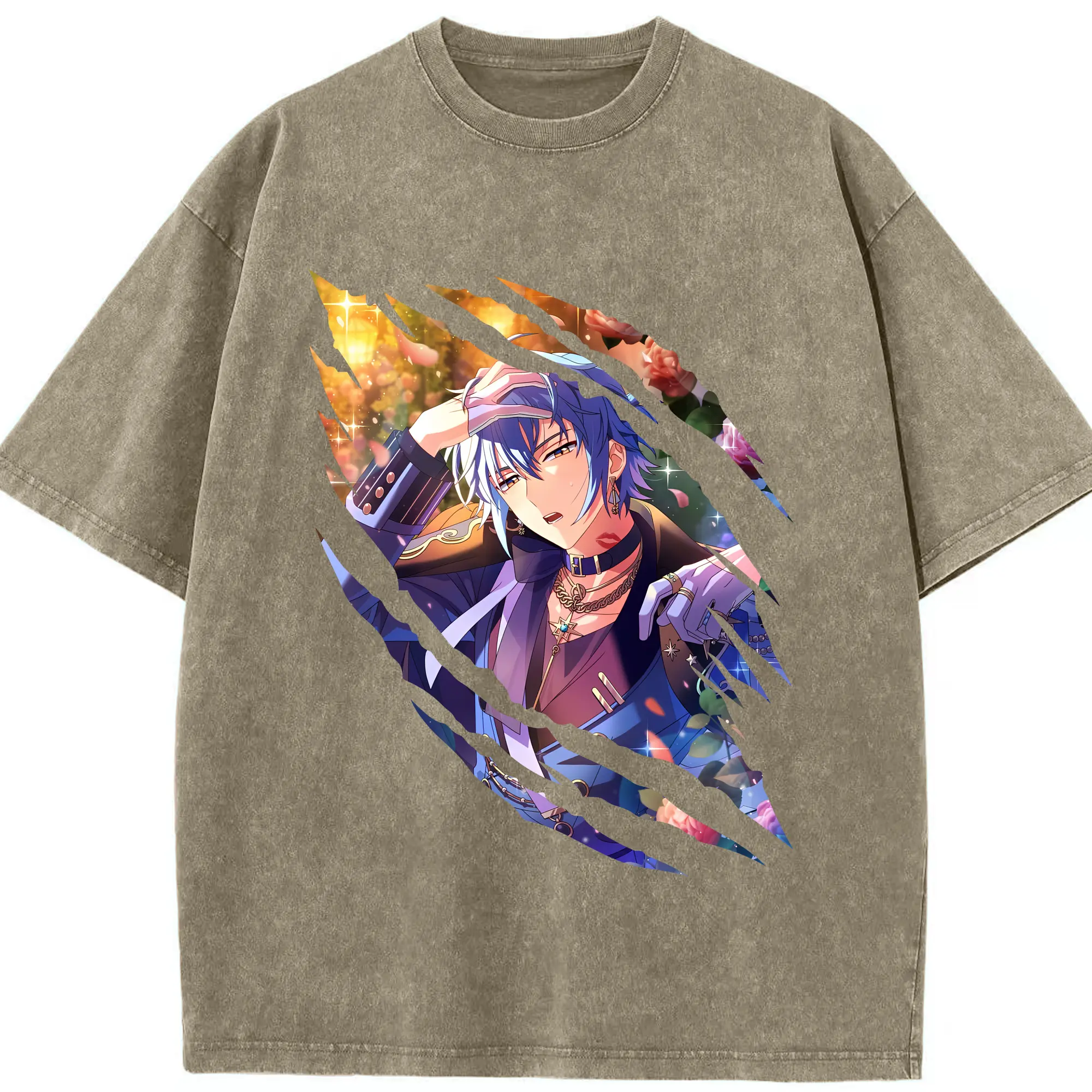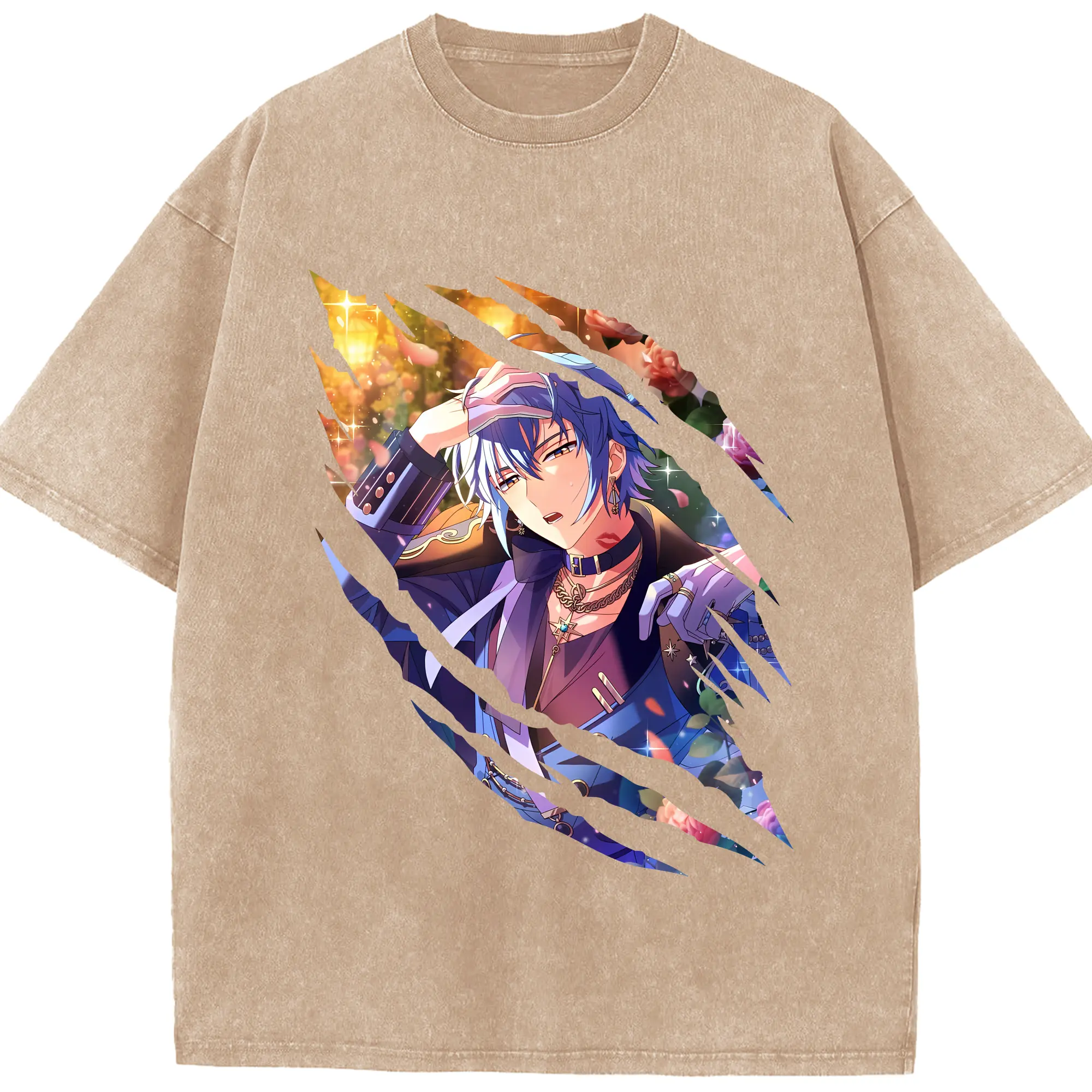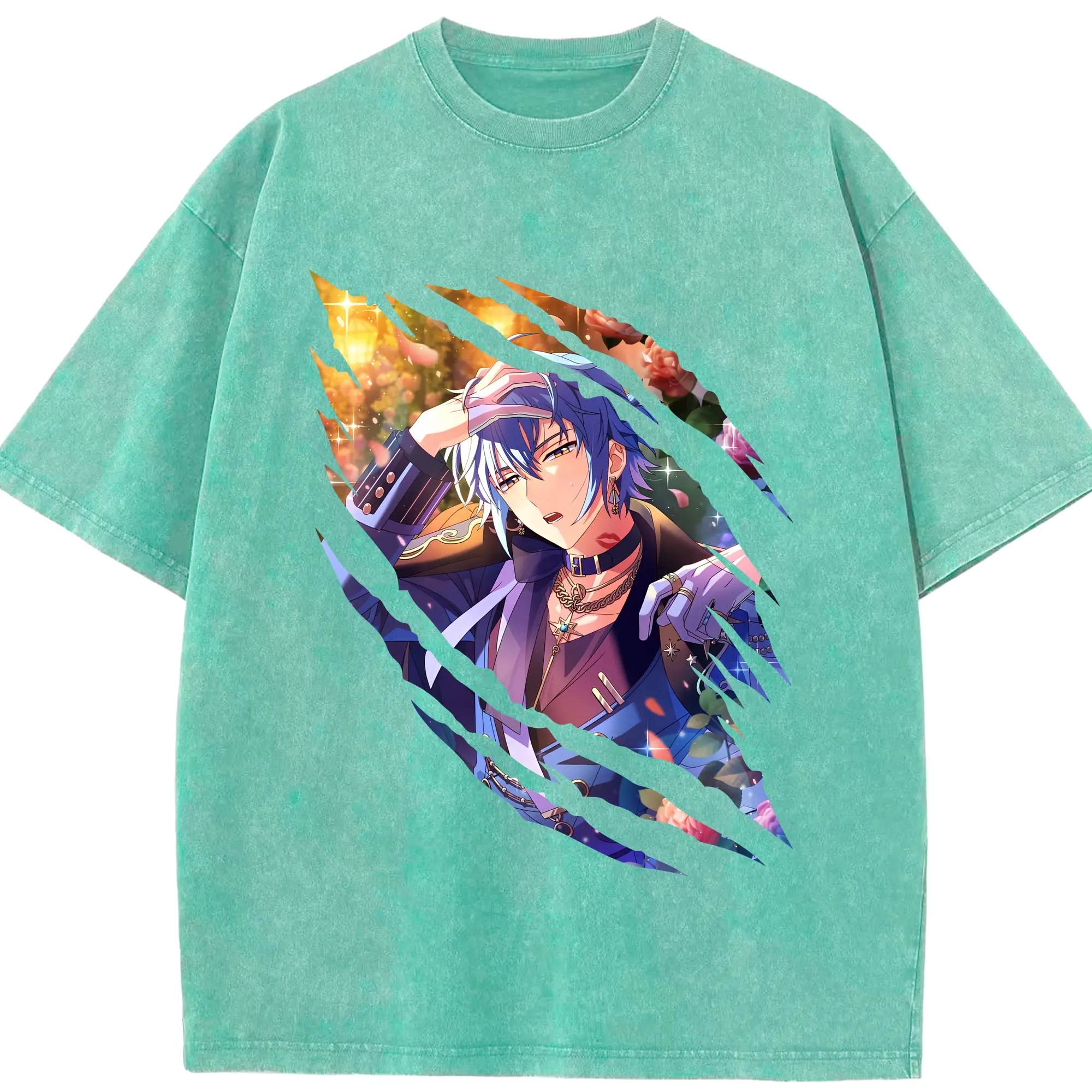 あんさん ぶる グッズ 流星隊 守沢千秋 - 綿100% ヴィンテージ風 半袖Tシャツ ・ フロントプリント ・ 柔らか肌触り ・ 通気性 快適 ・ スポーツ カジュアル 外出用