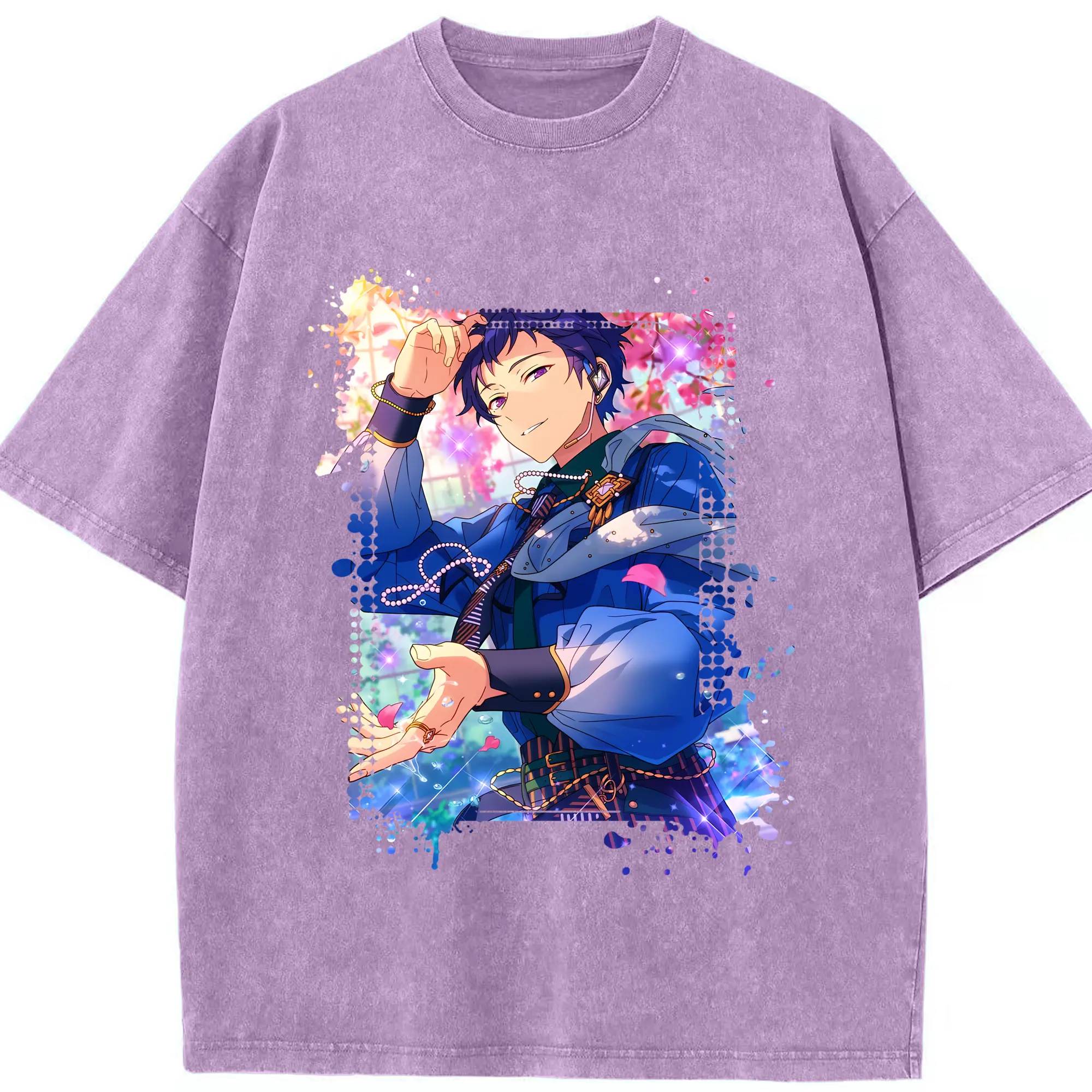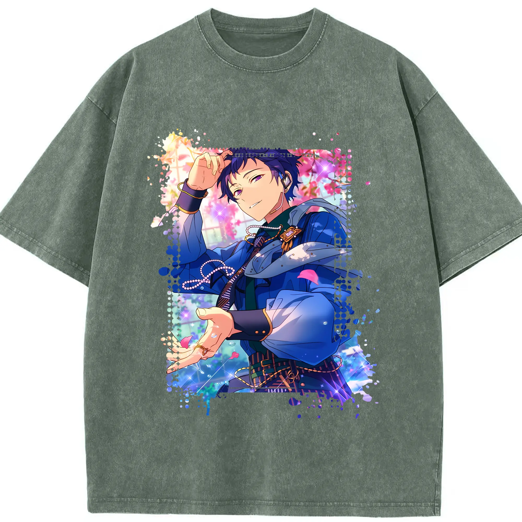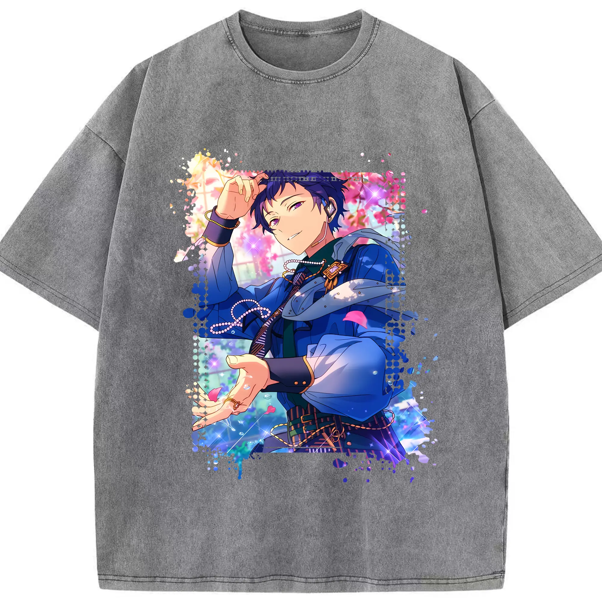 あんさん ぶる グッズ fine 伏見弓弦 - 綿100% ヴィンテージ風 半袖Tシャツ ・ 背面プリント ・ 柔らか肌触り ・ 通気性 快適 ・ スポーツ カジュアル 外出用