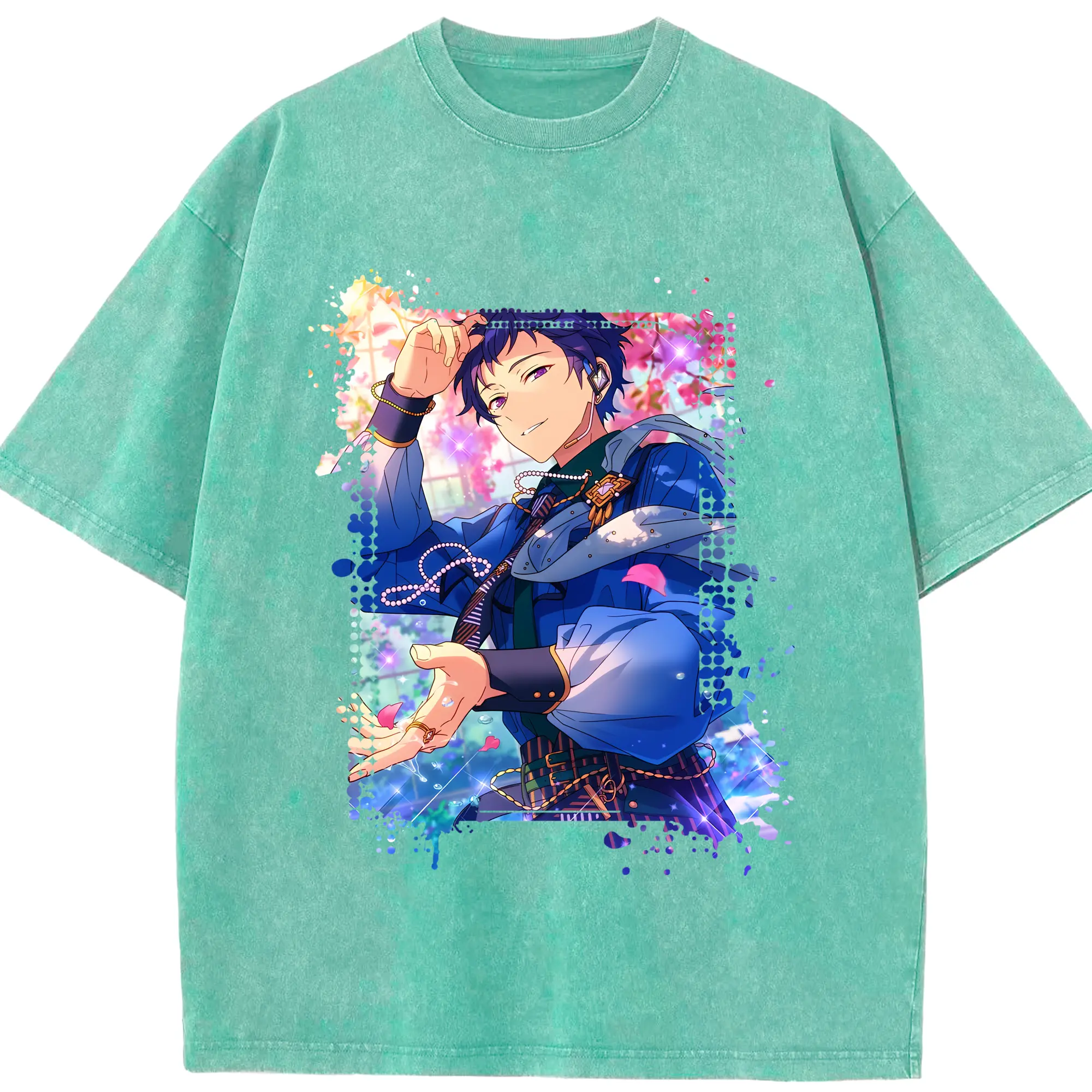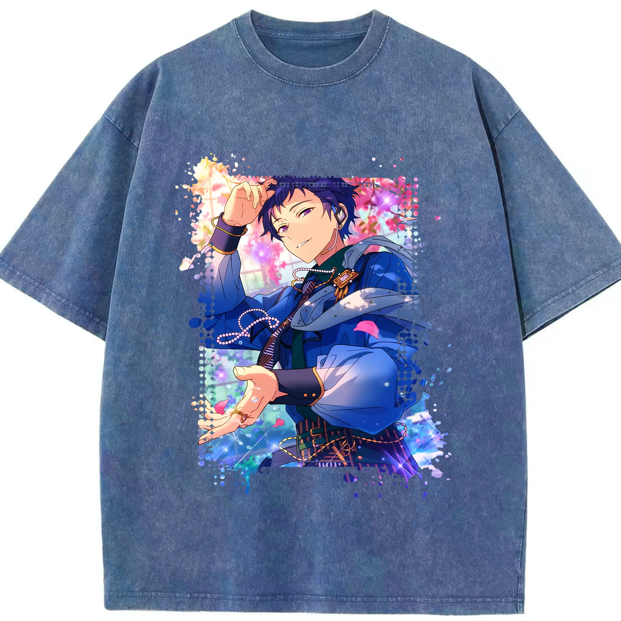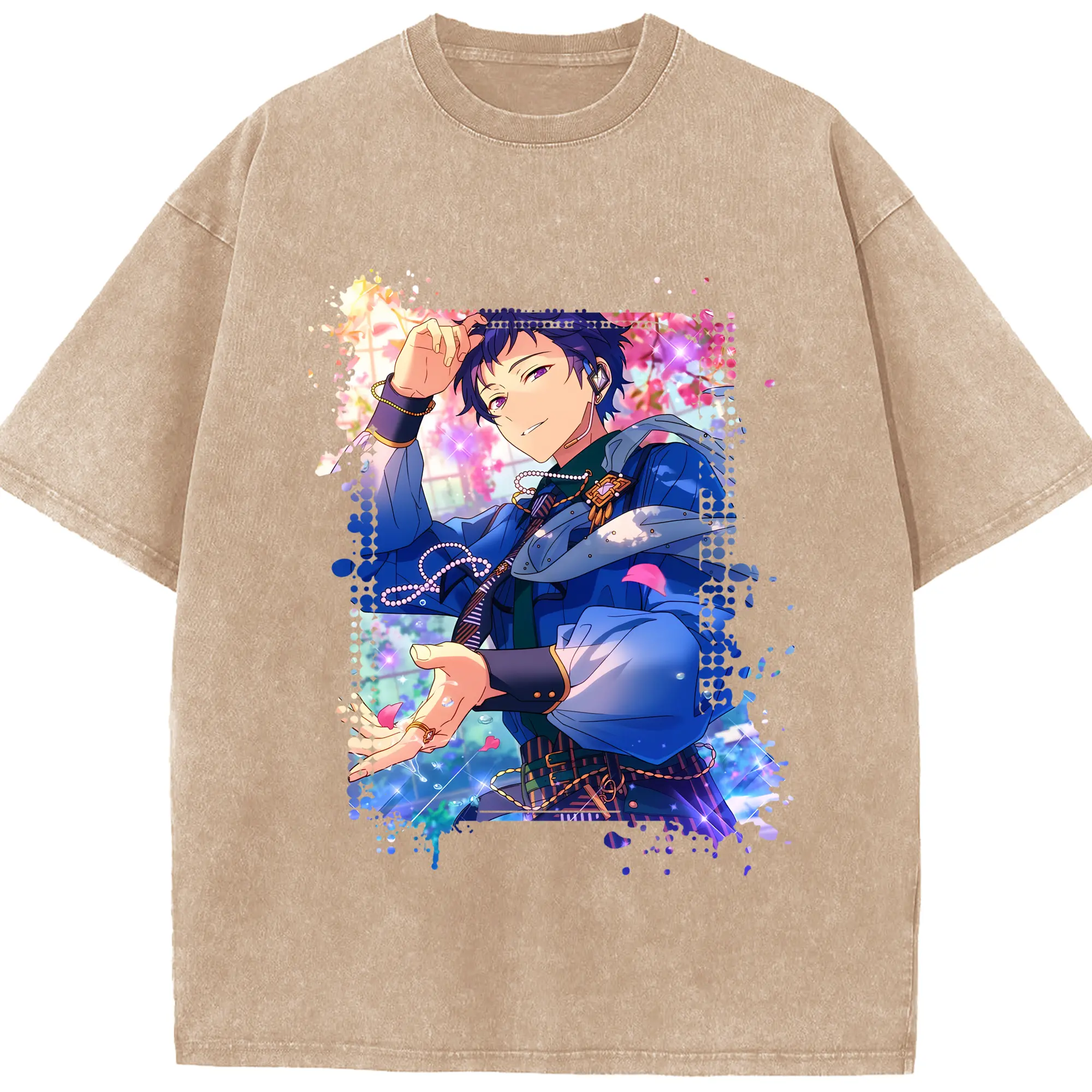 あんさん ぶる グッズ fine 伏見弓弦 - 綿100% ヴィンテージ風 半袖Tシャツ ・ 背面プリント ・ 柔らか肌触り ・ 通気性 快適 ・ スポーツ カジュアル 外出用