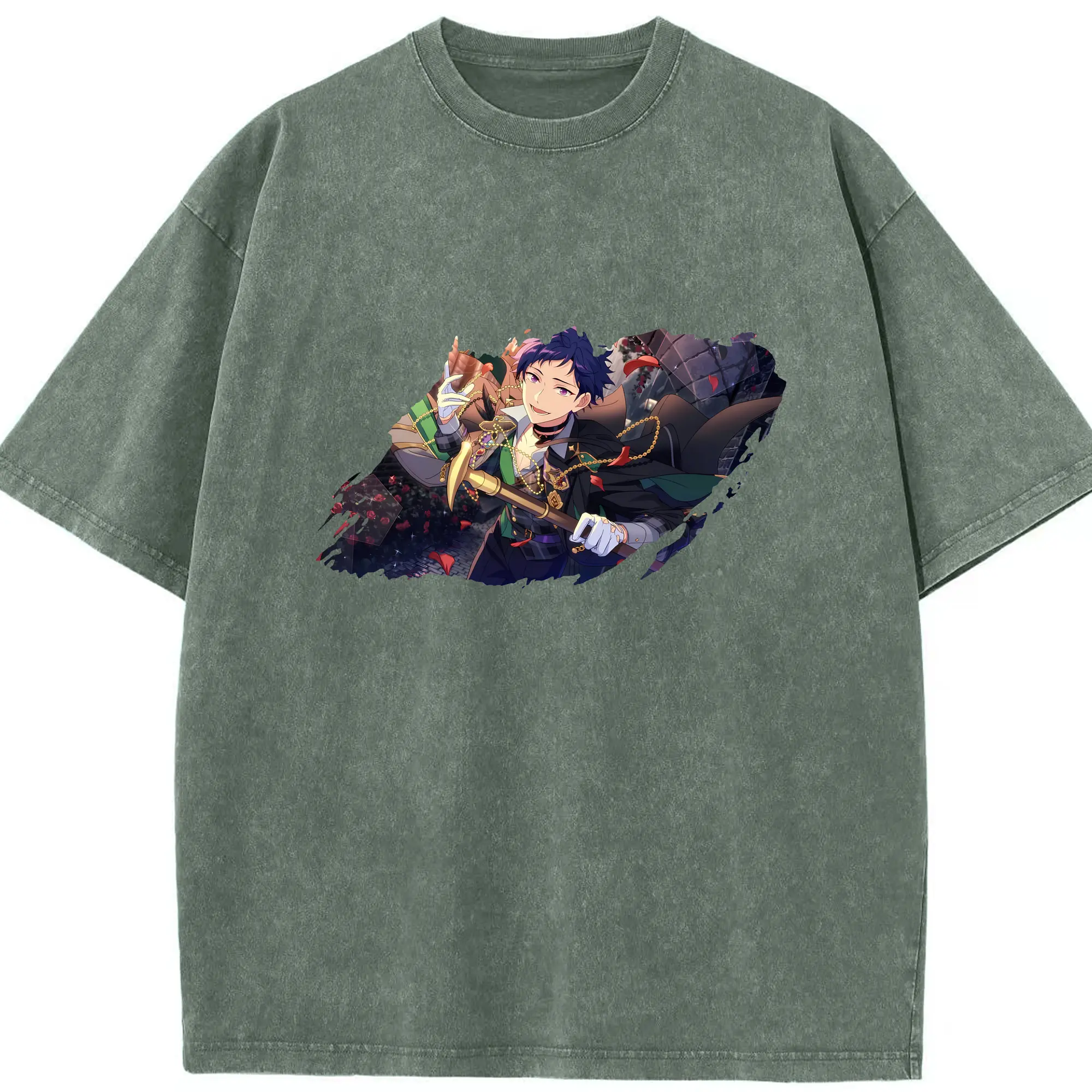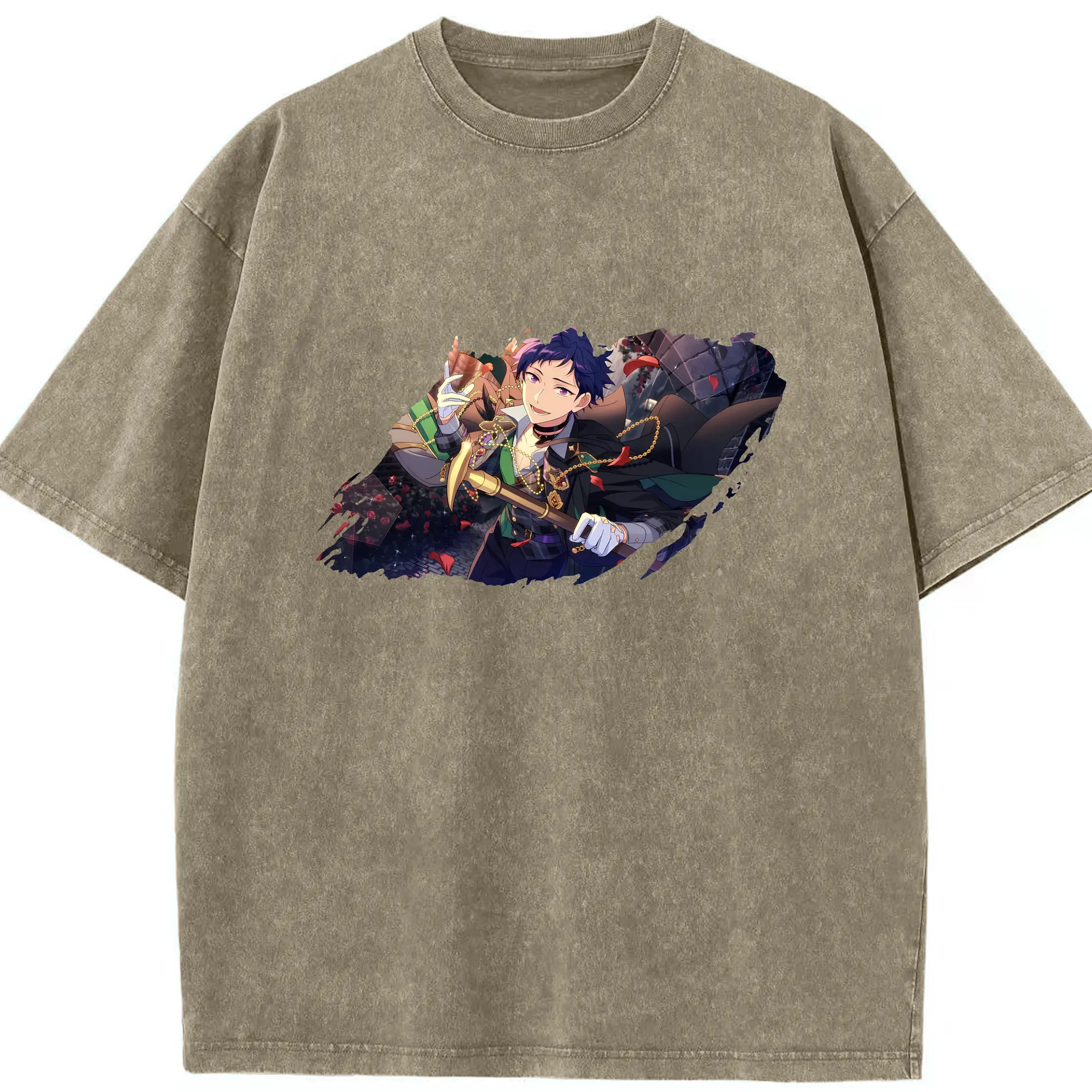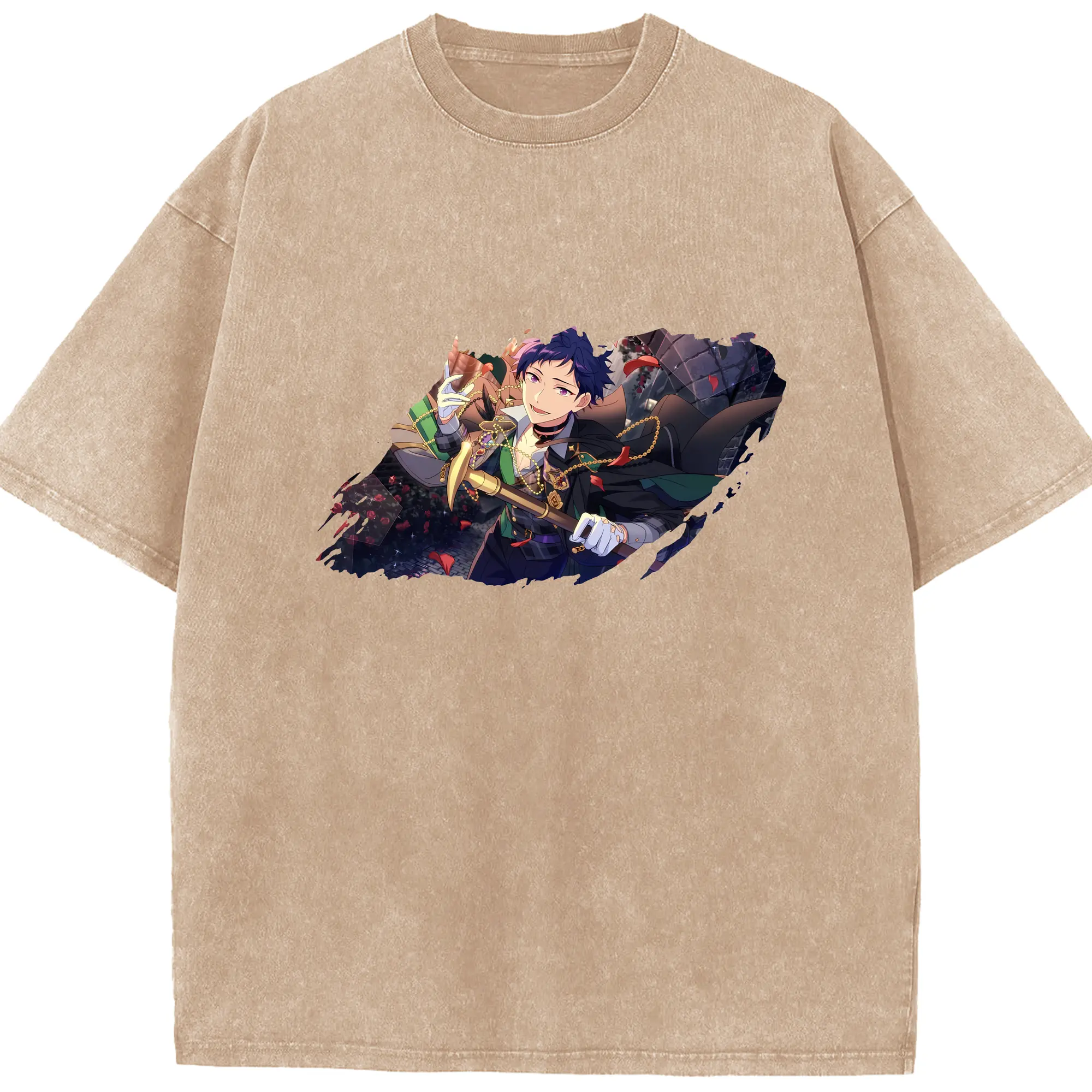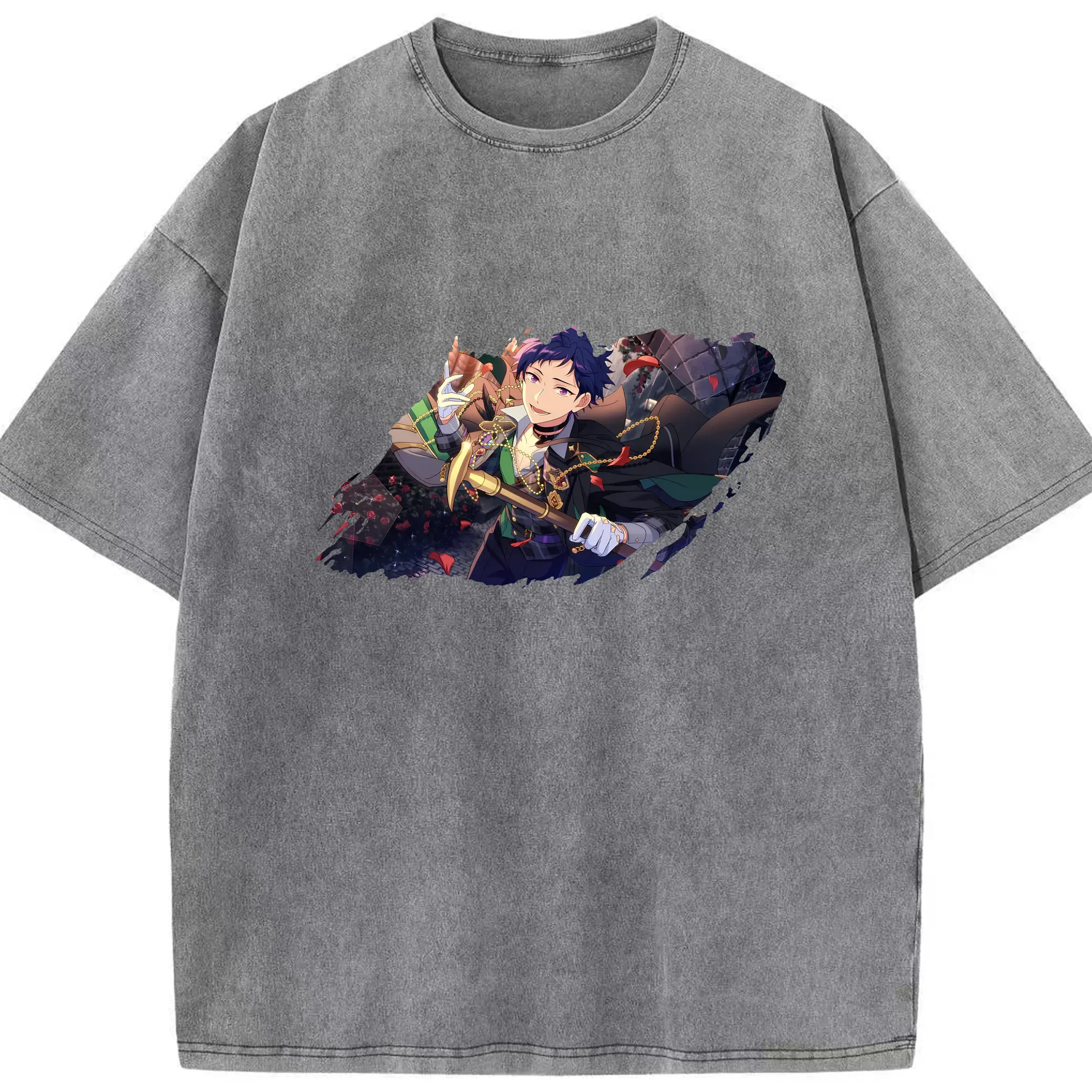あんさん ぶる グッズ Trickstar 明星スバル - 綿100% ヴィンテージ風 半袖Tシャツ ・ フロントプリント ・ 柔らか肌触り ・ 通気性 快適 ・ スポーツ カジュアル 外出用