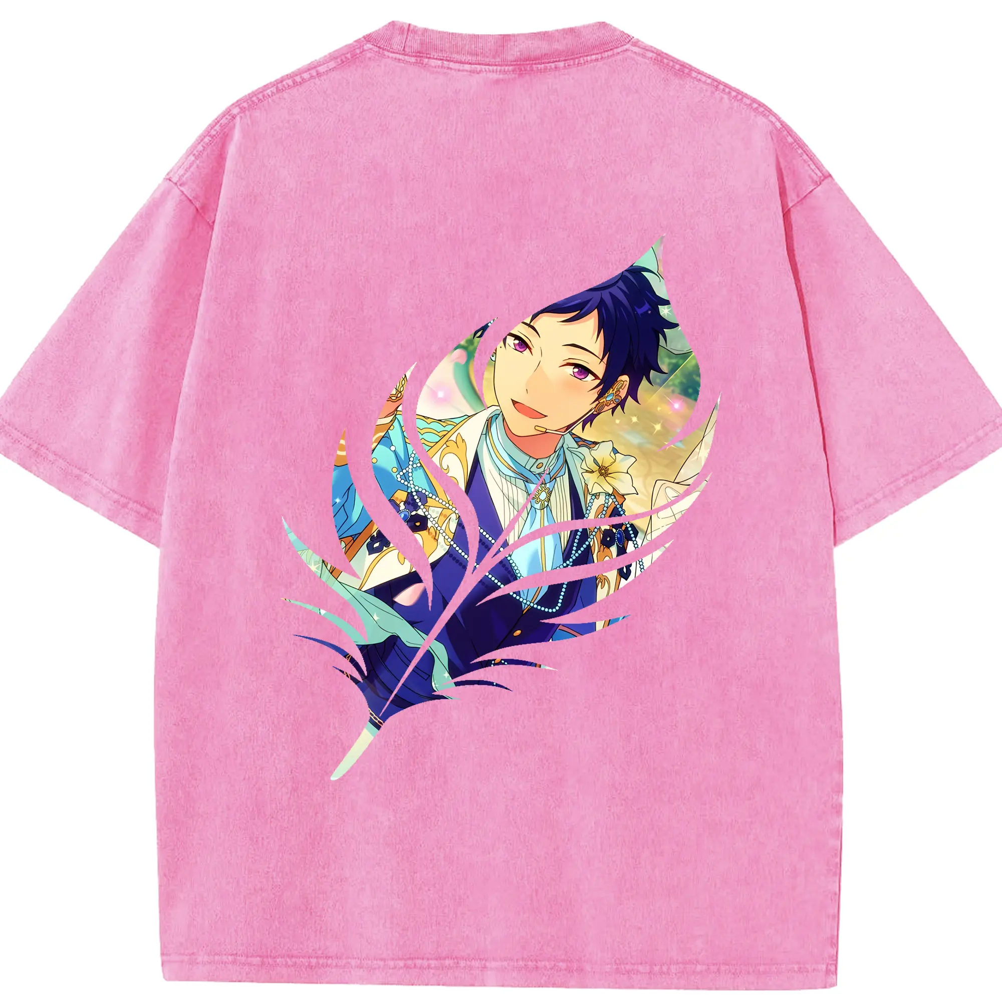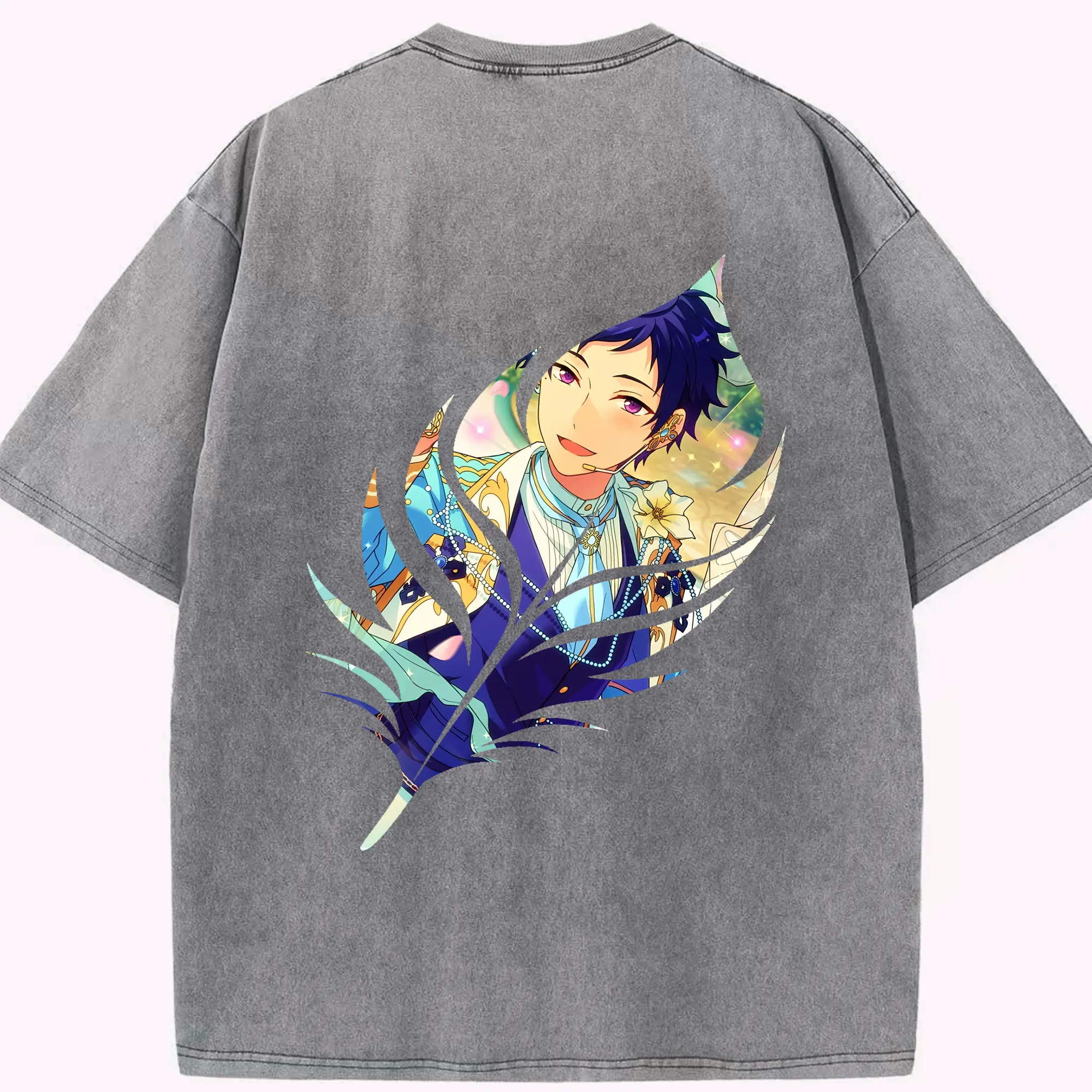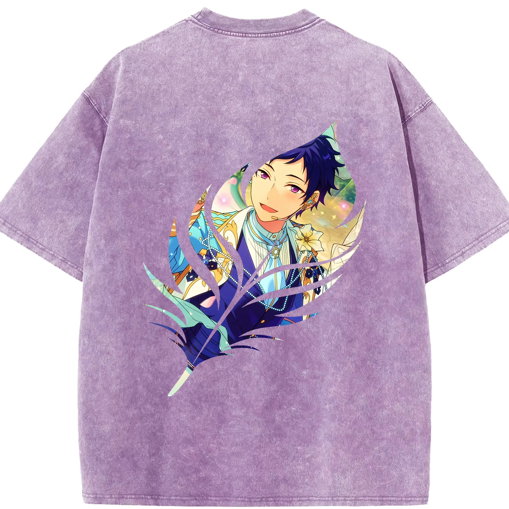 あんさん ぶる グッズ Trickstar 明星スバル - 綿100% ヴィンテージ風 半袖Tシャツ ・ 背面プリント ・ 柔らか肌触り ・ 通気性 快適 ・ スポーツ カジュアル 外出用
