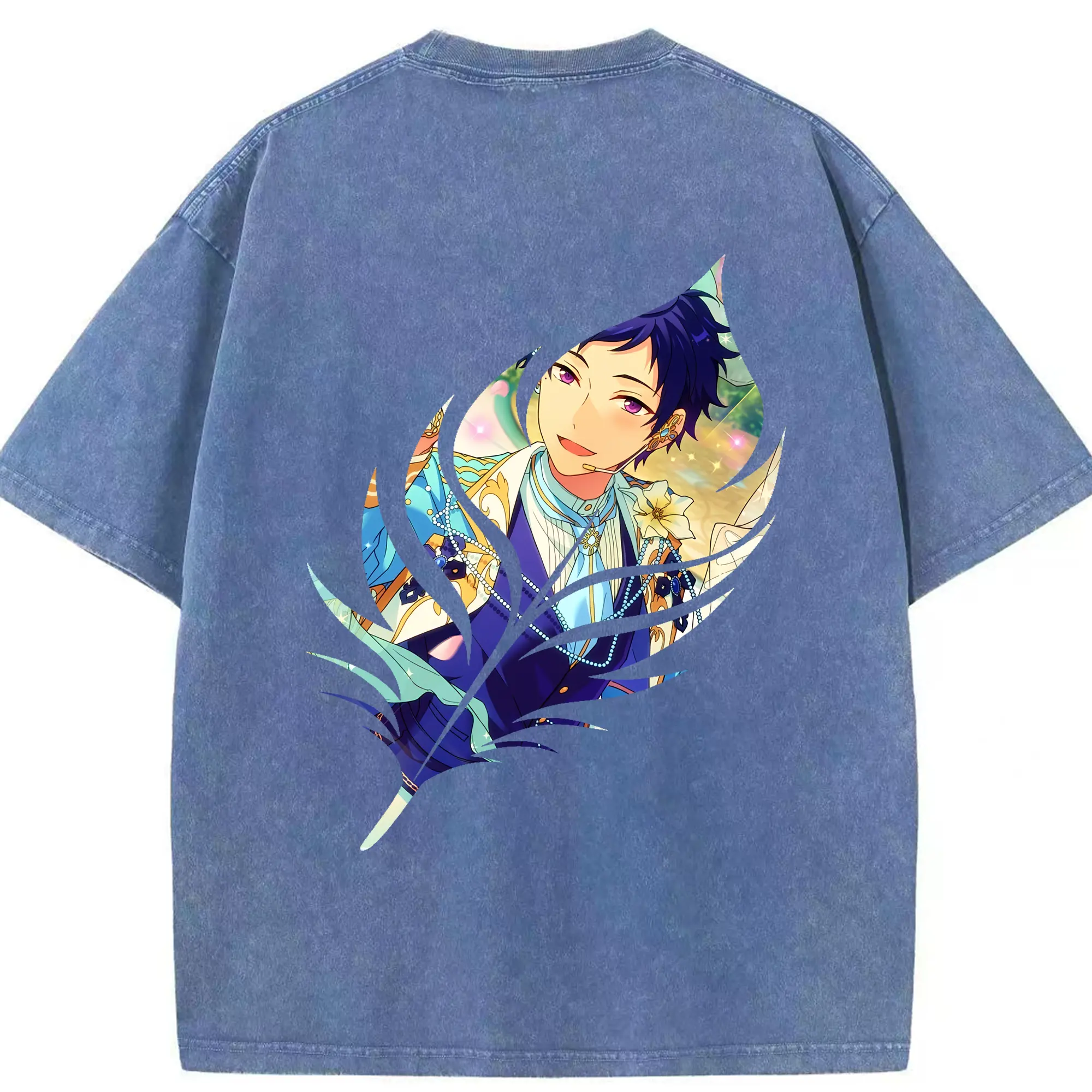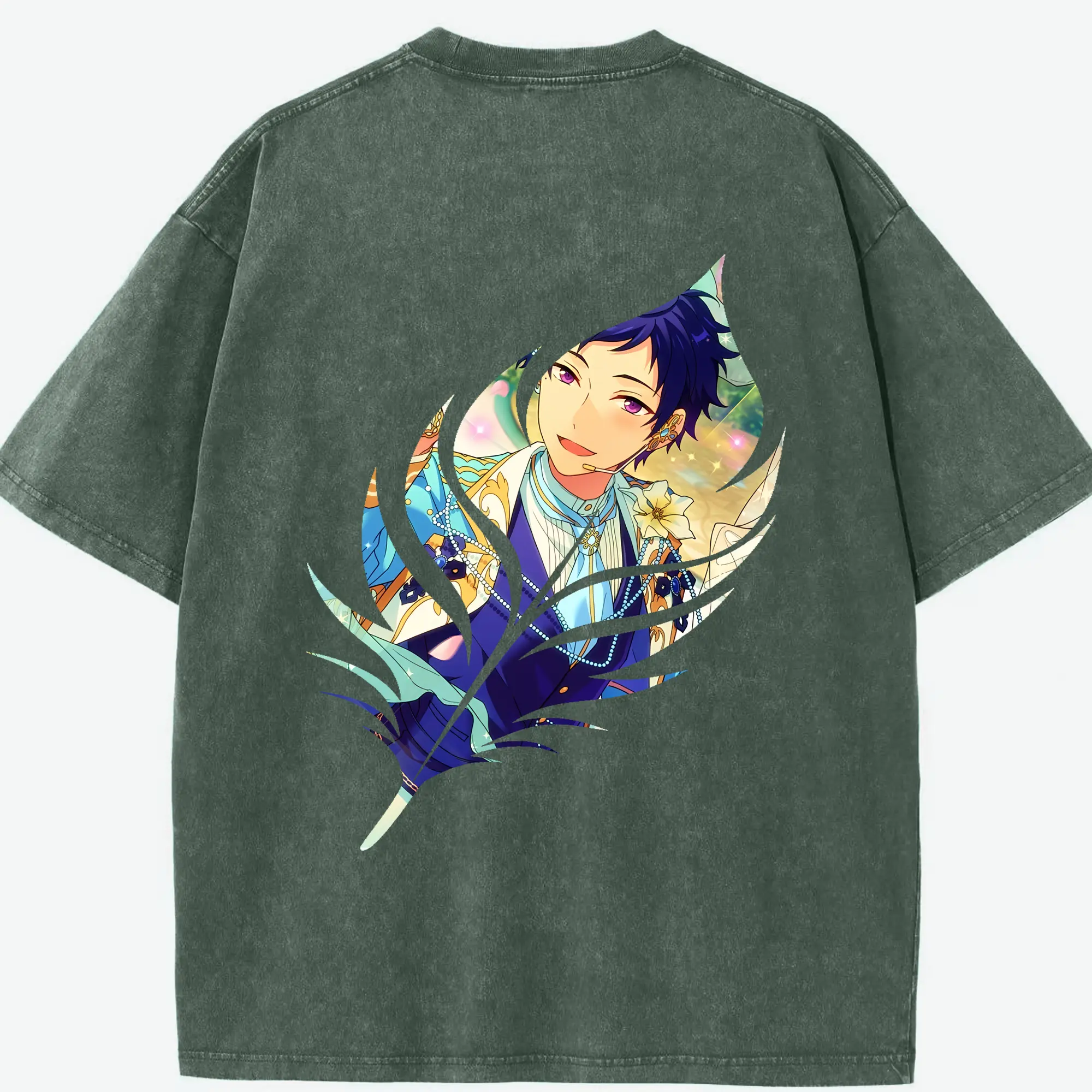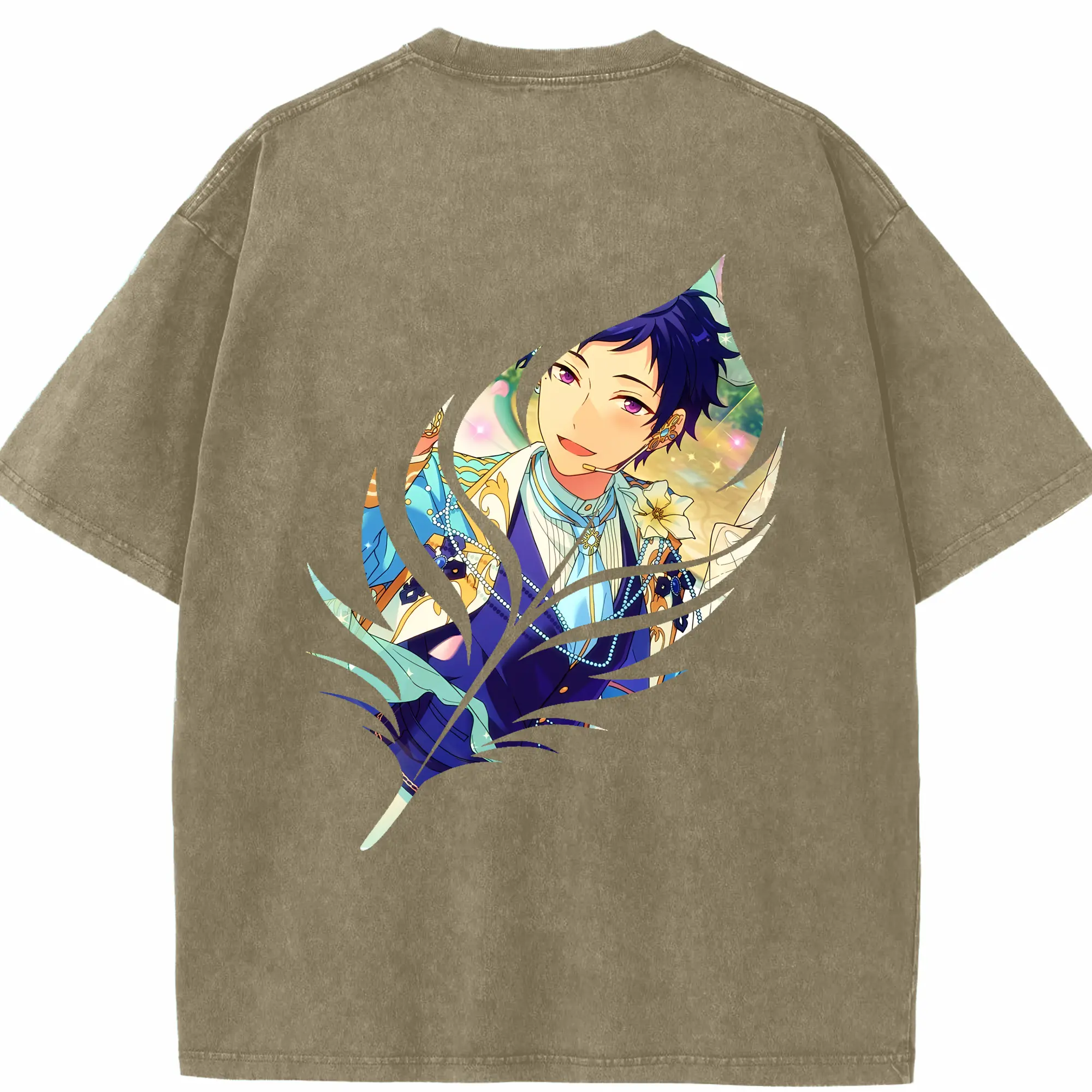 あんさん ぶる グッズ Trickstar 明星スバル - 綿100% ヴィンテージ風 半袖Tシャツ ・ 背面プリント ・ 柔らか肌触り ・ 通気性 快適 ・ スポーツ カジュアル 外出用