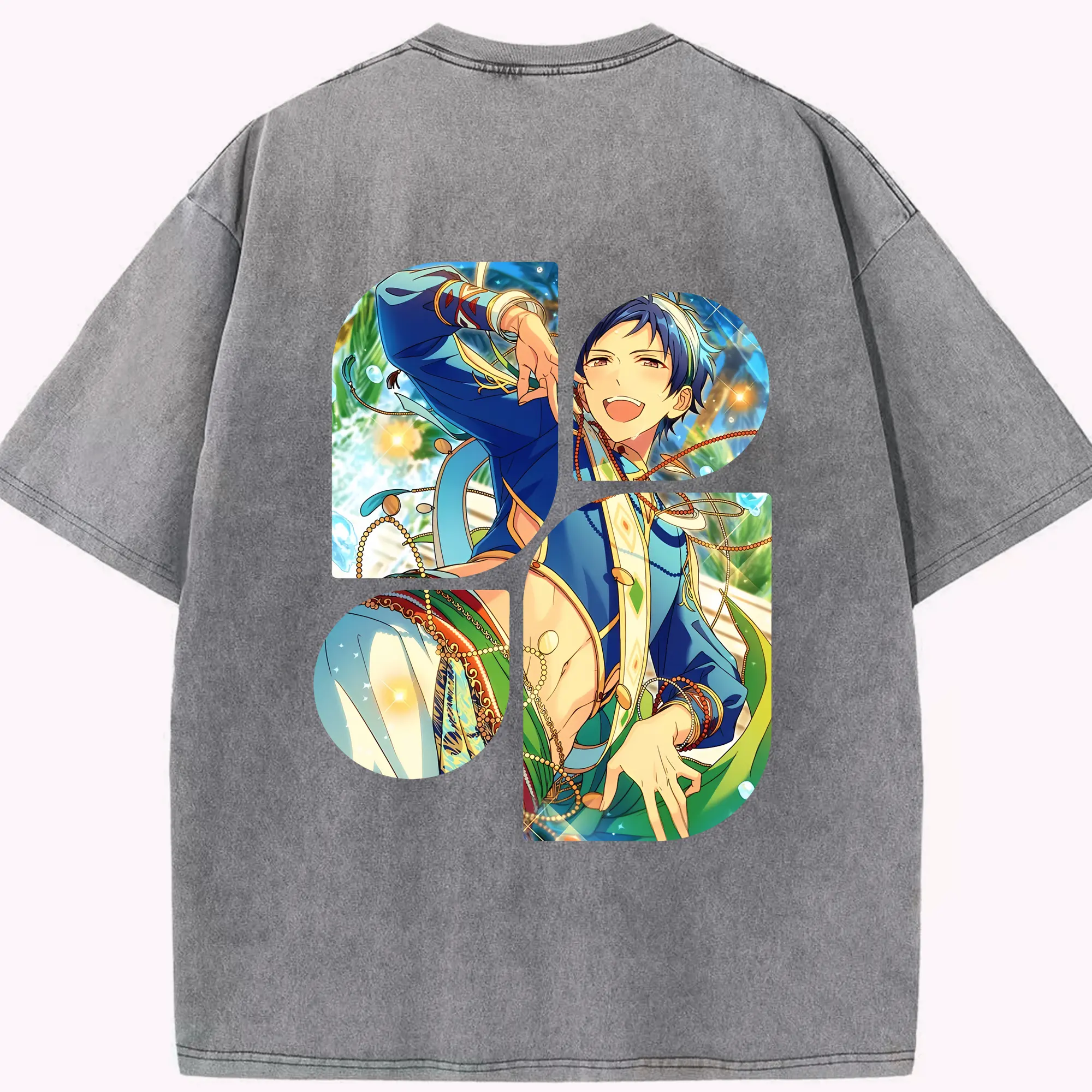 あんさん ぶる グッズ fine 伏見弓弦 - 綿100% ヴィンテージ風 半袖Tシャツ ・ フロントプリント ・ 柔らか肌触り ・ 通気性 快適 ・ スポーツ カジュアル 外出用