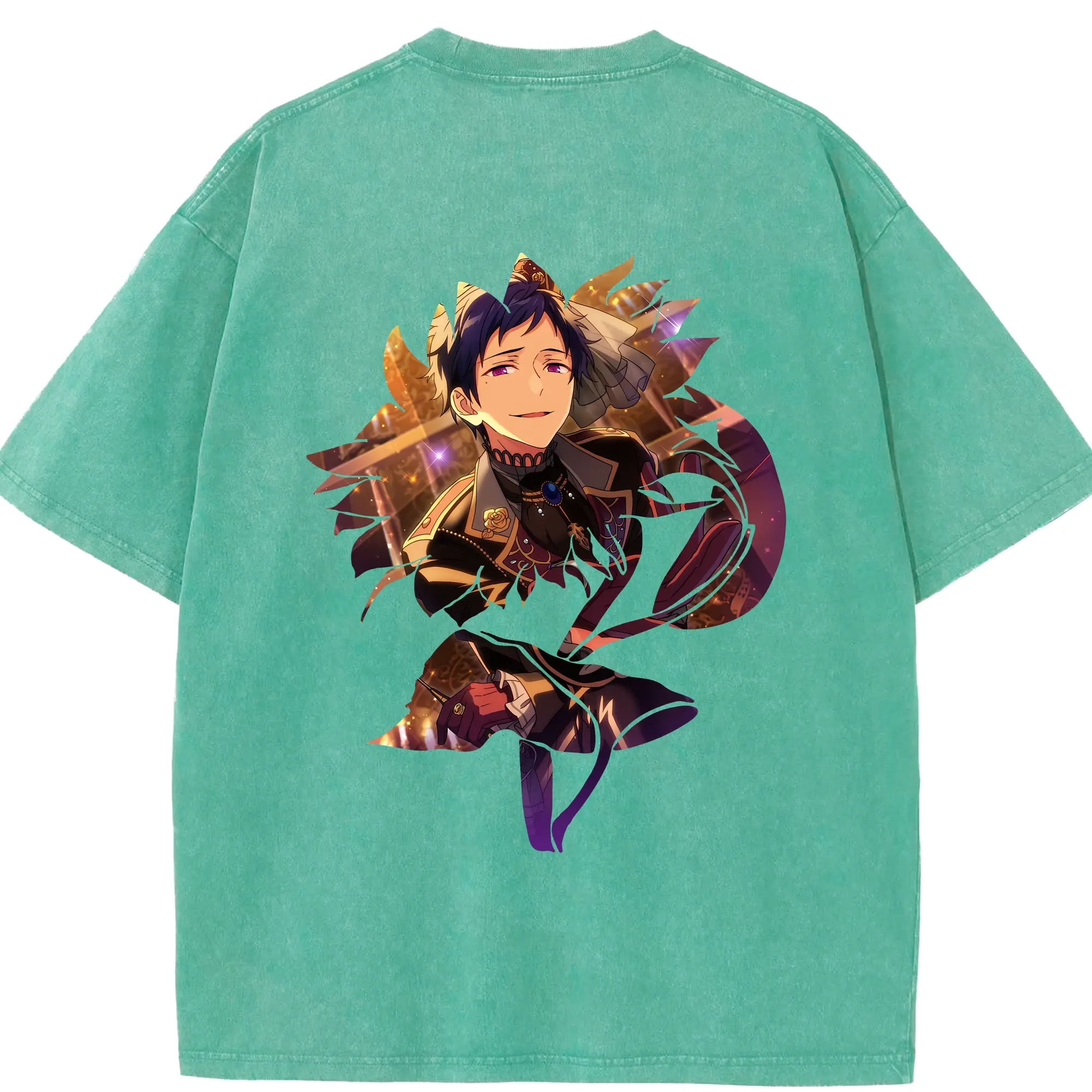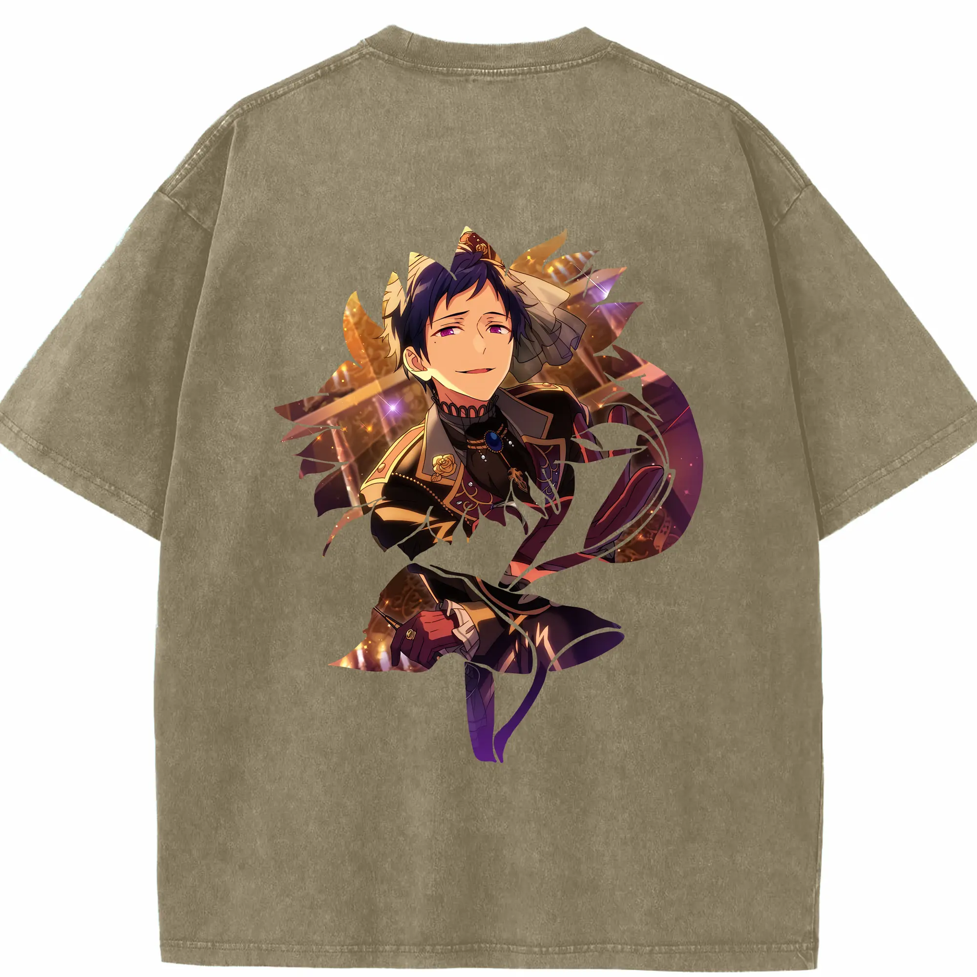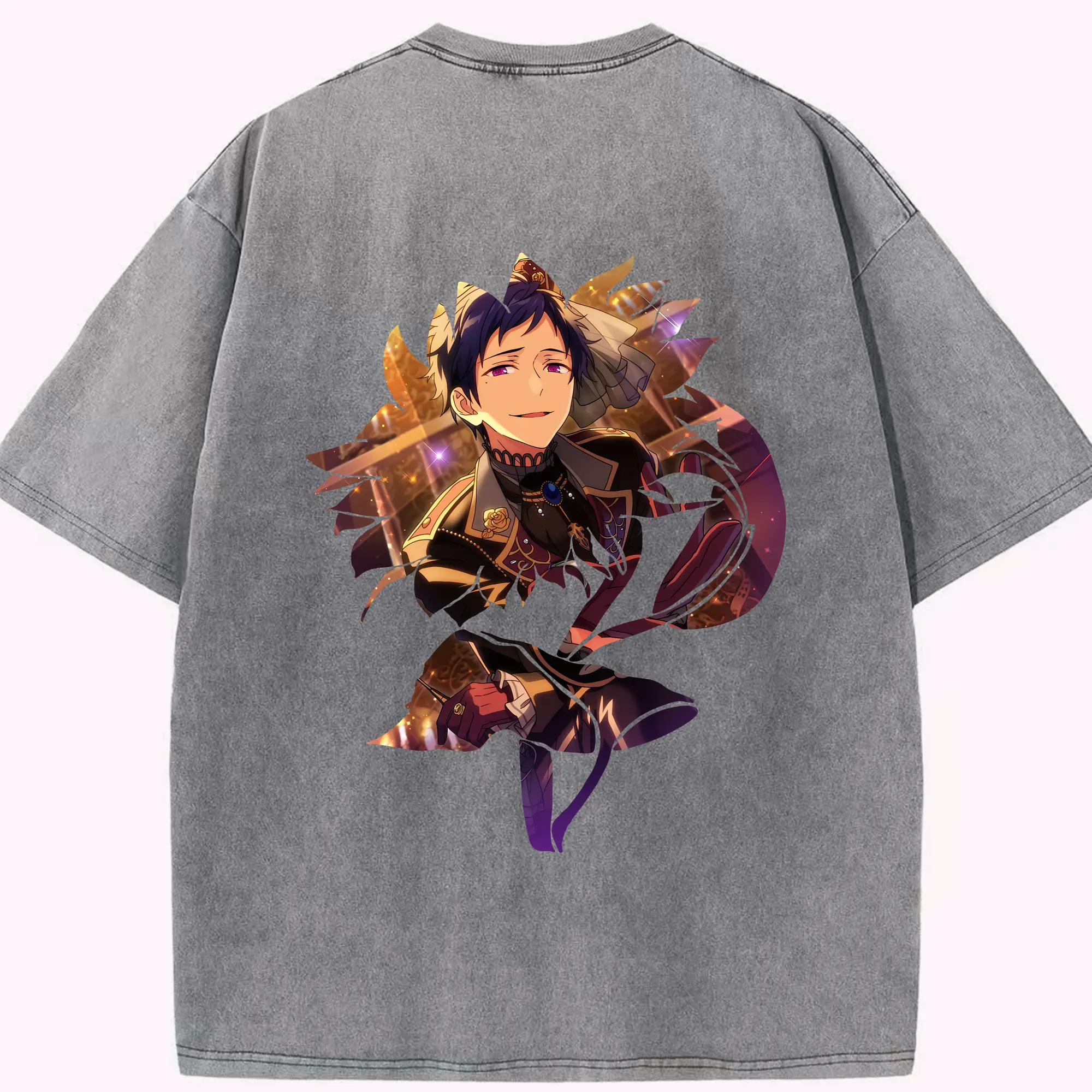 あんさん ぶる グッズ UNDEAD 朔間零 - 綿100% ヴィンテージ風 半袖Tシャツ ・ 背面プリント ・ 柔らか肌触り ・ 通気性 快適 ・ スポーツ カジュアル 外出用