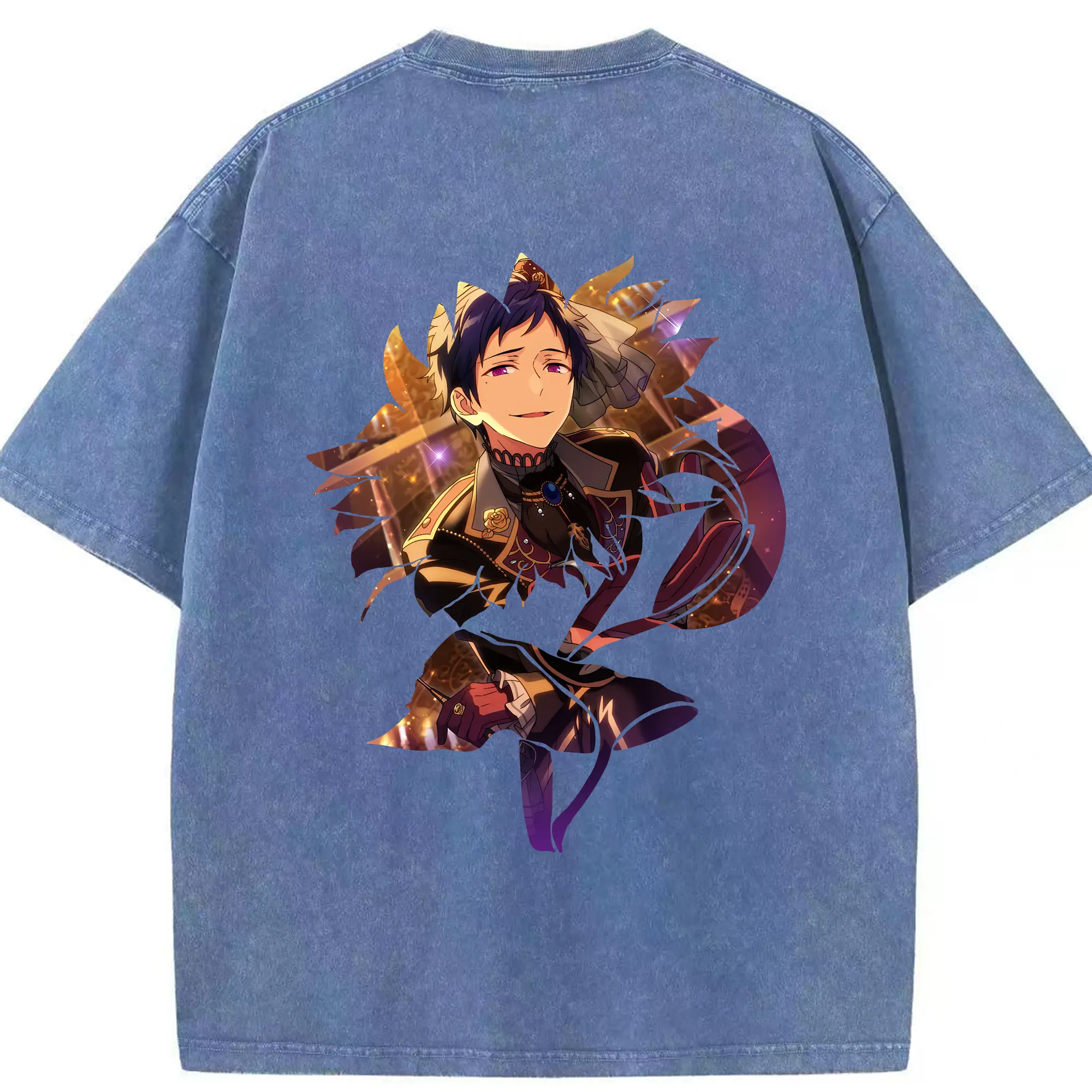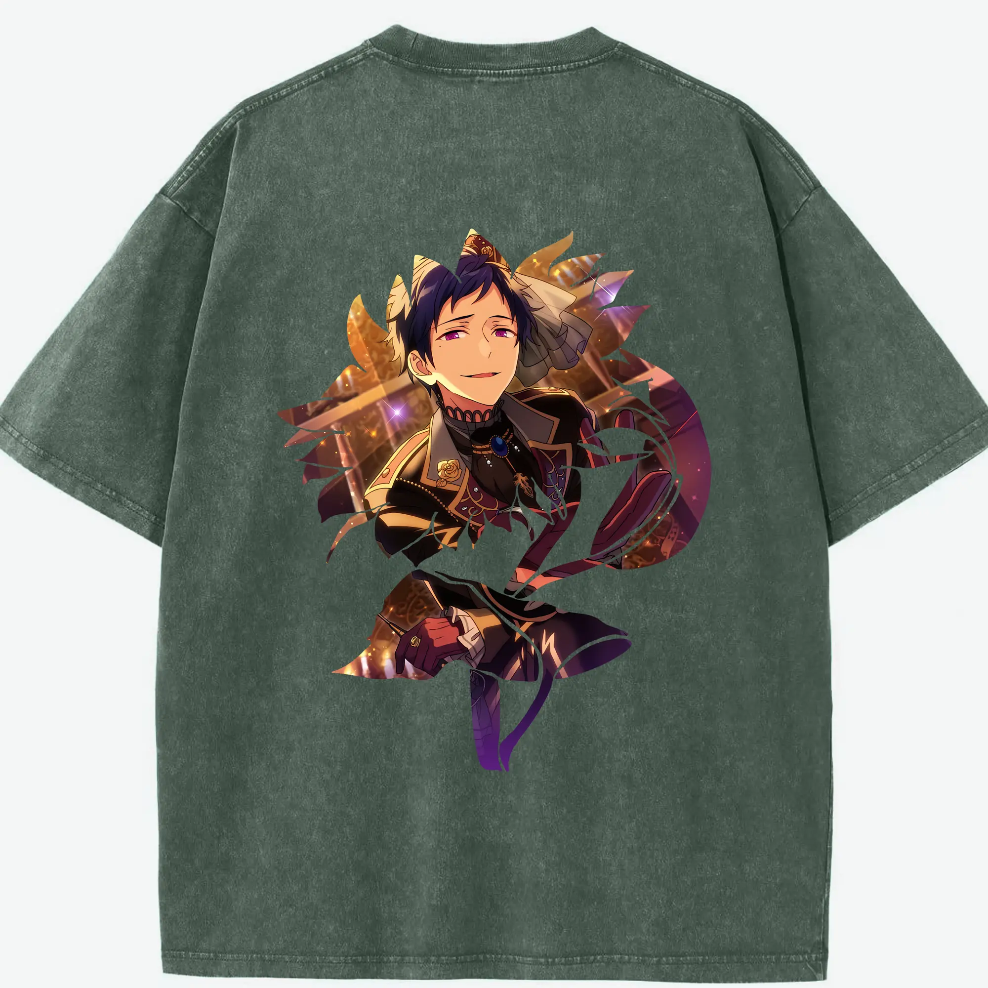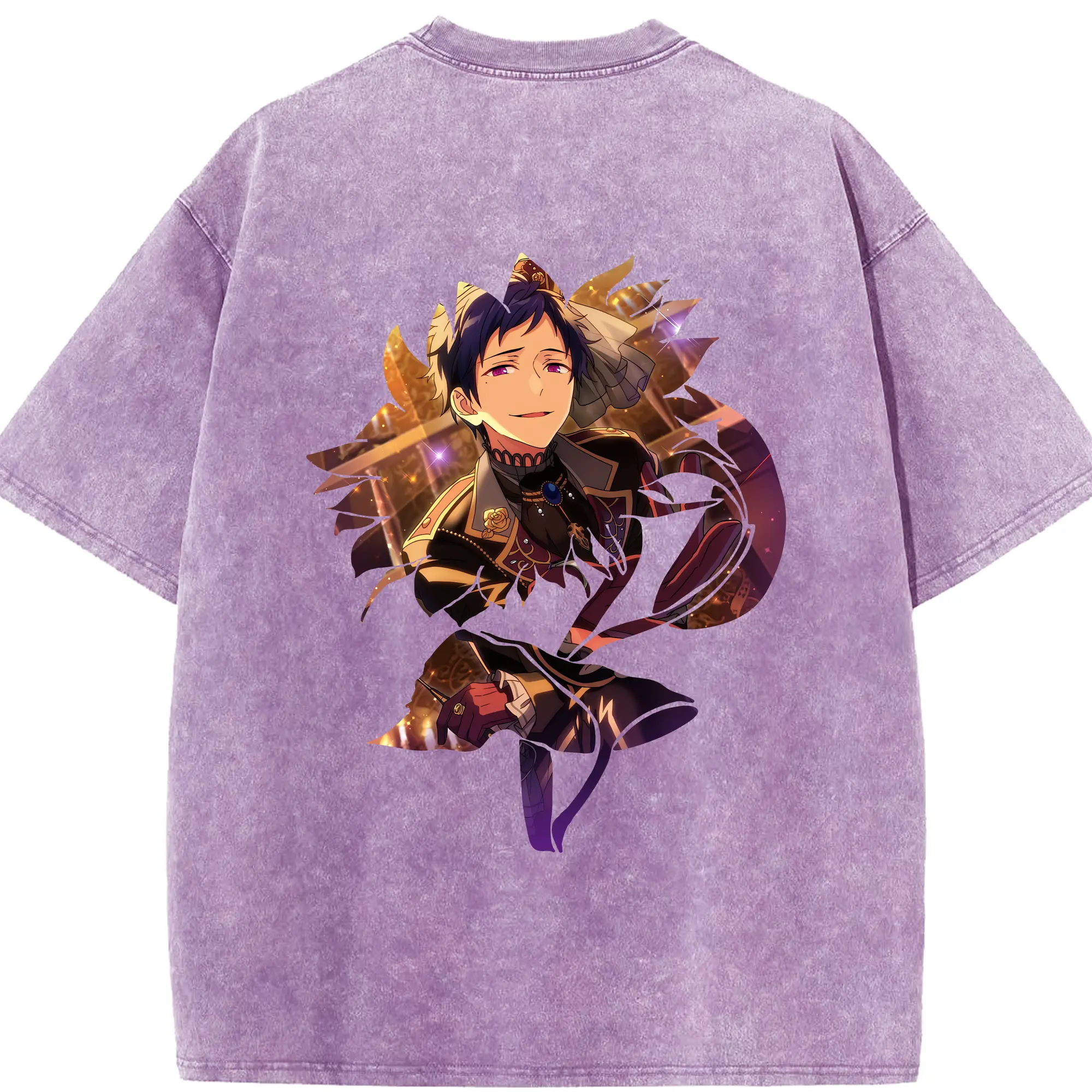あんさん ぶる グッズ UNDEAD 朔間零 - 綿100% ヴィンテージ風 半袖Tシャツ ・ 背面プリント ・ 柔らか肌触り ・ 通気性 快適 ・ スポーツ カジュアル 外出用