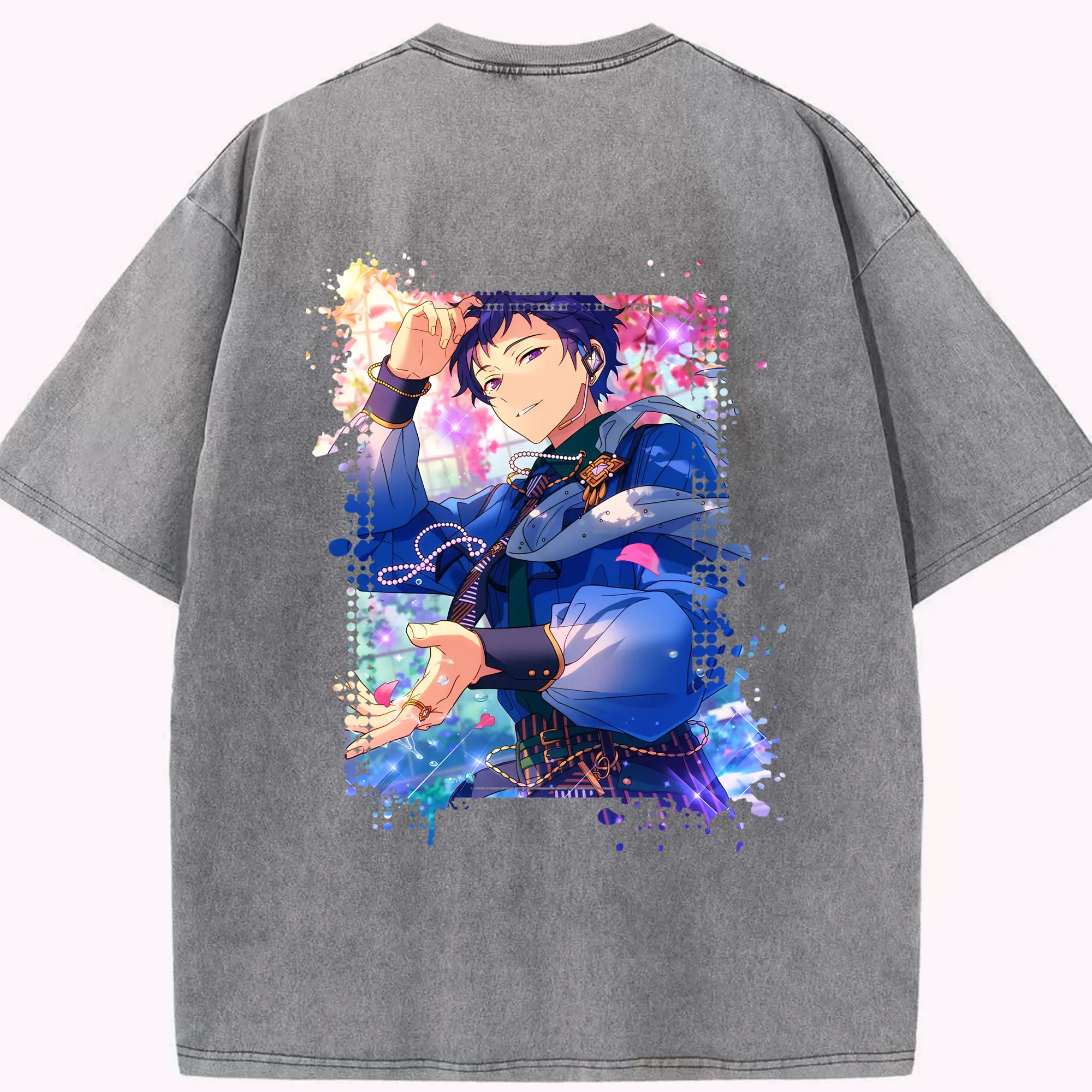 あんさん ぶる グッズ fine 伏見弓弦 - 綿100% ヴィンテージ風 半袖Tシャツ ・ フロントプリント ・ 柔らか肌触り ・ 通気性 快適 ・ スポーツ カジュアル 外出用
