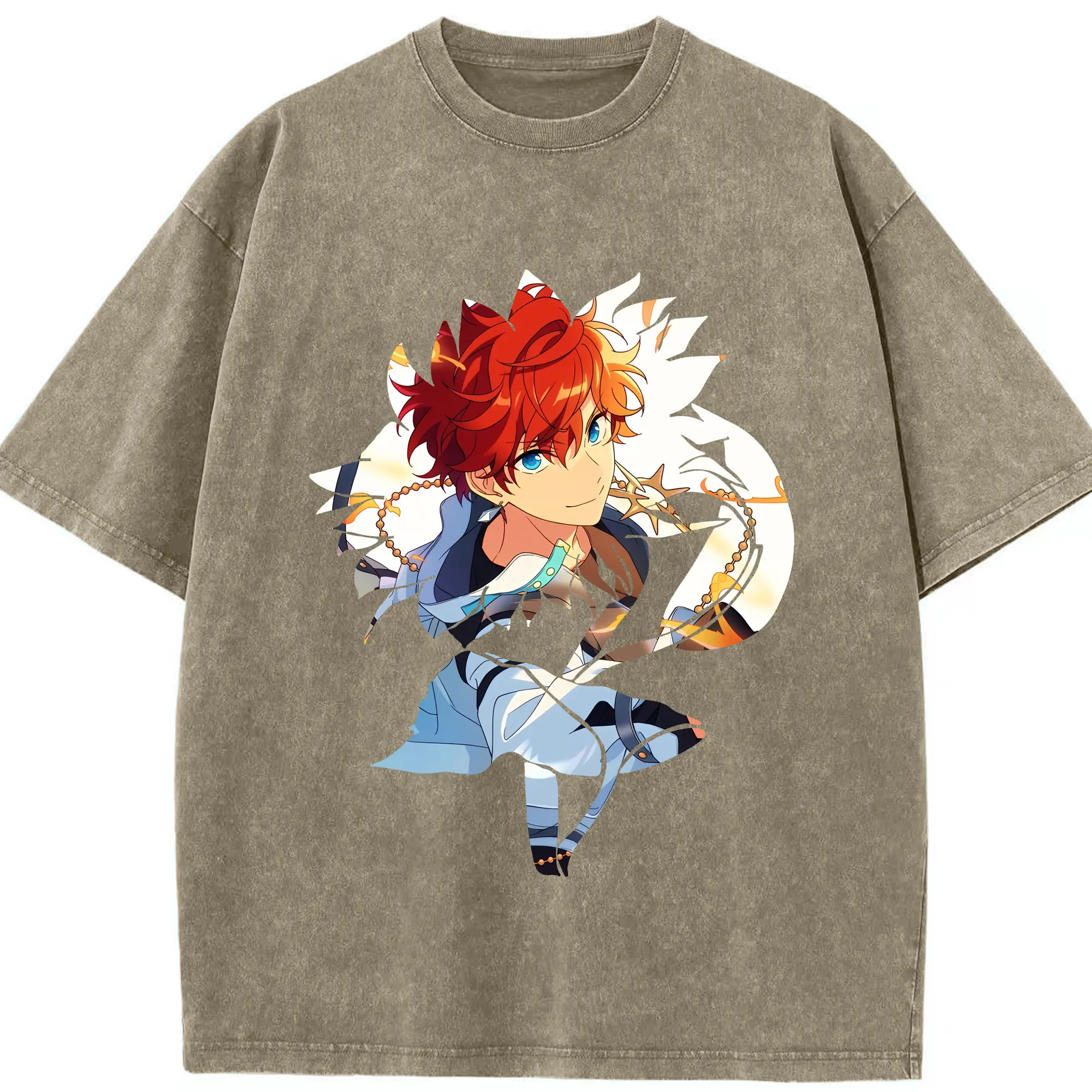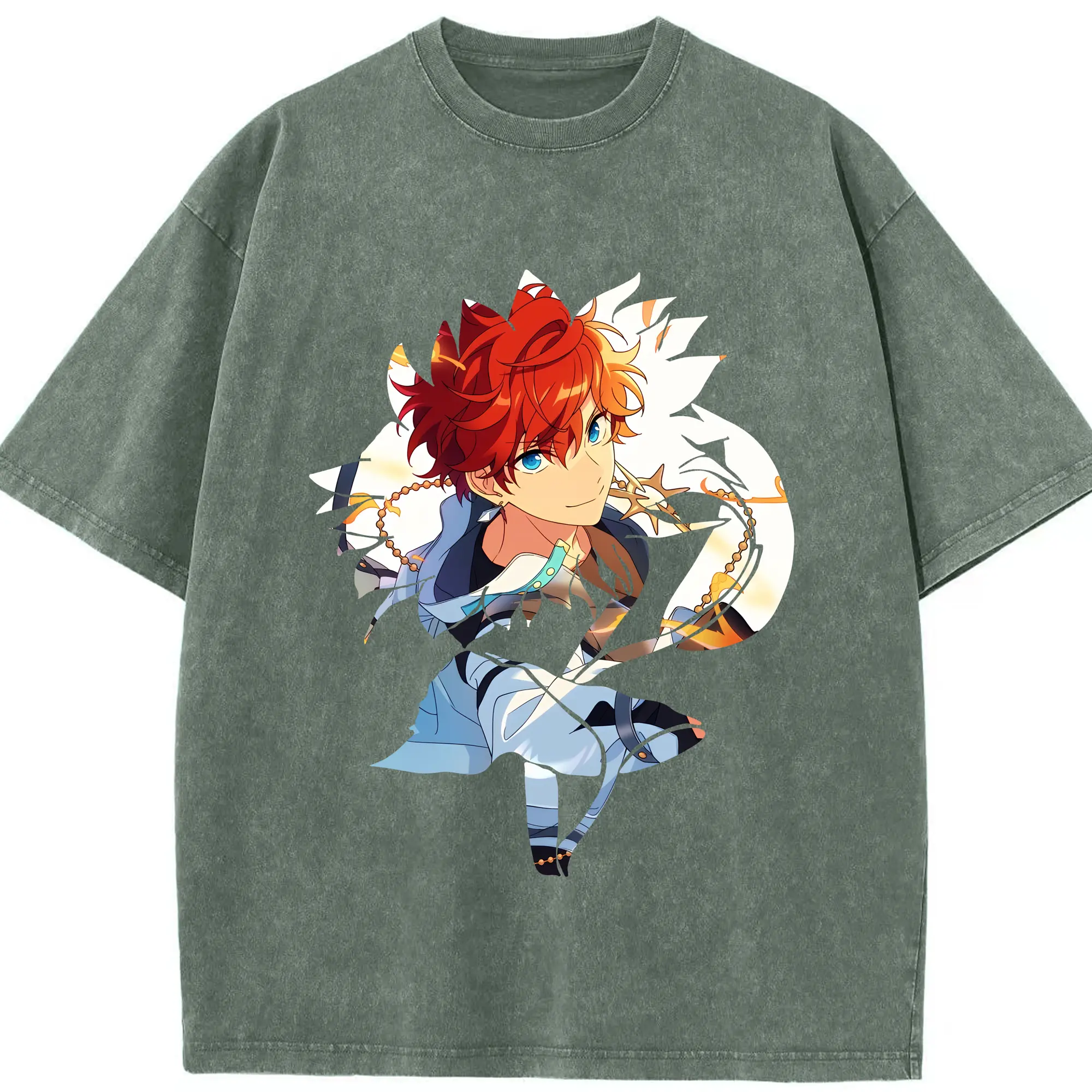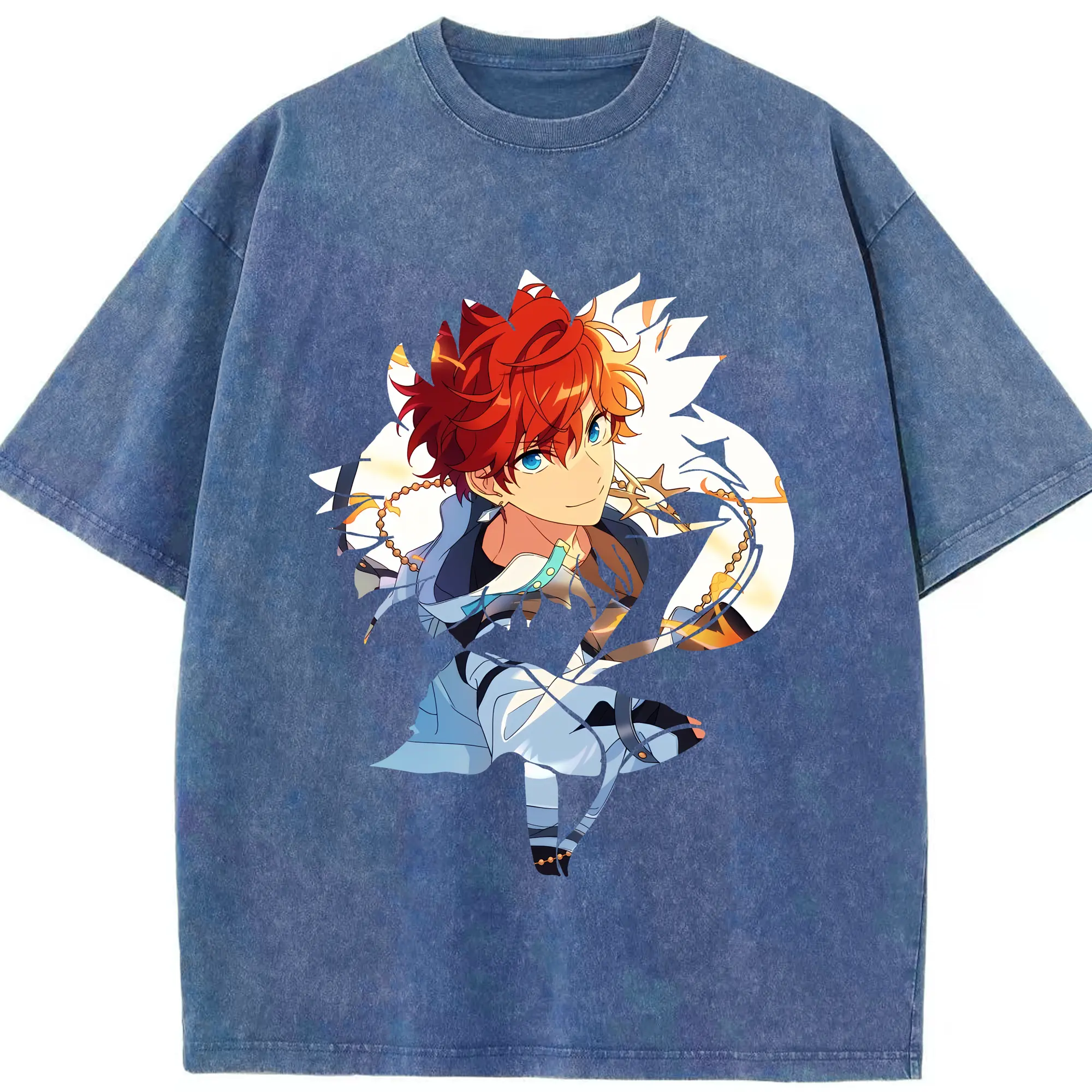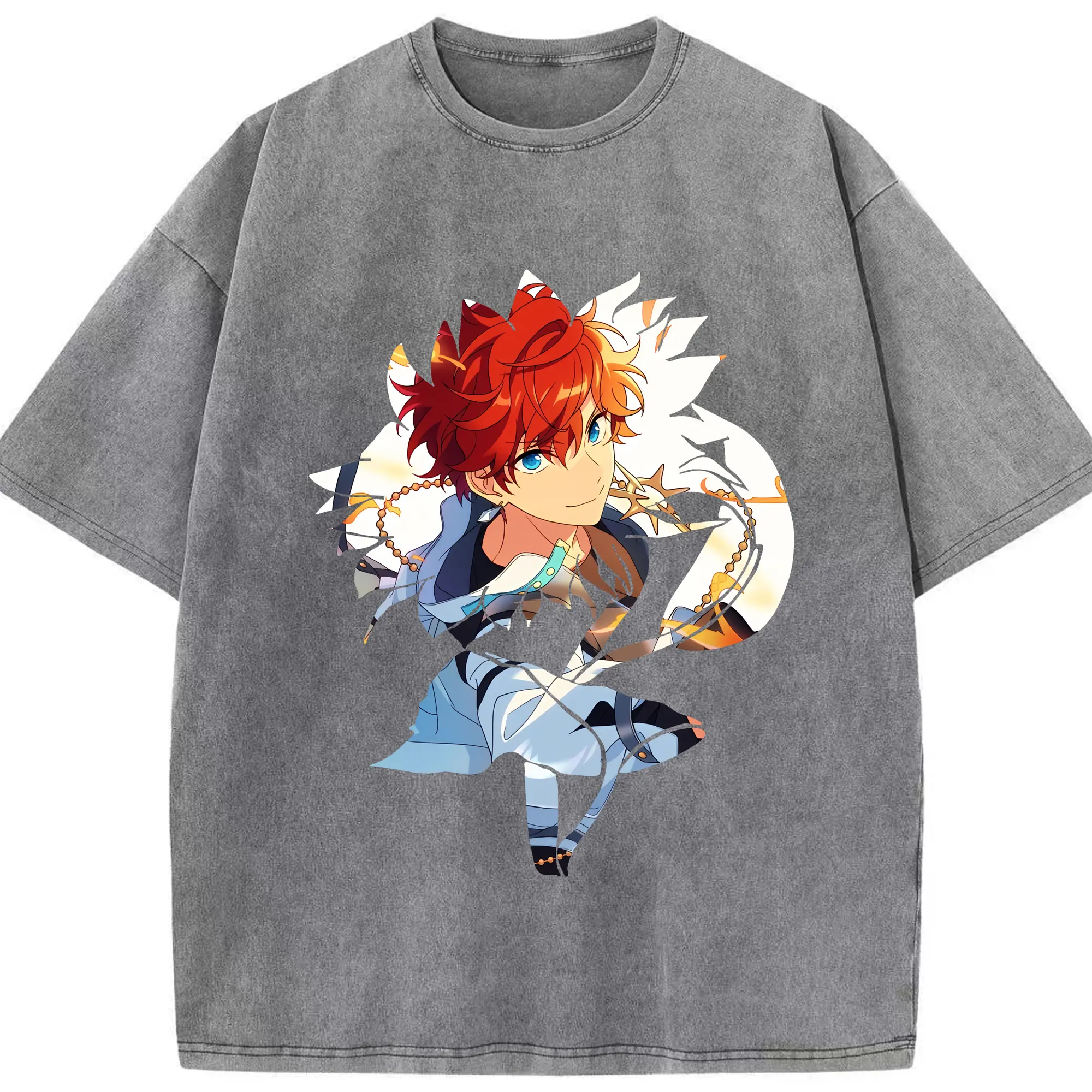 原 神 グッズ ディルック - 綿100% ヴィンテージ風 半袖Tシャツ ・ フロントプリント ・ 柔らか肌触り ・ 通気性 快適 ・ スポーツ カジュアル 外出用