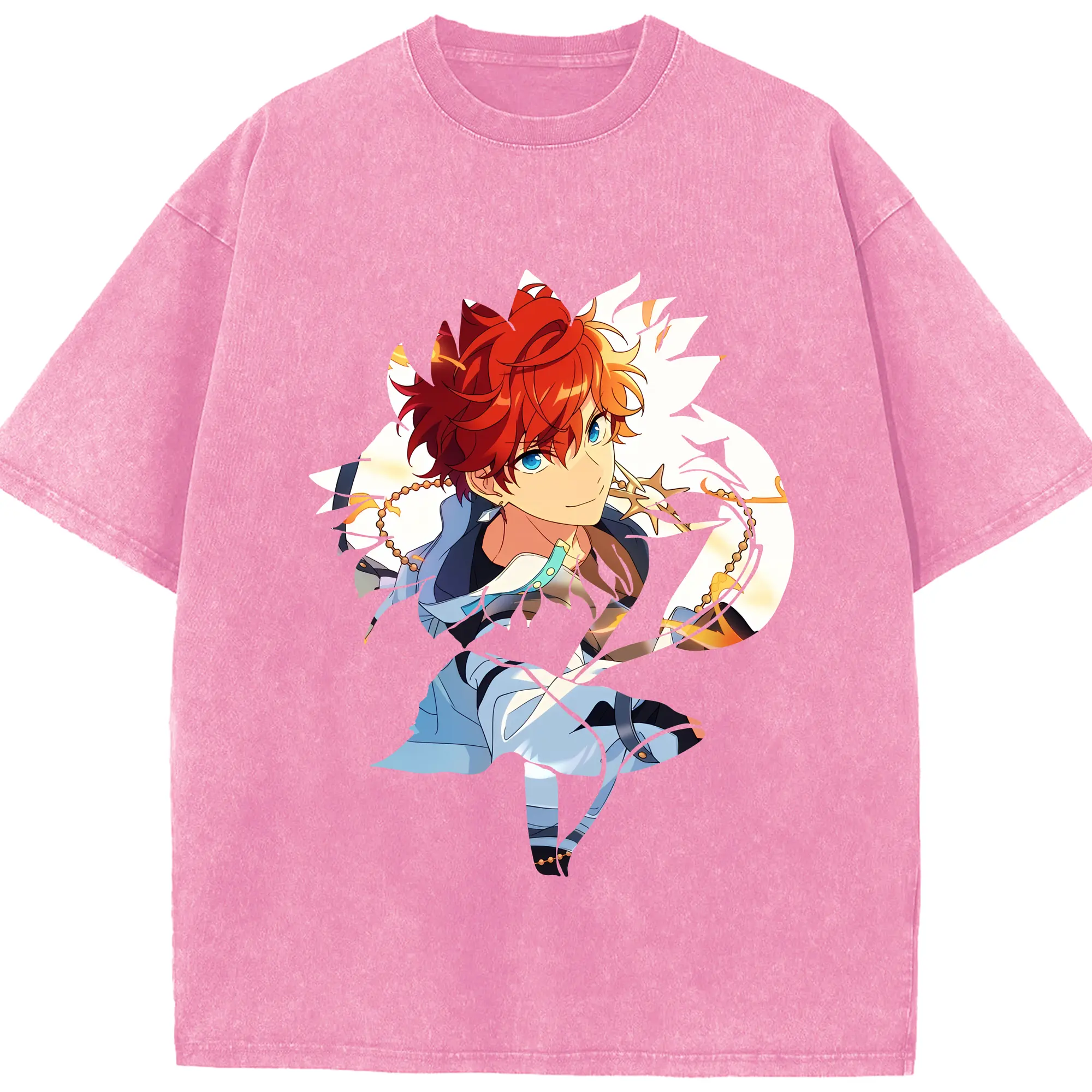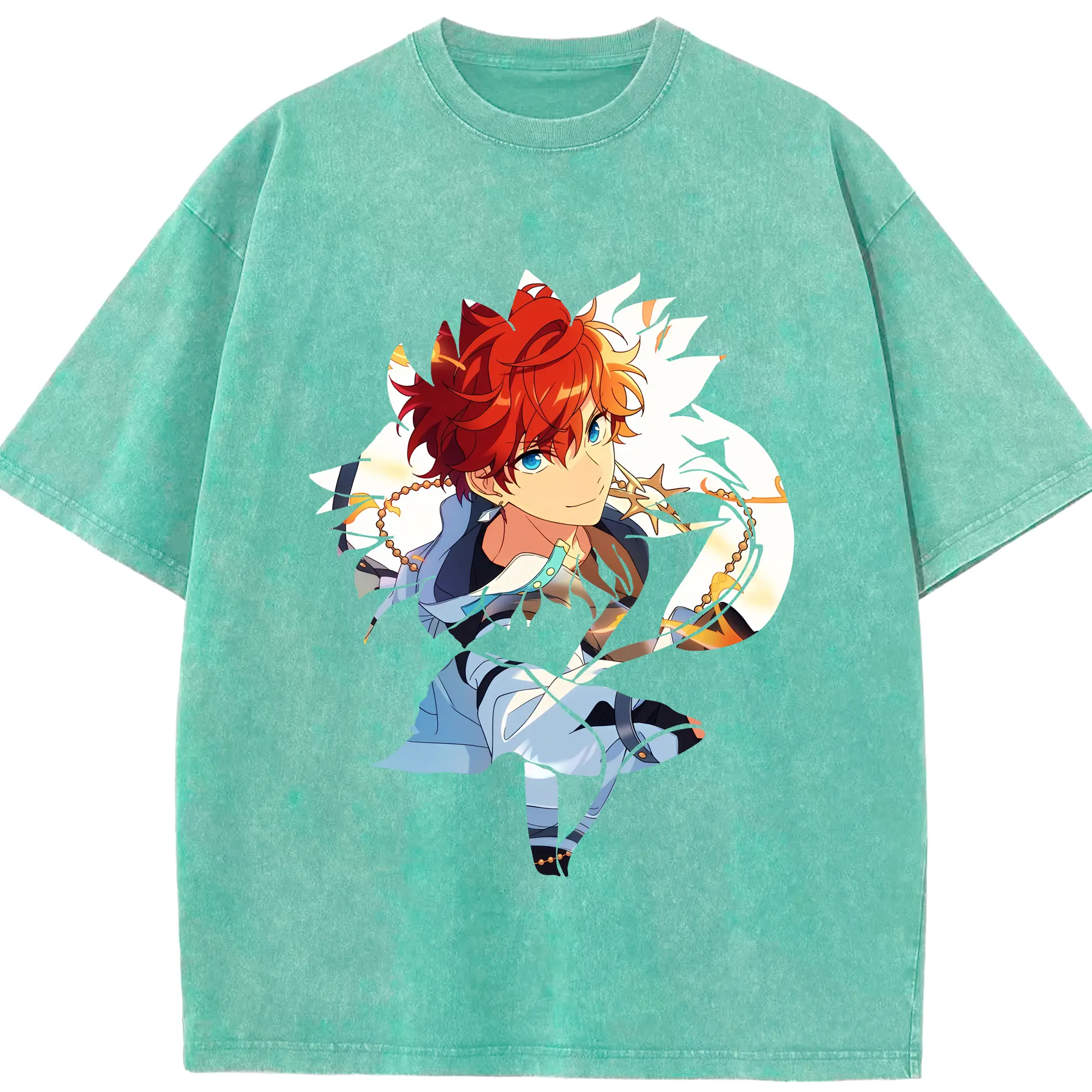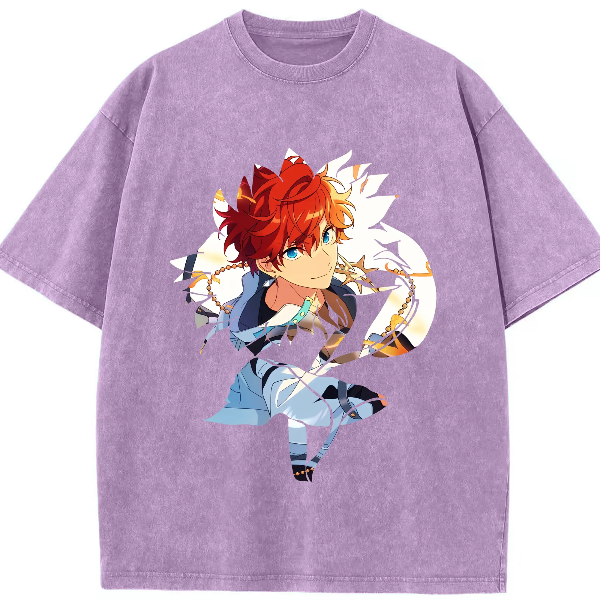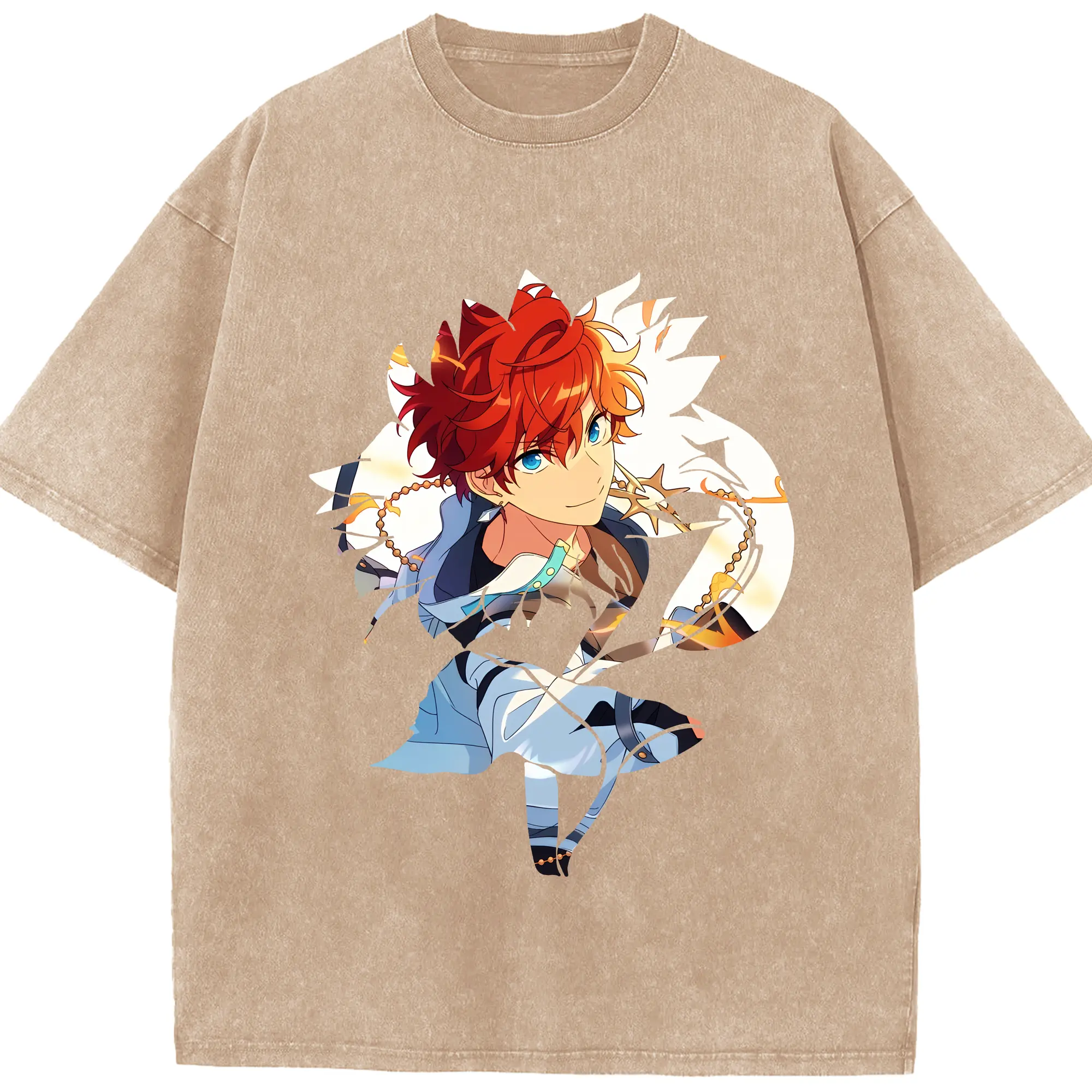 原 神 グッズ ディルック - 綿100% ヴィンテージ風 半袖Tシャツ ・ フロントプリント ・ 柔らか肌触り ・ 通気性 快適 ・ スポーツ カジュアル 外出用