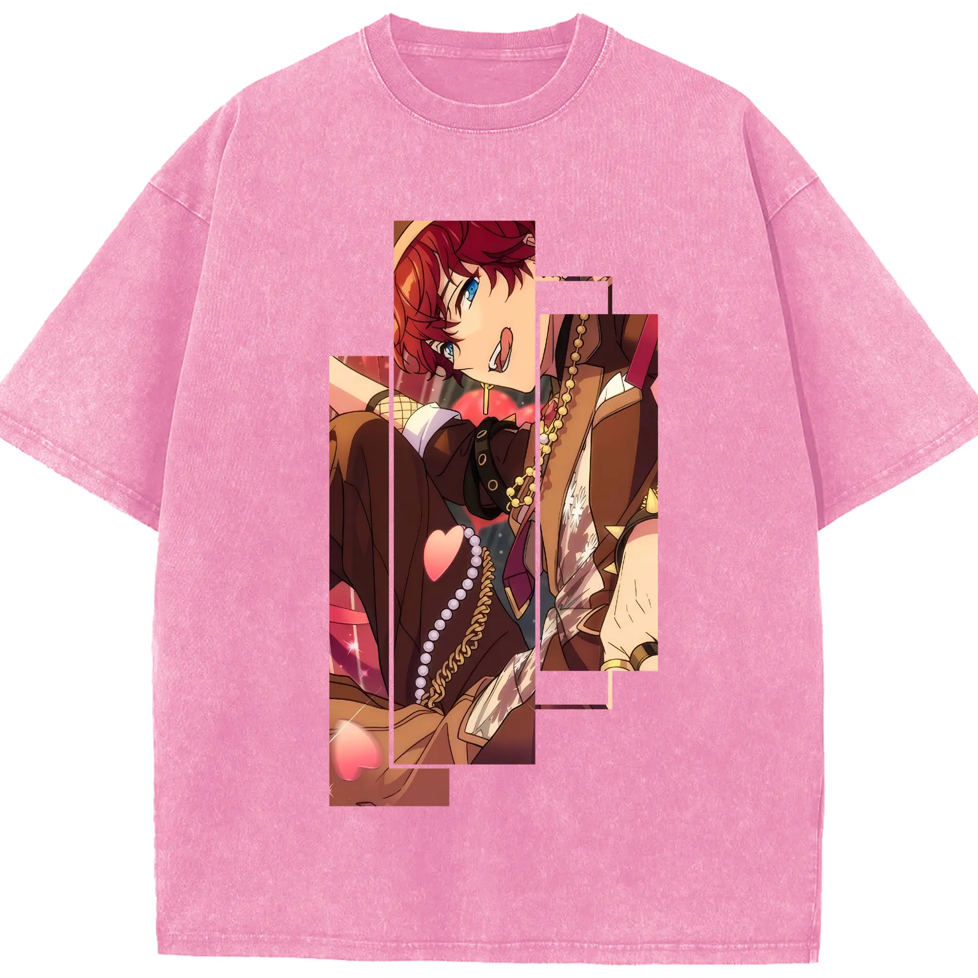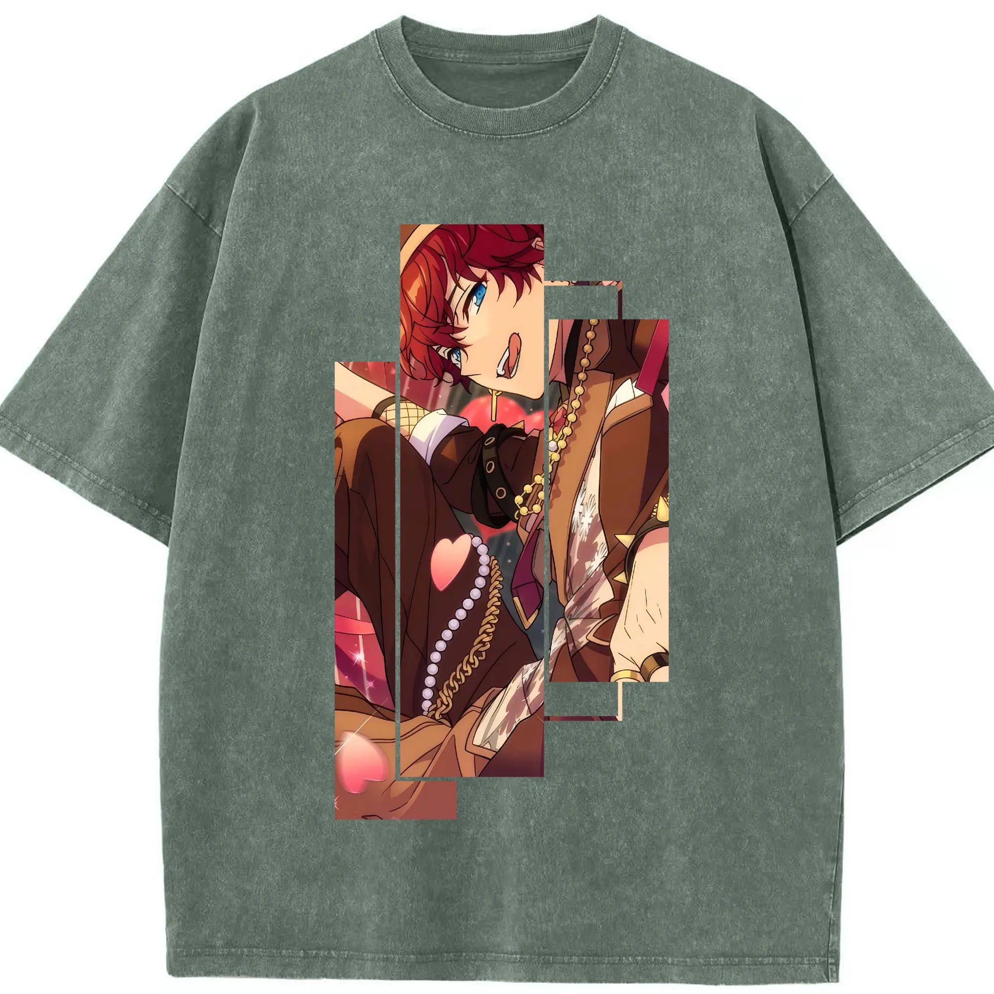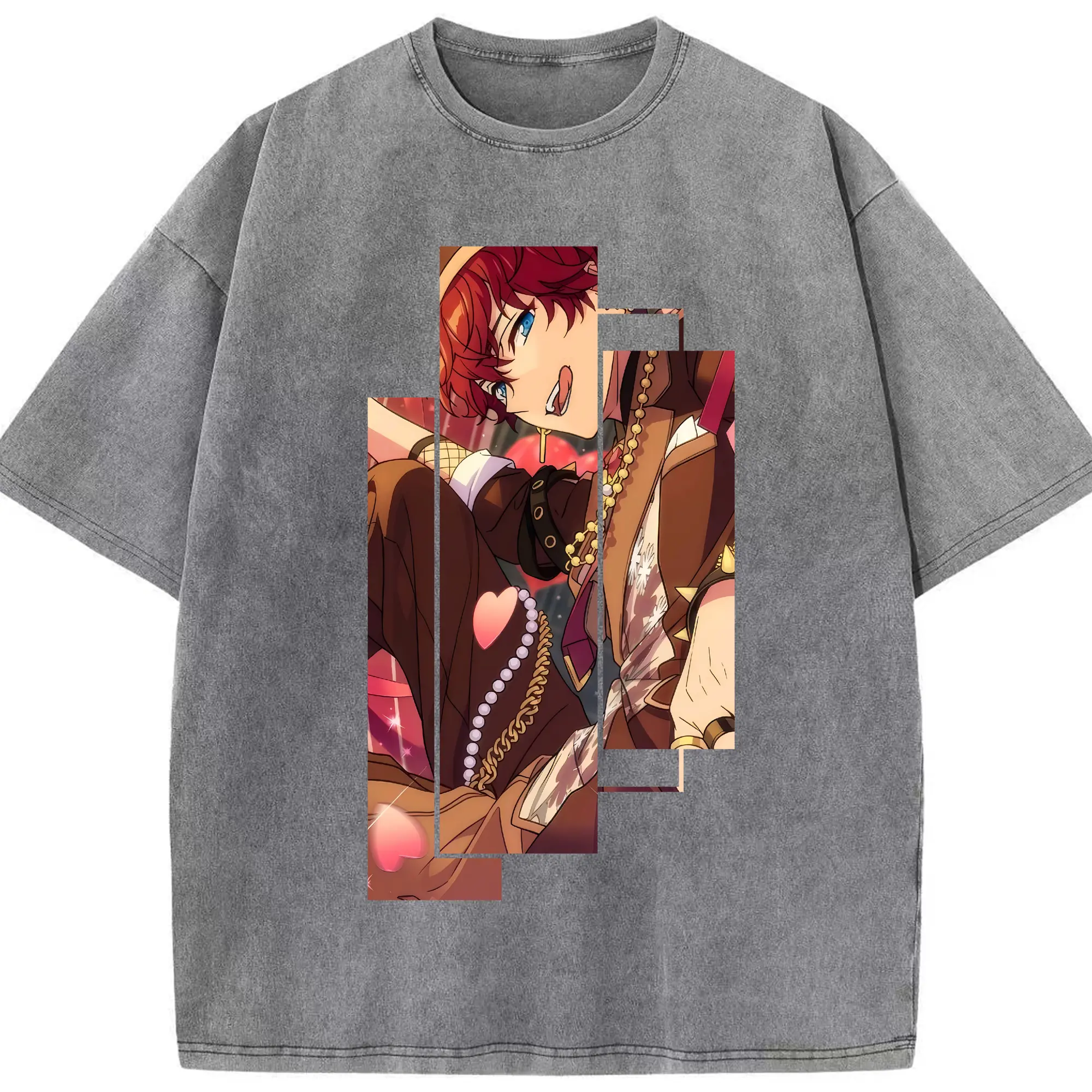 あんさん ぶる グッズ UNDEAD 羽風薫 - 綿100% ヴィンテージ風 半袖Tシャツ ・ フロントプリント ・ 柔らか肌触り ・ 通気性 快適 ・ スポーツ カジュアル 外出用