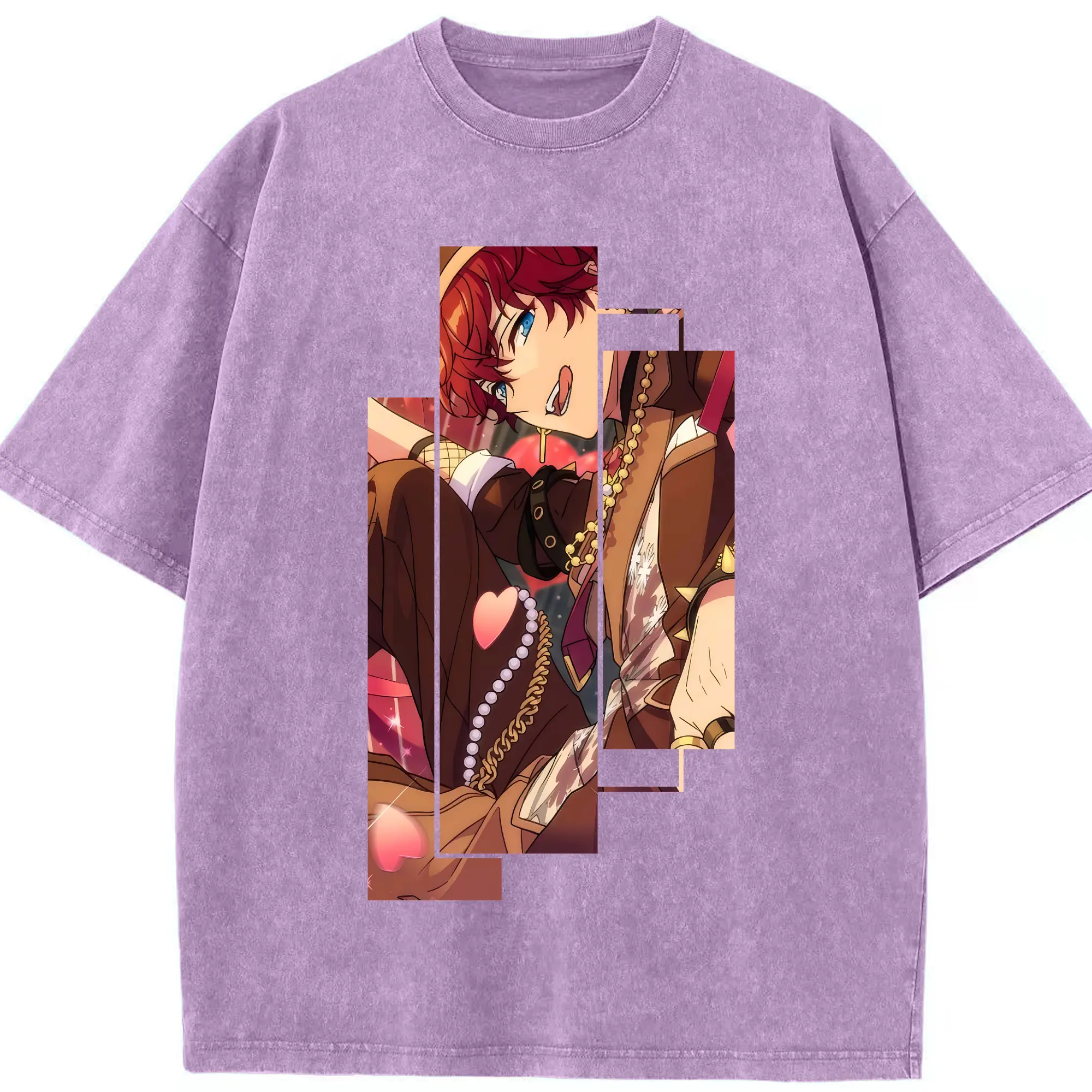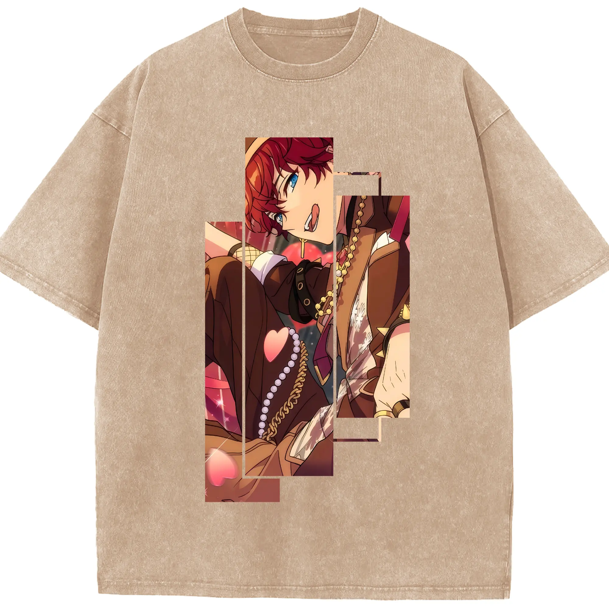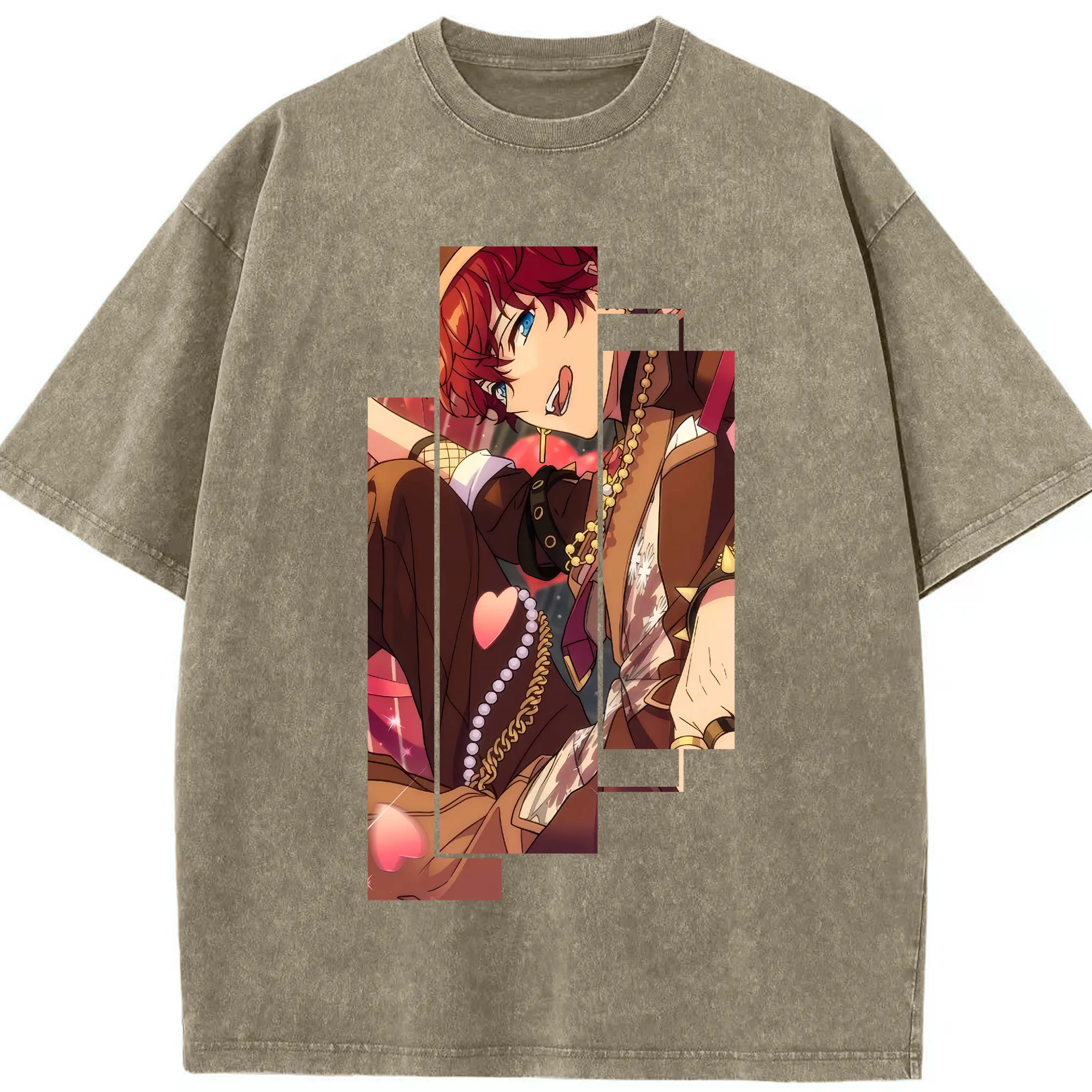 あんさん ぶる グッズ UNDEAD 羽風薫 - 綿100% ヴィンテージ風 半袖Tシャツ ・ フロントプリント ・ 柔らか肌触り ・ 通気性 快適 ・ スポーツ カジュアル 外出用