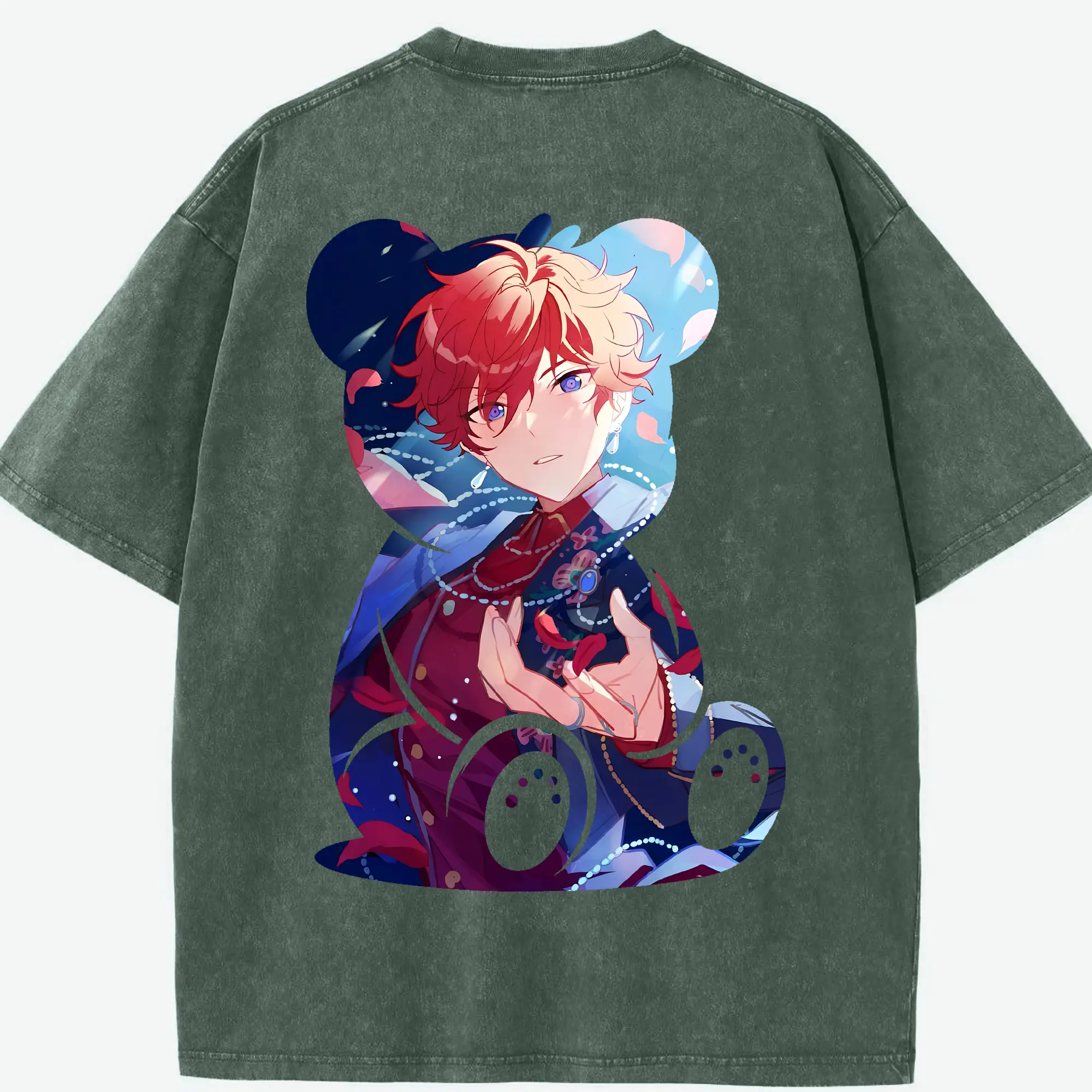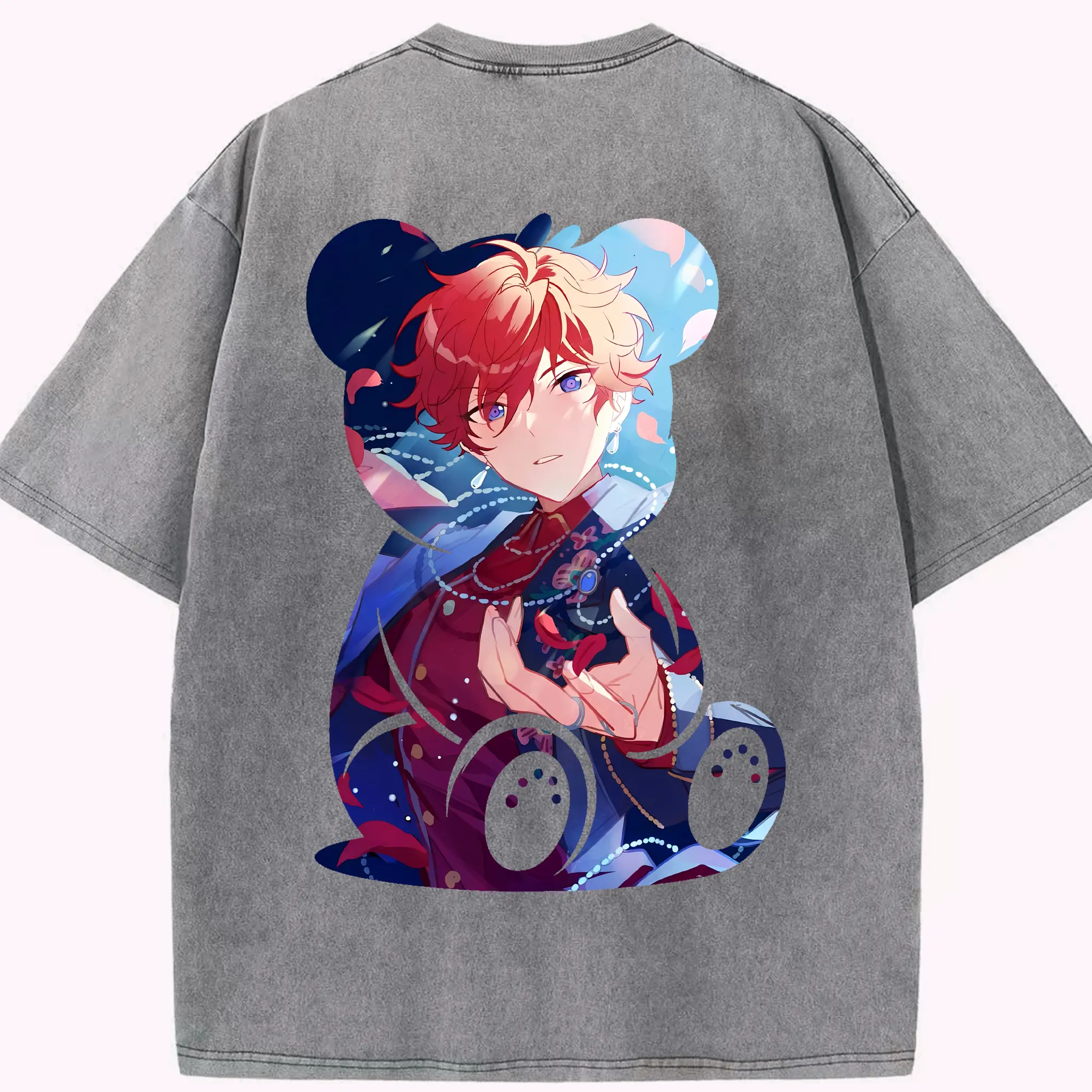 あんさん ぶる グッズ ALKALOID 天城一彩 - 綿100% ヴィンテージ風 半袖Tシャツ ・ フロントプリント ・ 柔らか肌触り ・ 通気性 快適 ・ スポーツ カジュアル 外出用
