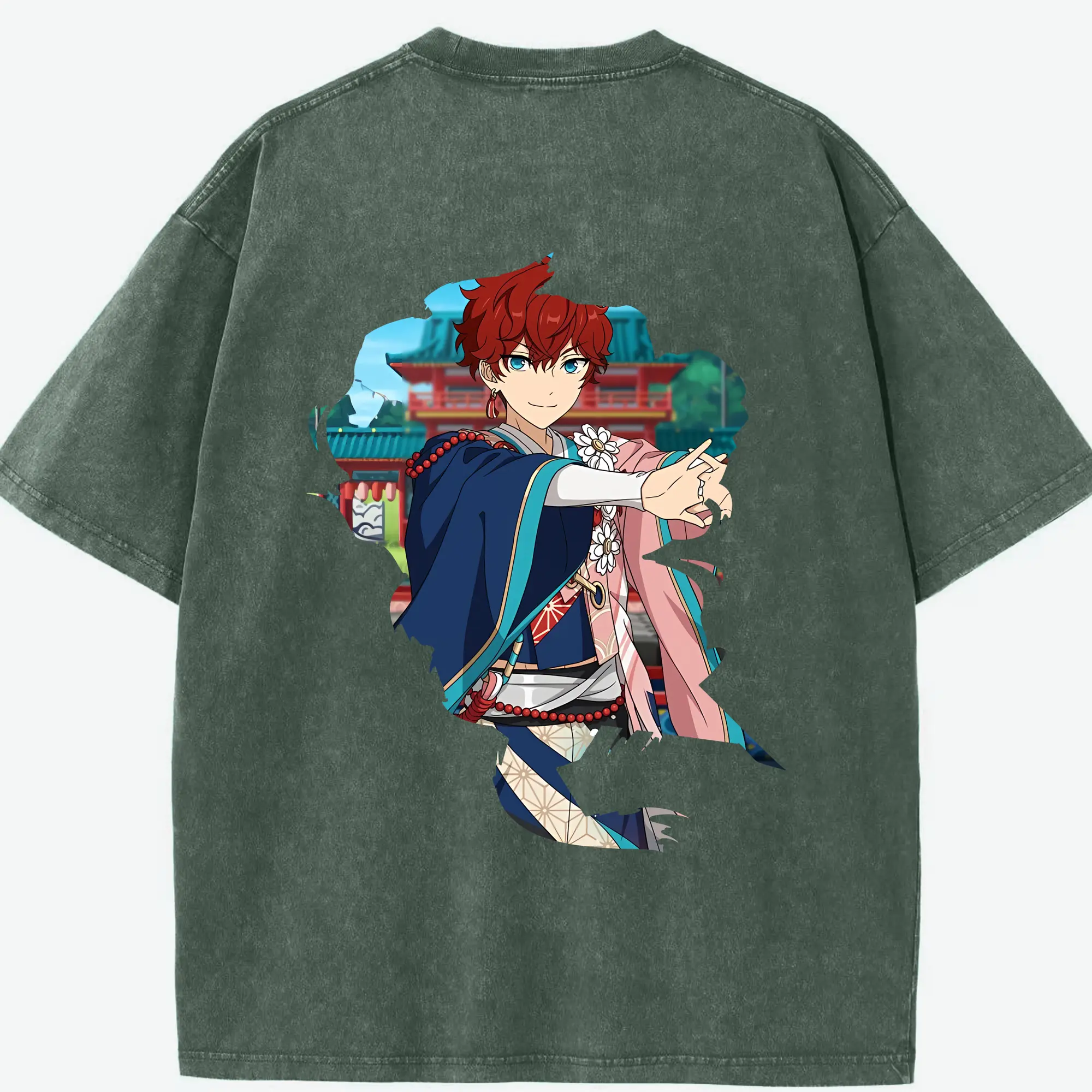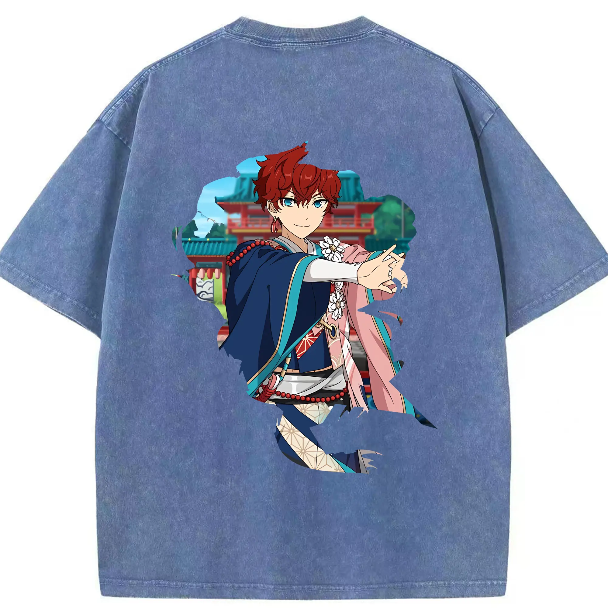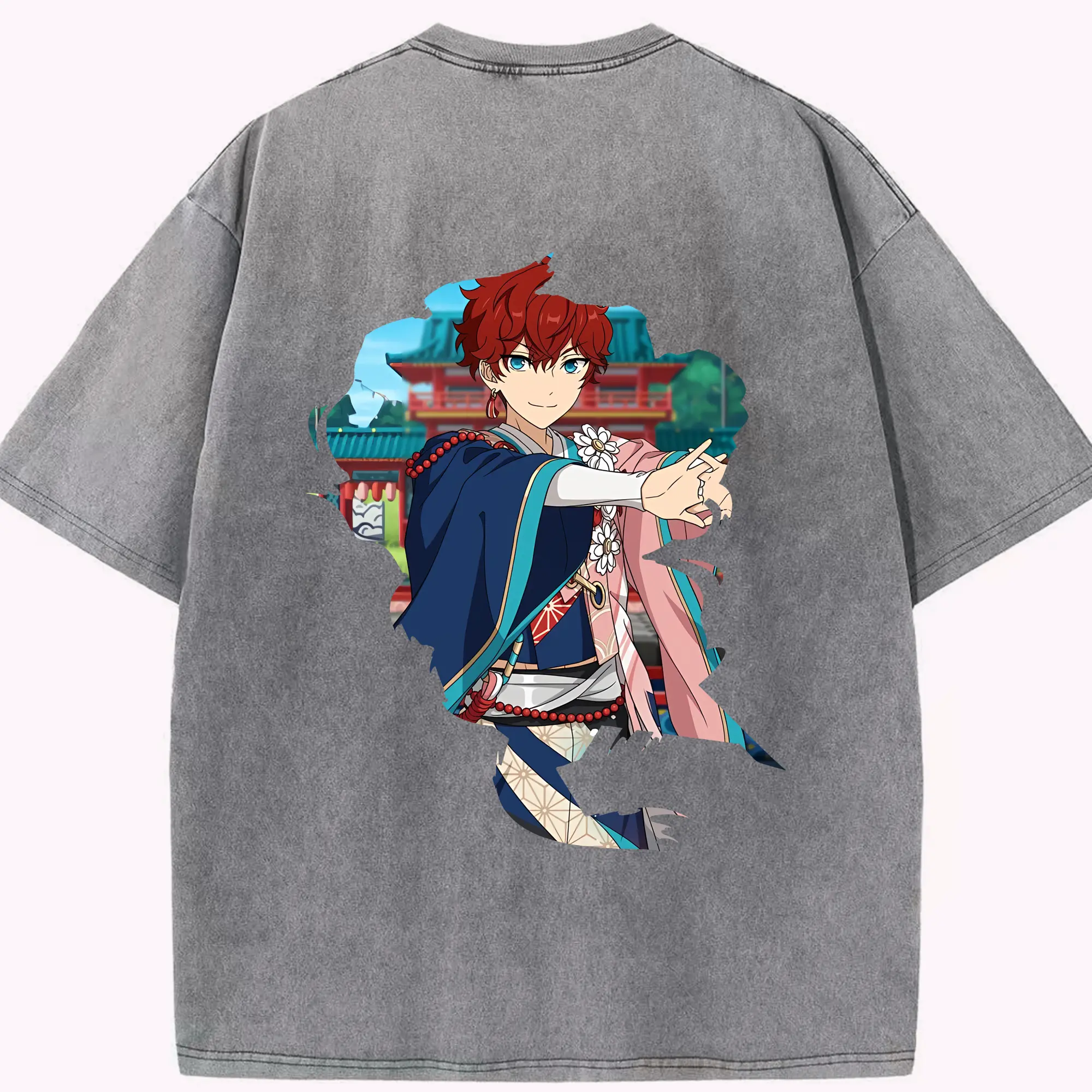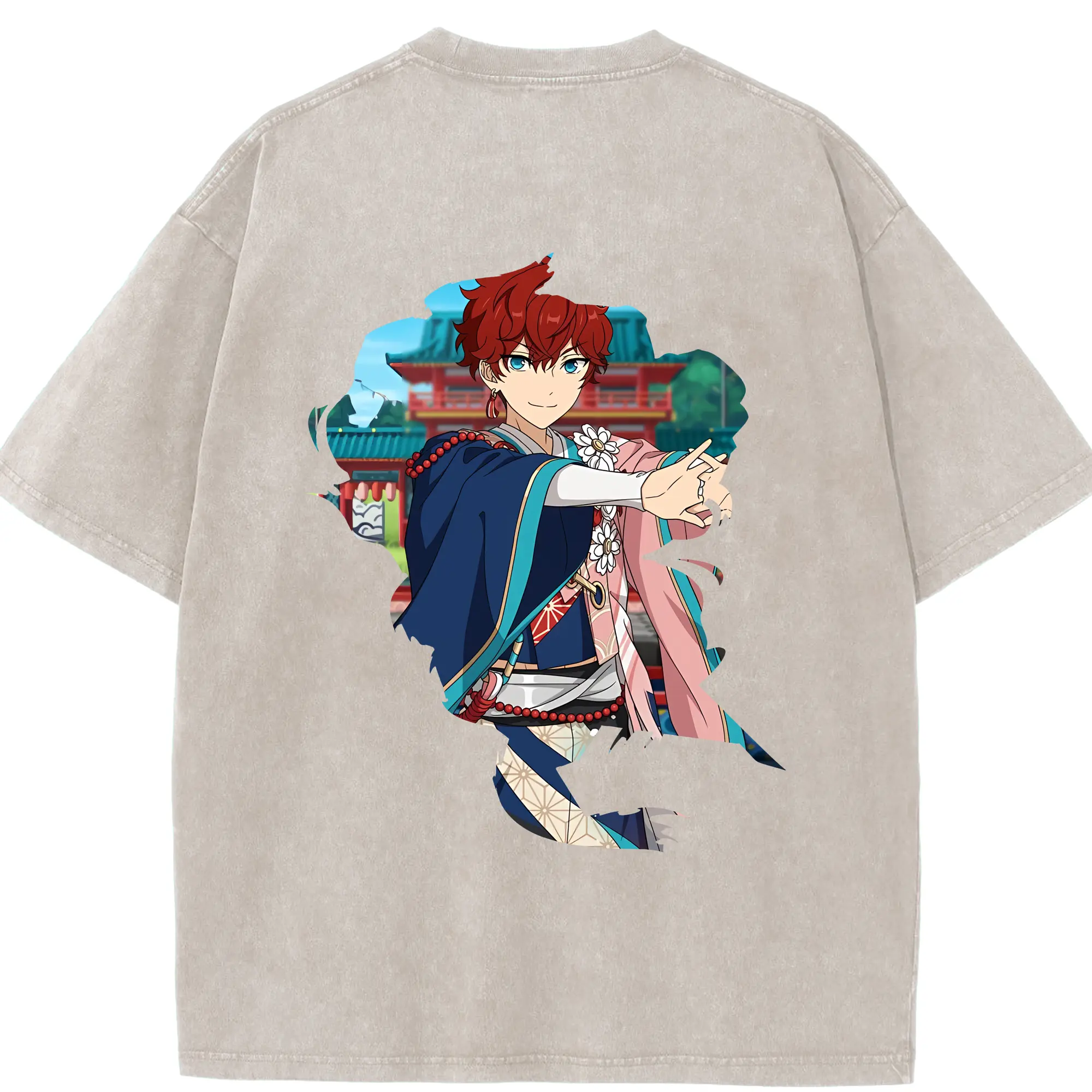 あんさん ぶる グッズ Valkyrie 斎宮宗 - 綿100% ヴィンテージ風 半袖Tシャツ ・ 背面プリント ・ 柔らか肌触り ・ 通気性 快適 ・ スポーツ カジュアル 外出用