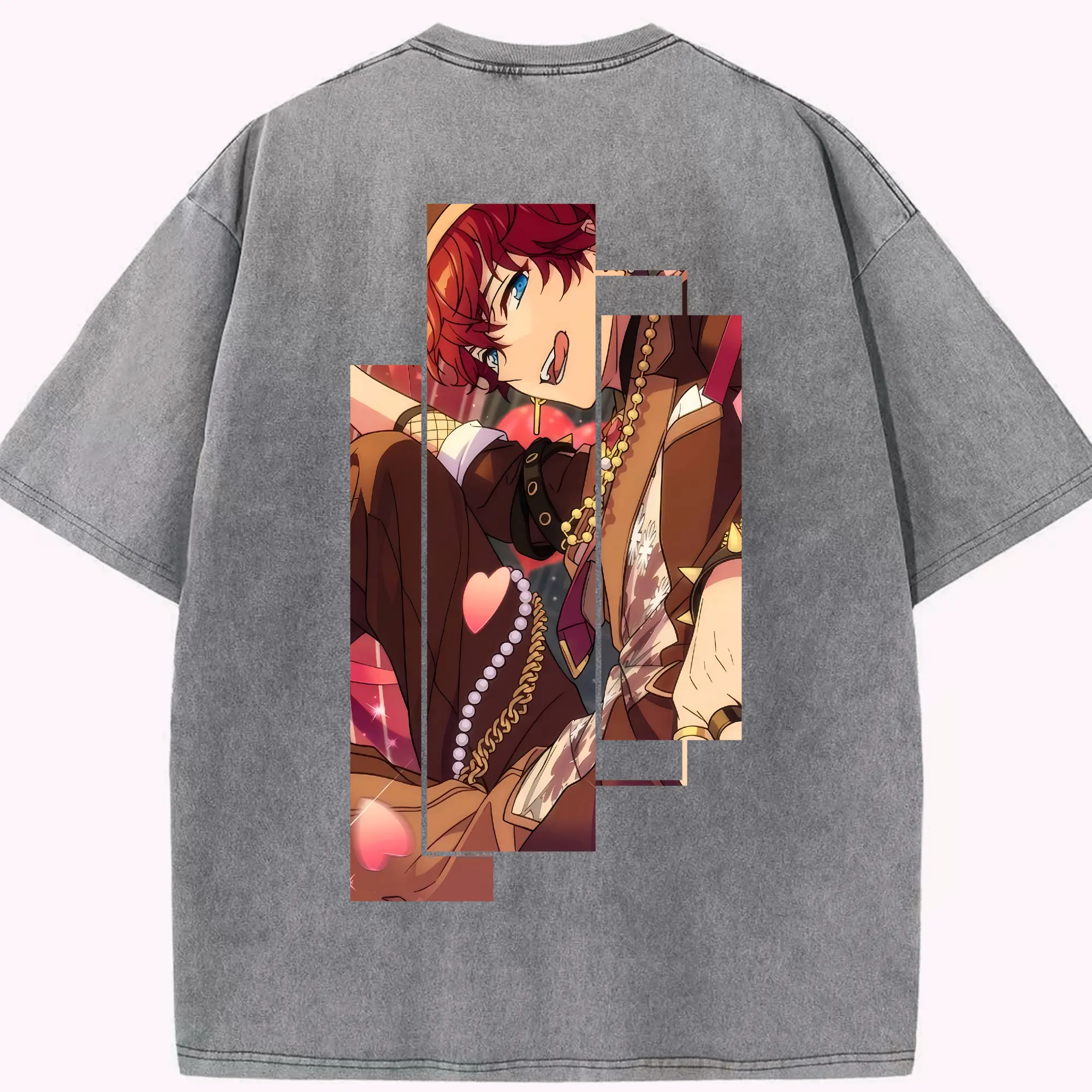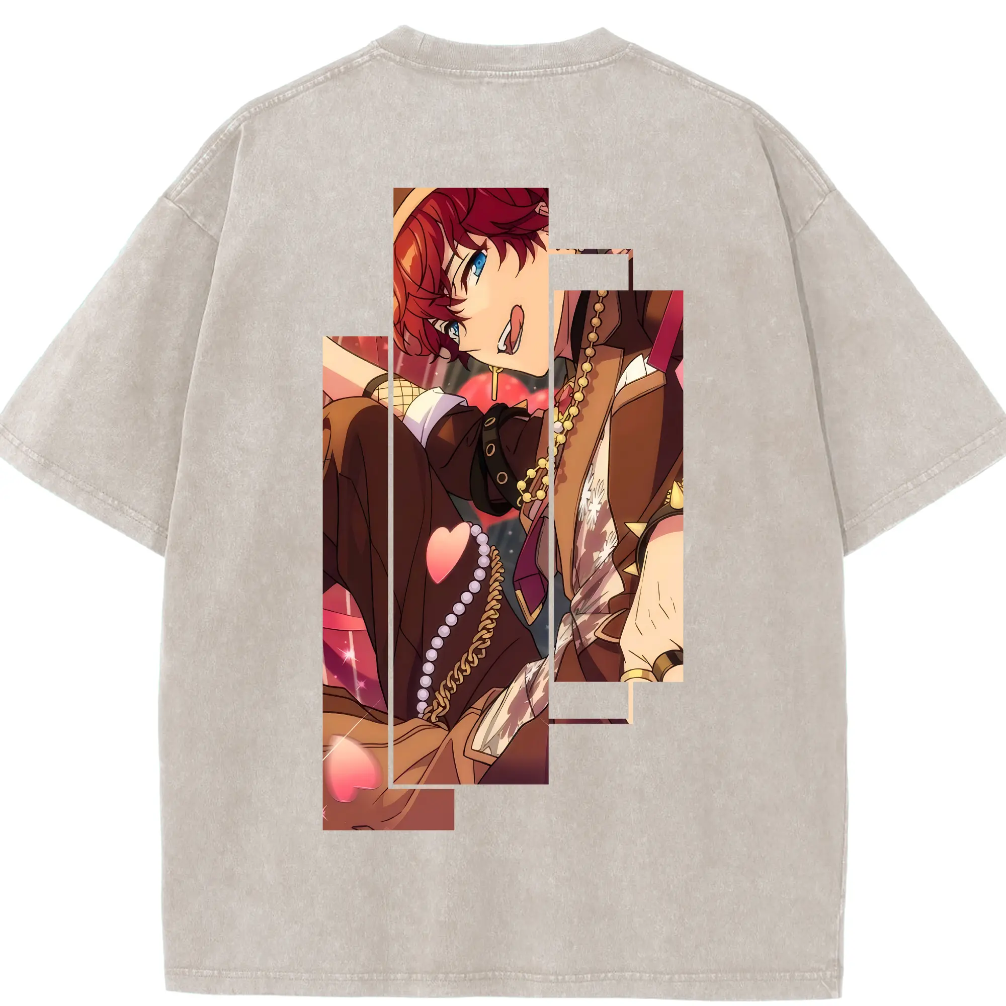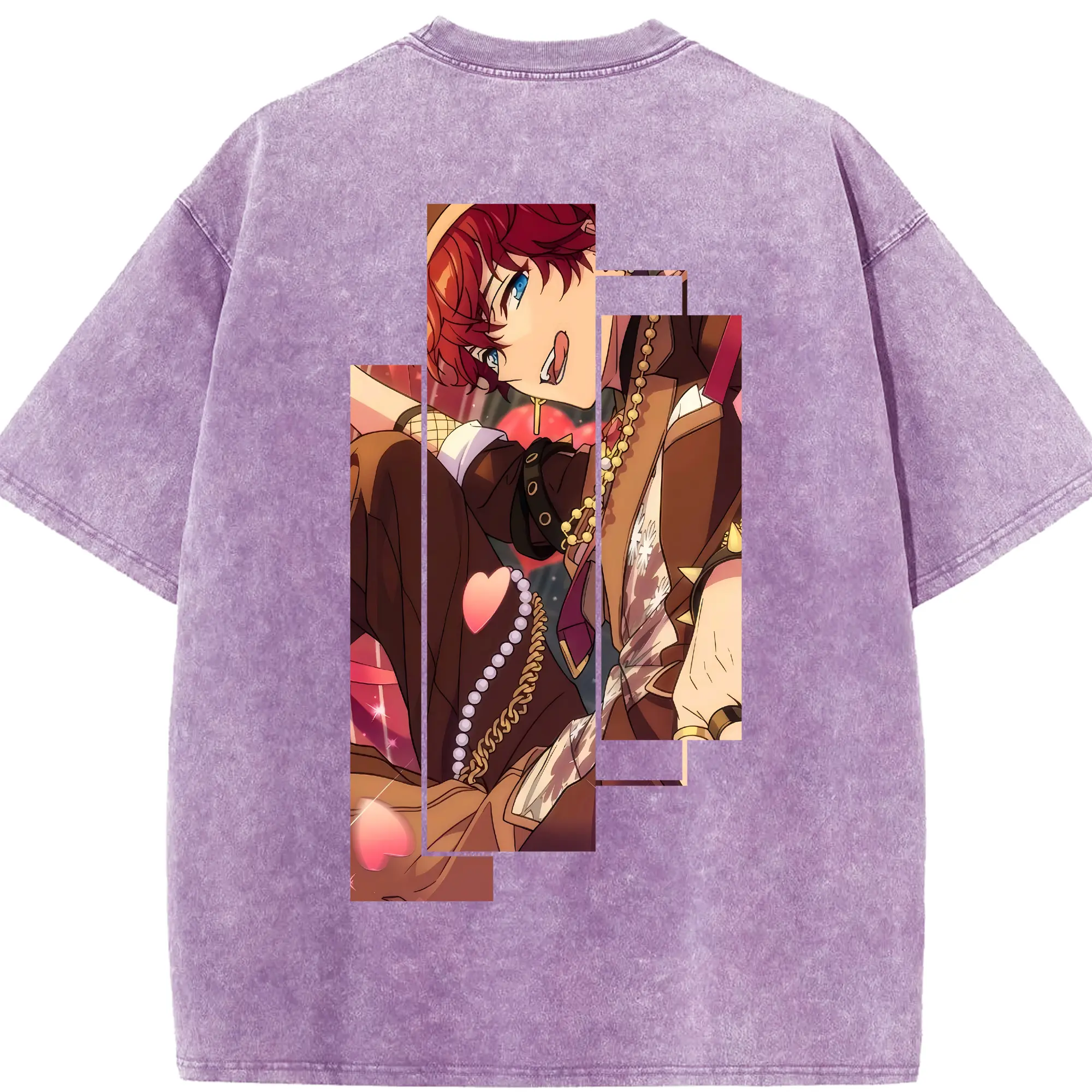 あんさん ぶる グッズ ALKALOID 天城一彩 - 綿100% ヴィンテージ風 半袖Tシャツ ・ フロントプリント ・ 柔らか肌触り ・ 通気性 快適 ・ スポーツ カジュアル 外出用