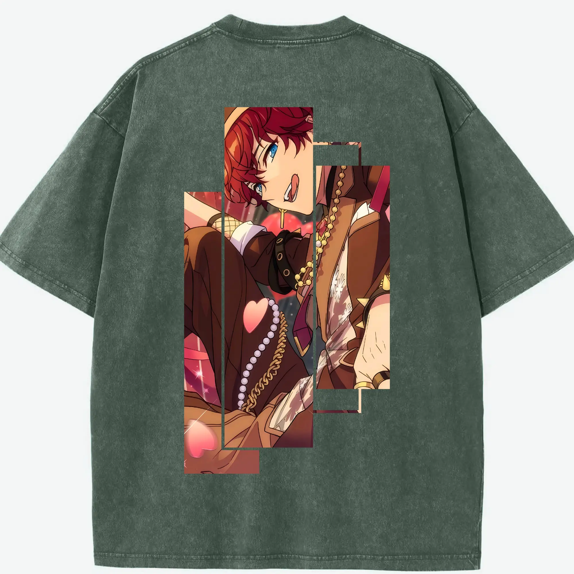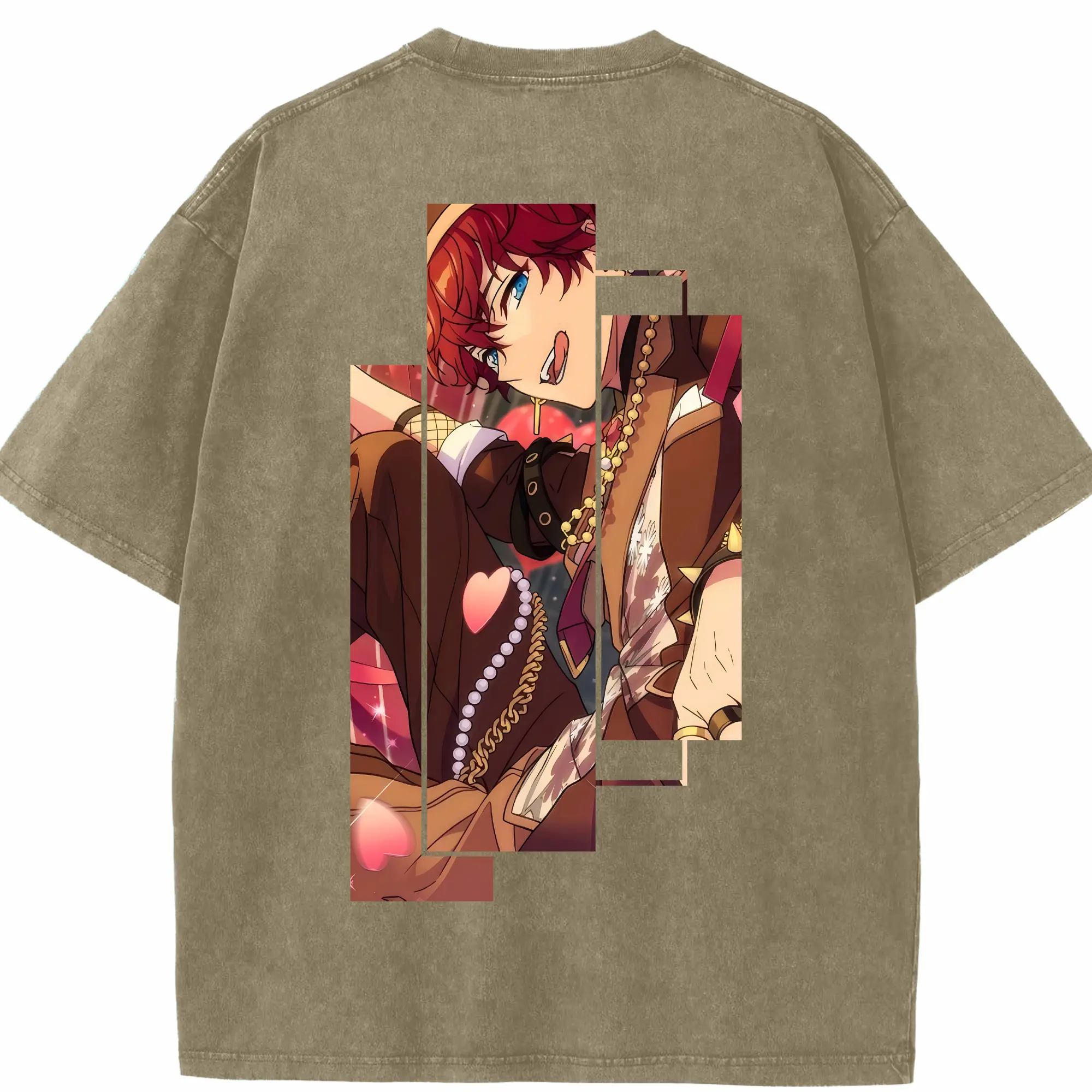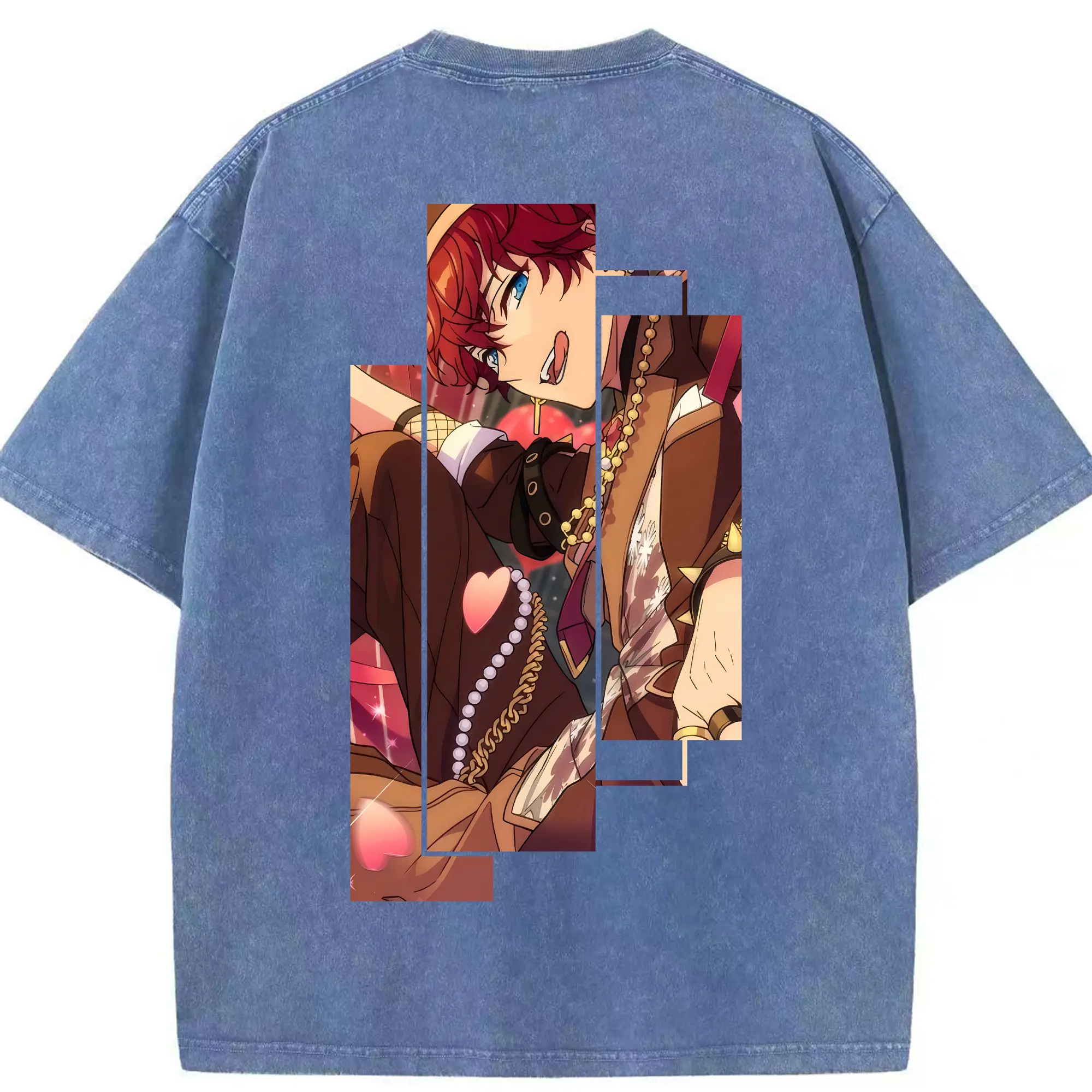 あんさん ぶる グッズ ALKALOID 天城一彩 - 綿100% ヴィンテージ風 半袖Tシャツ ・ フロントプリント ・ 柔らか肌触り ・ 通気性 快適 ・ スポーツ カジュアル 外出用