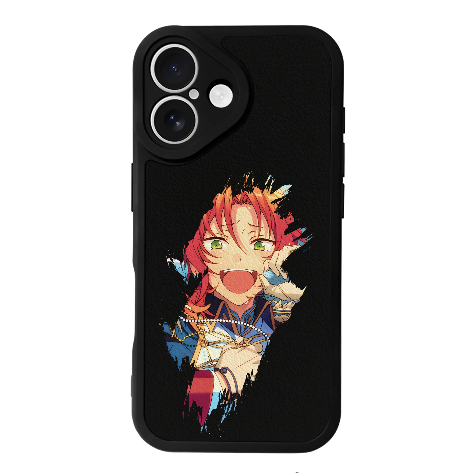 あんさん ぶる グッズ Knights 月永レオ - IPhone 16シリーズ対応 ・ シリコンスマホケース ・ レザー調 ・ 高精度フィット ・ 耐衝撃 ・ ワイヤレス充電対応 ・ 精密カット