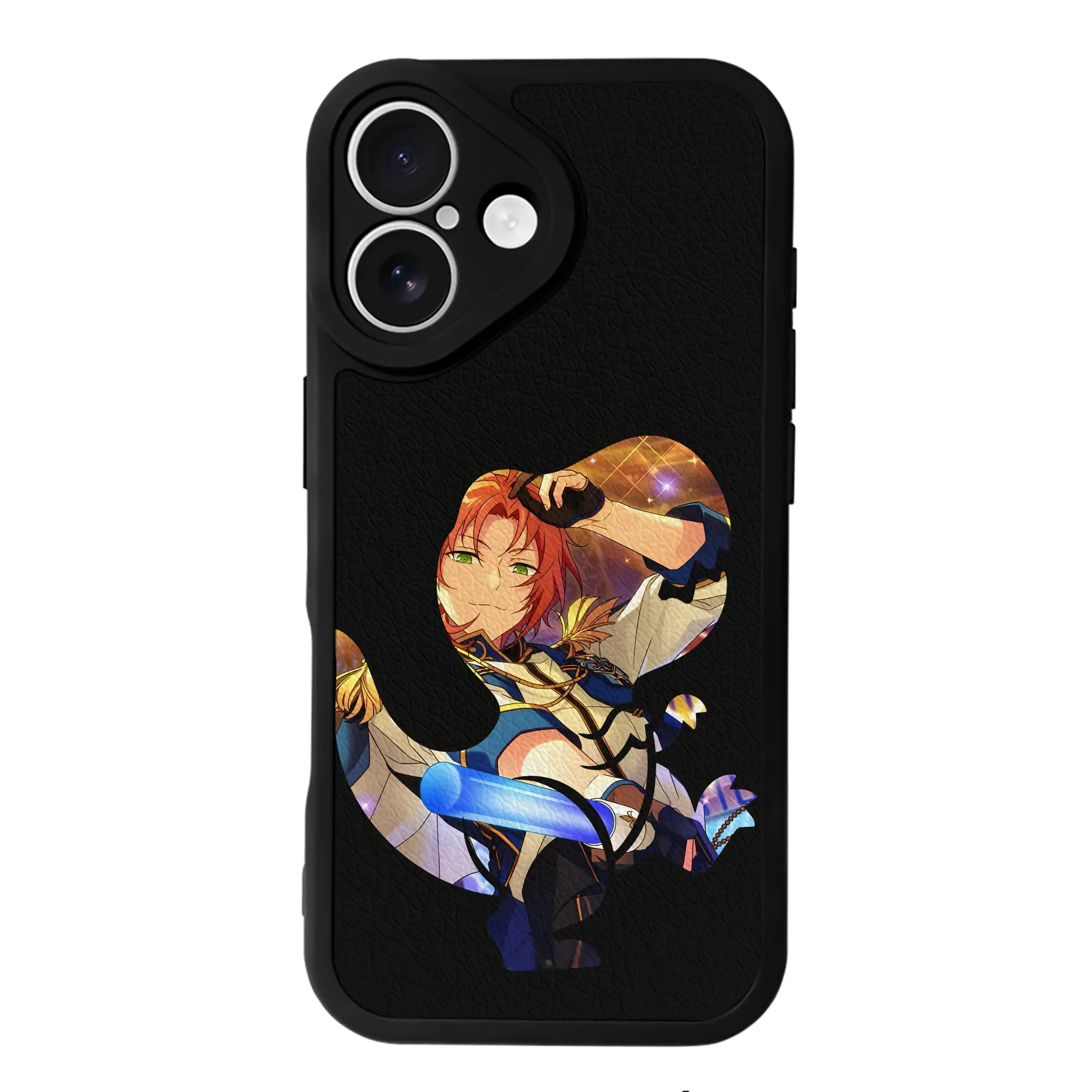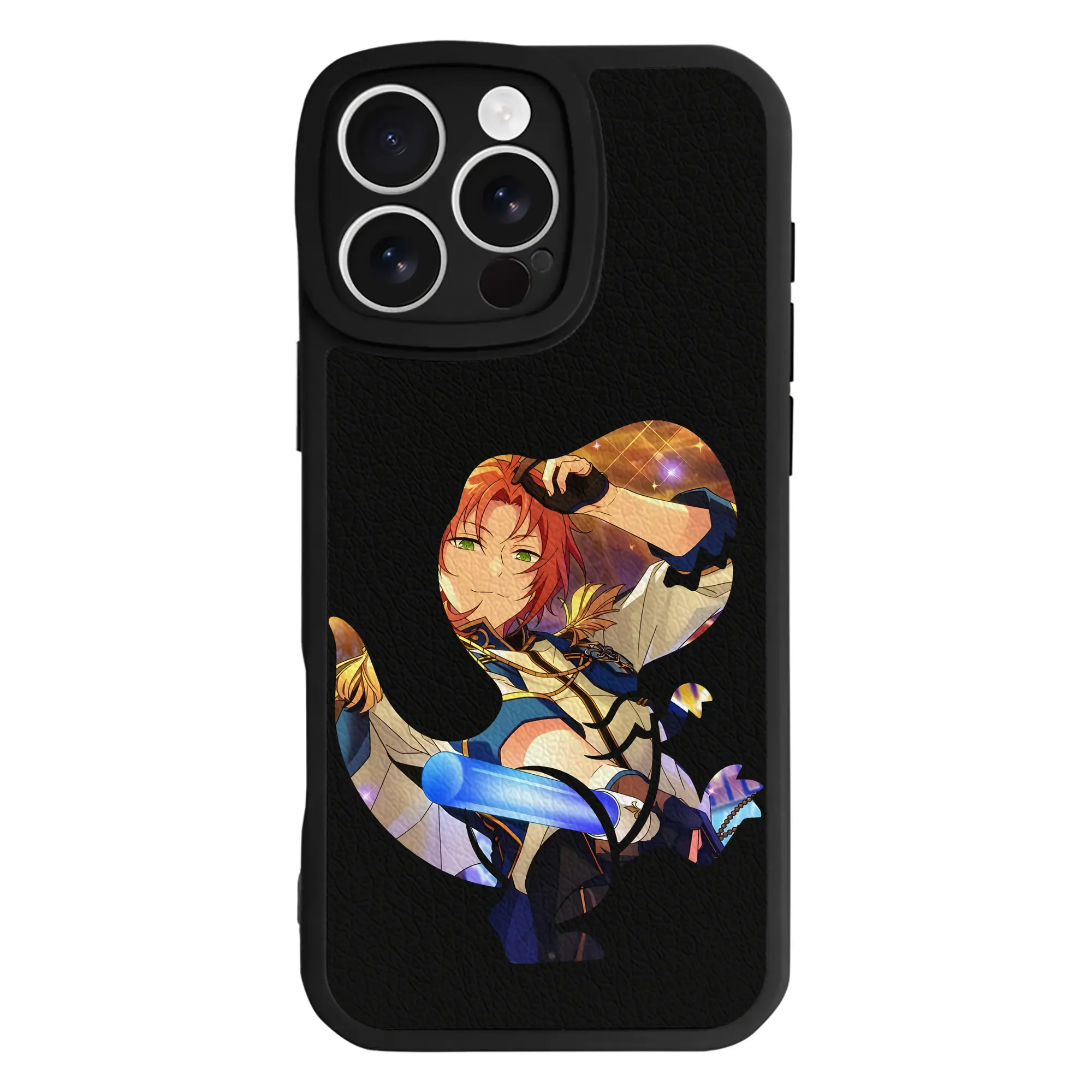 あんさん ぶる グッズ Knights 月永レオ - IPhone 16シリーズ対応 ・ シリコンスマホケース ・ レザー調 ・ 高精度フィット ・ 耐衝撃 ・ ワイヤレス充電対応 ・ 精密カット