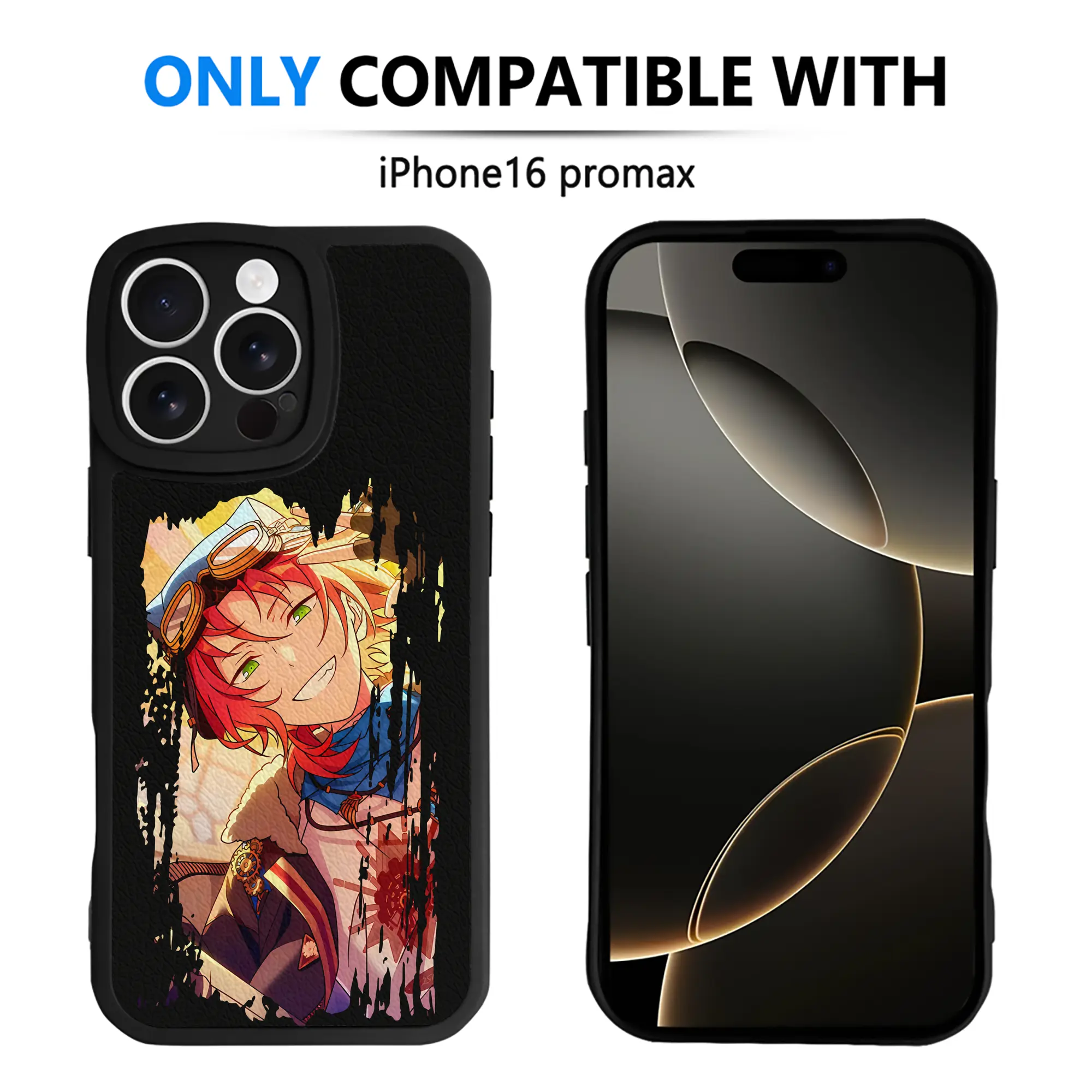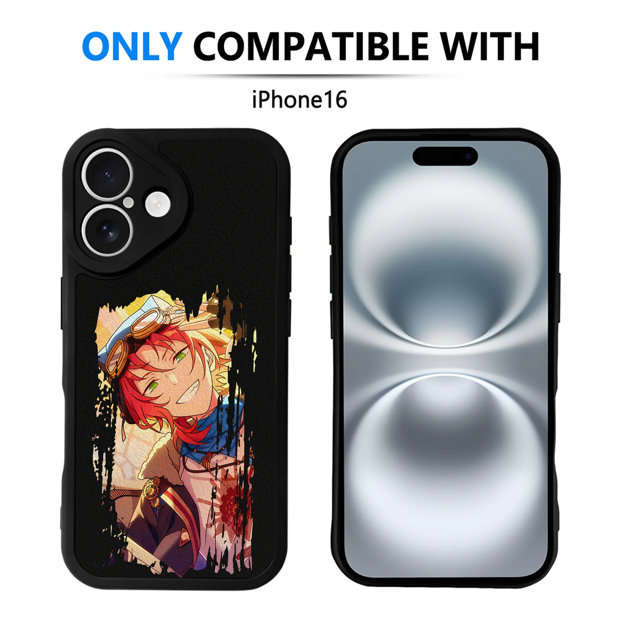 あんさん ぶる グッズ Knights 月永レオ - IPhone 16シリーズ対応 ・ シリコンスマホケース ・ レザー調 ・ 高精度フィット ・ 耐衝撃 ・ ワイヤレス充電対応 ・ 精密カット