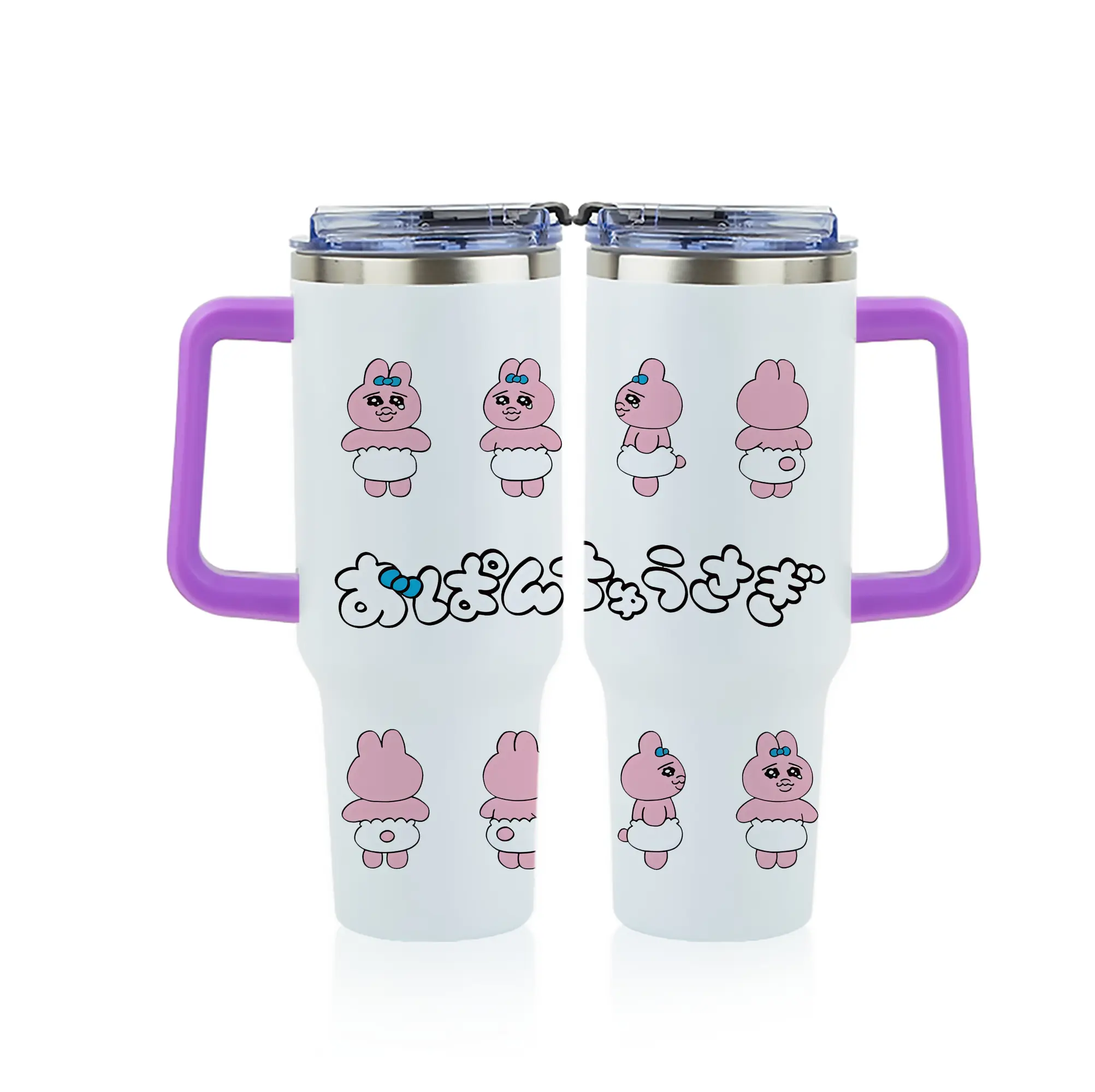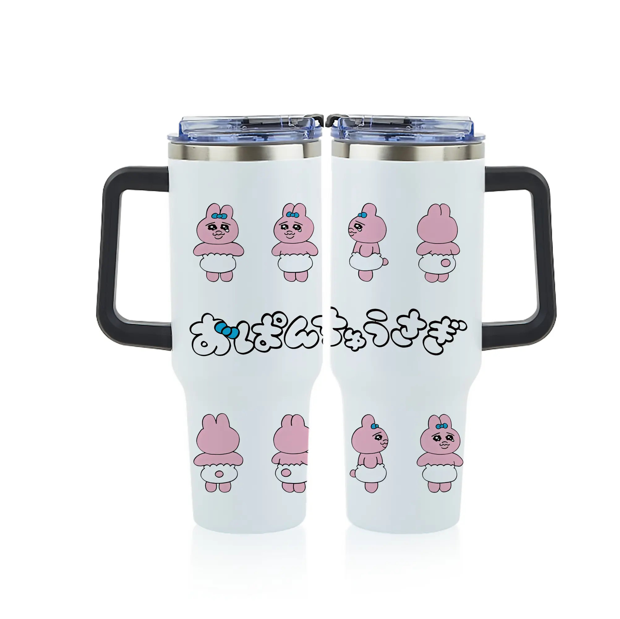 おぱんちゅうさぎ グッズ おぱんちゅうさぎ - 1200mL フルプリント車用タンブラー ・ 304ステンレス 内側 ・ 201ステンレス 外側 ・ 保温 保冷 ・ 通勤 ドライブ アウトドア用