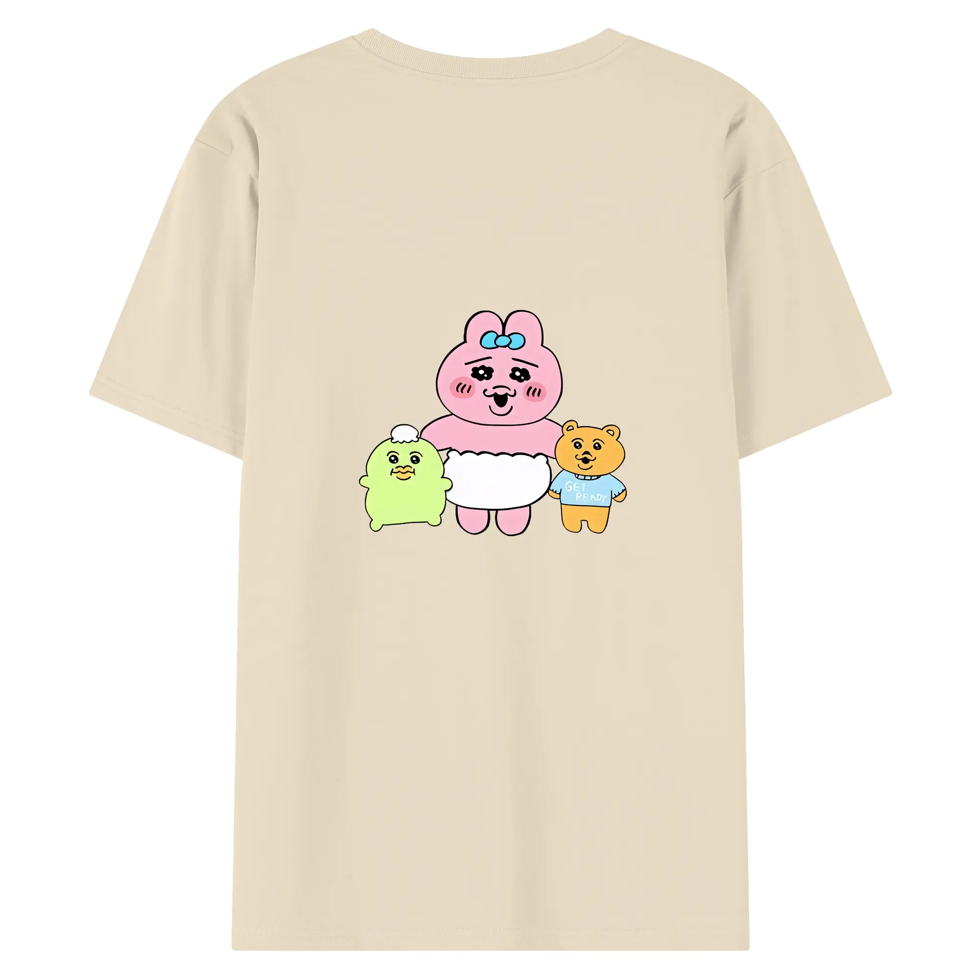 おぱんちゅうさぎ グッズ おぱんちゅうさぎ - 綿100% ヴィンテージ風 半袖Tシャツ ・ 背面プリント ・ 柔らか肌触り ・ 通気性 快適 ・ スポーツ カジュアル 外出用