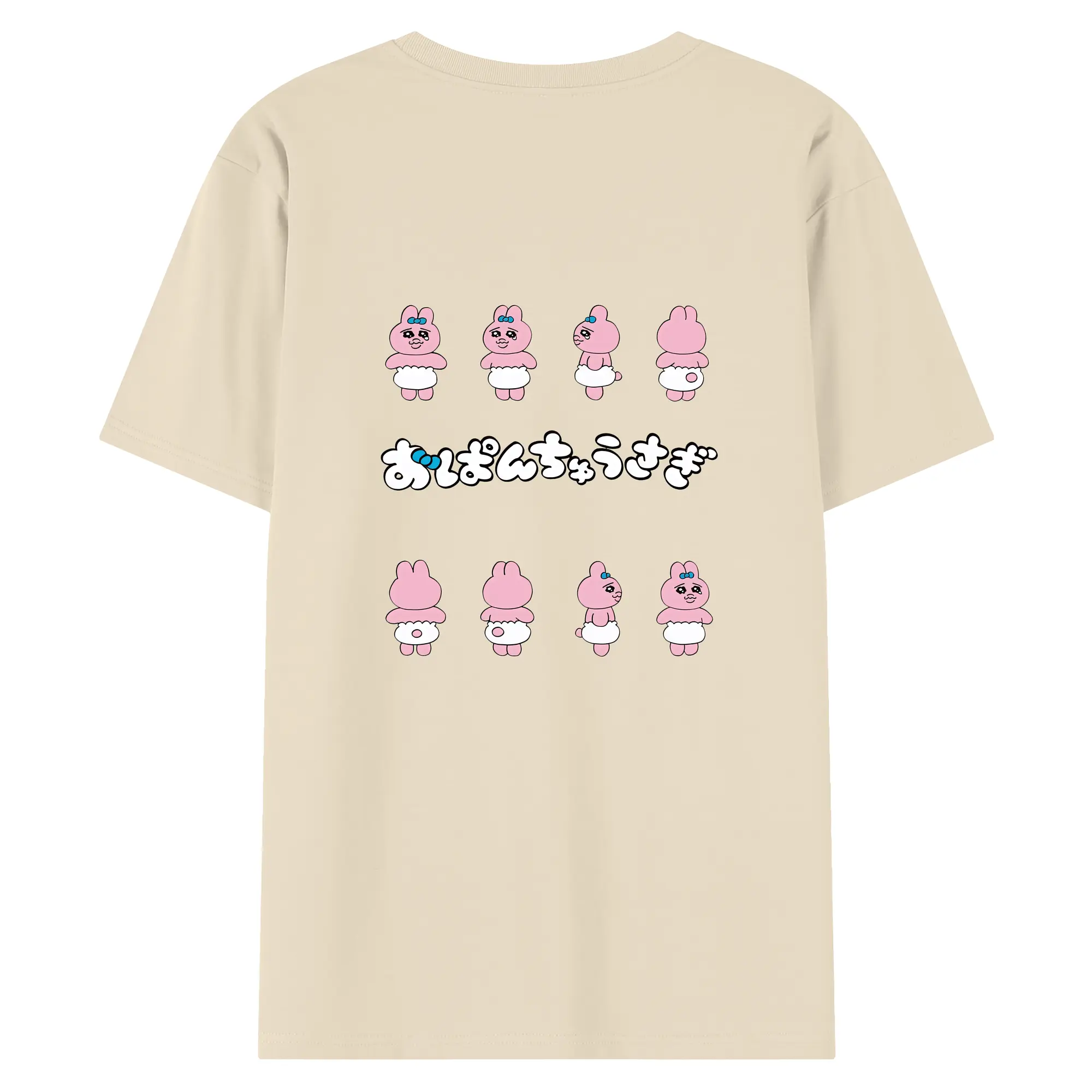 おぱんちゅうさぎ グッズ おぱんちゅうさぎ - 綿100% ヴィンテージ風 半袖Tシャツ ・ 背面プリント ・ 柔らか肌触り ・ 通気性 快適 ・ スポーツ カジュアル 外出用