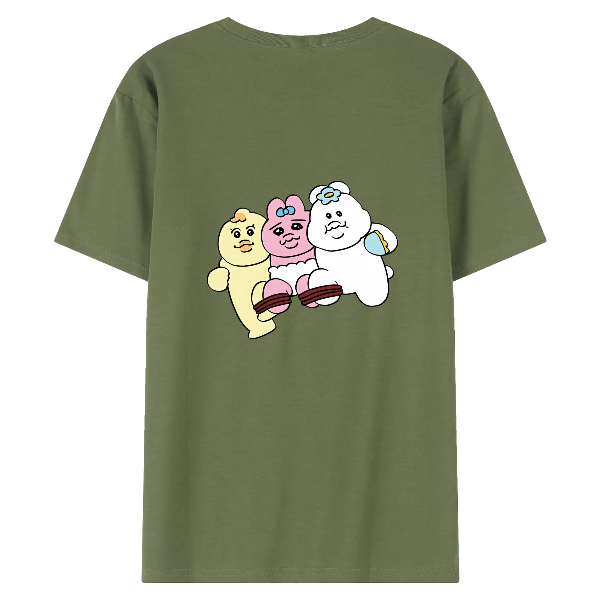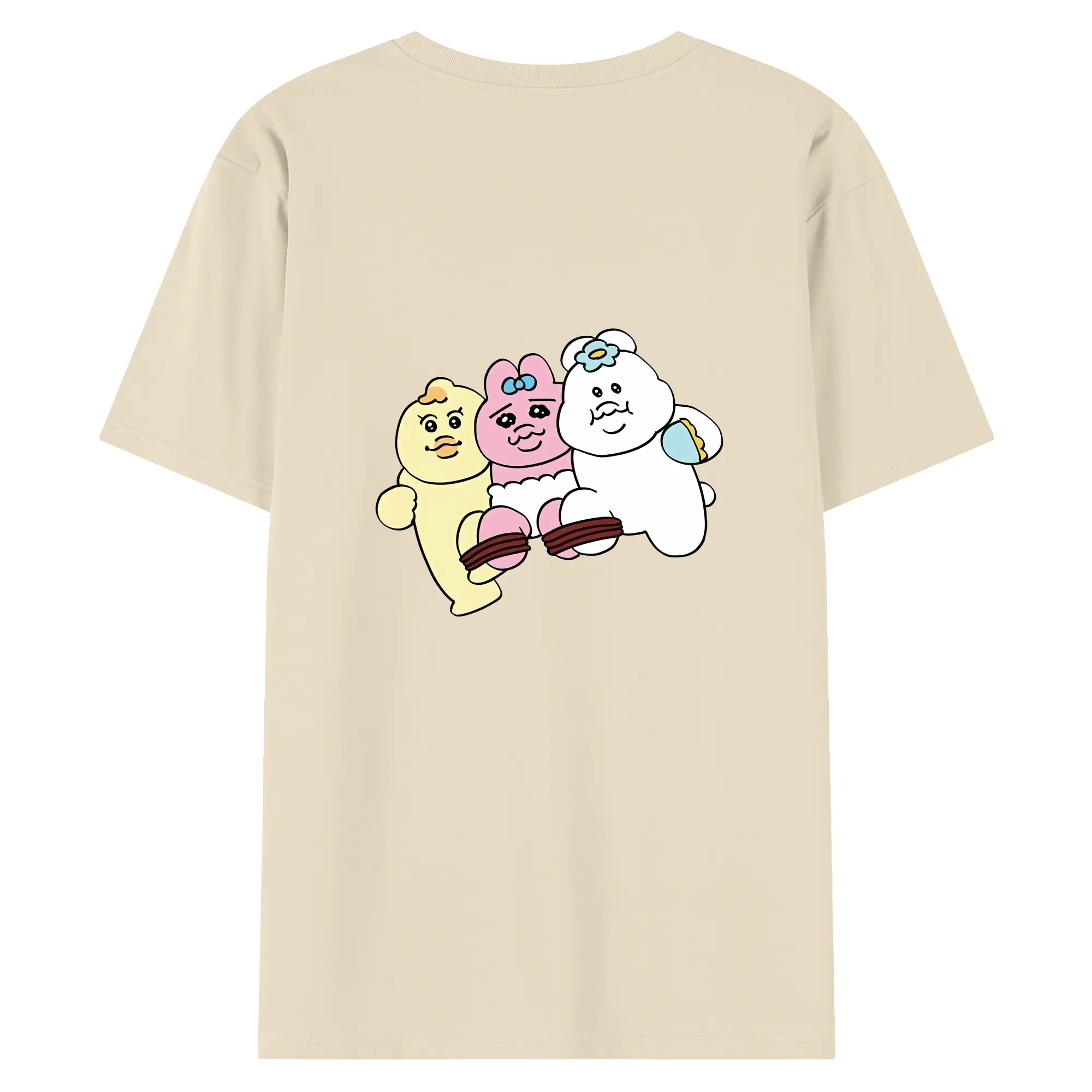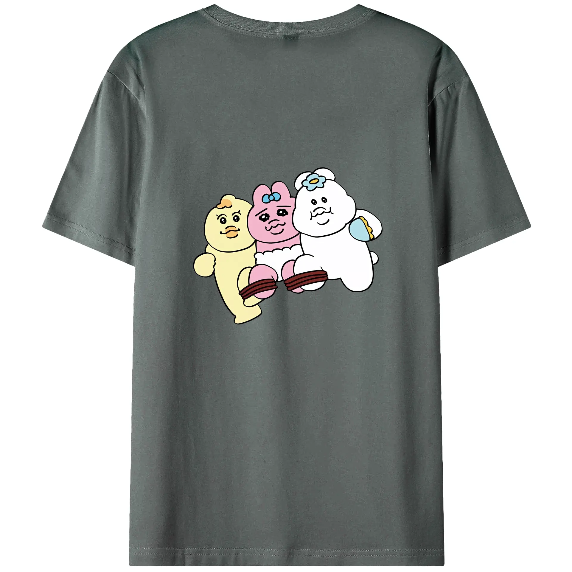 おぱんちゅうさぎ グッズ おぱんちゅうさぎ - 綿100% ヴィンテージ風 半袖Tシャツ ・ 背面プリント ・ 柔らか肌触り ・ 通気性 快適 ・ スポーツ カジュアル 外出用