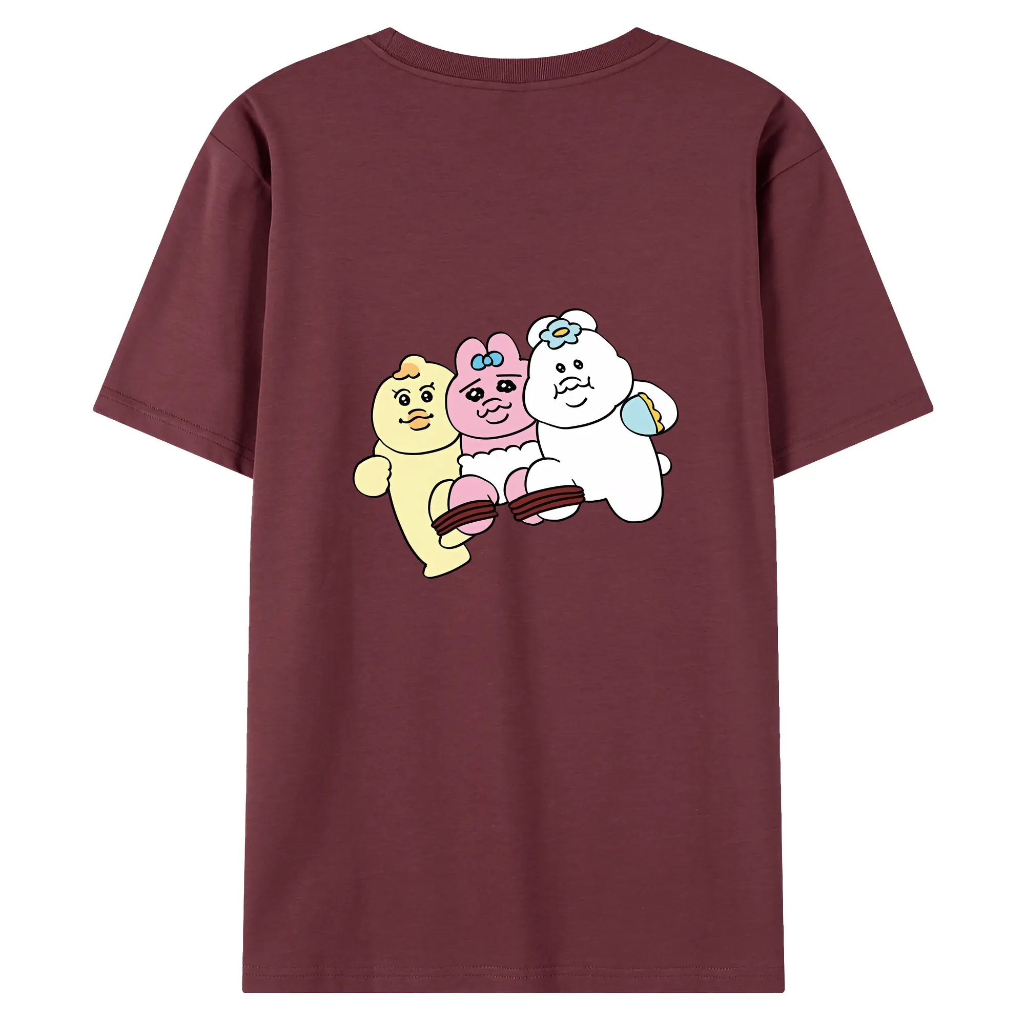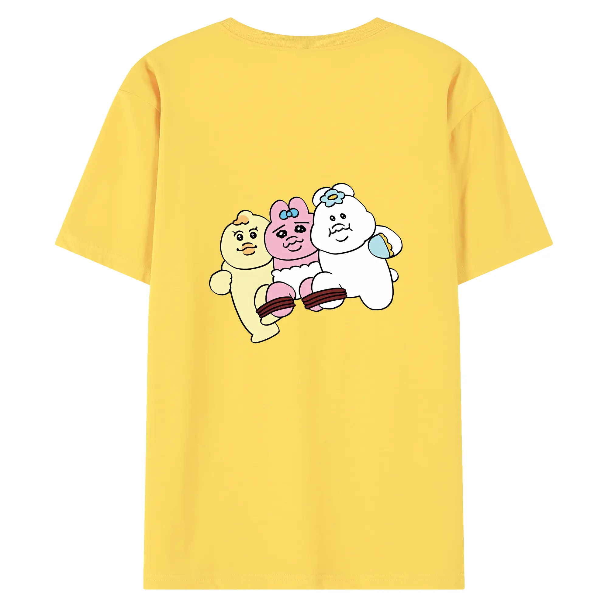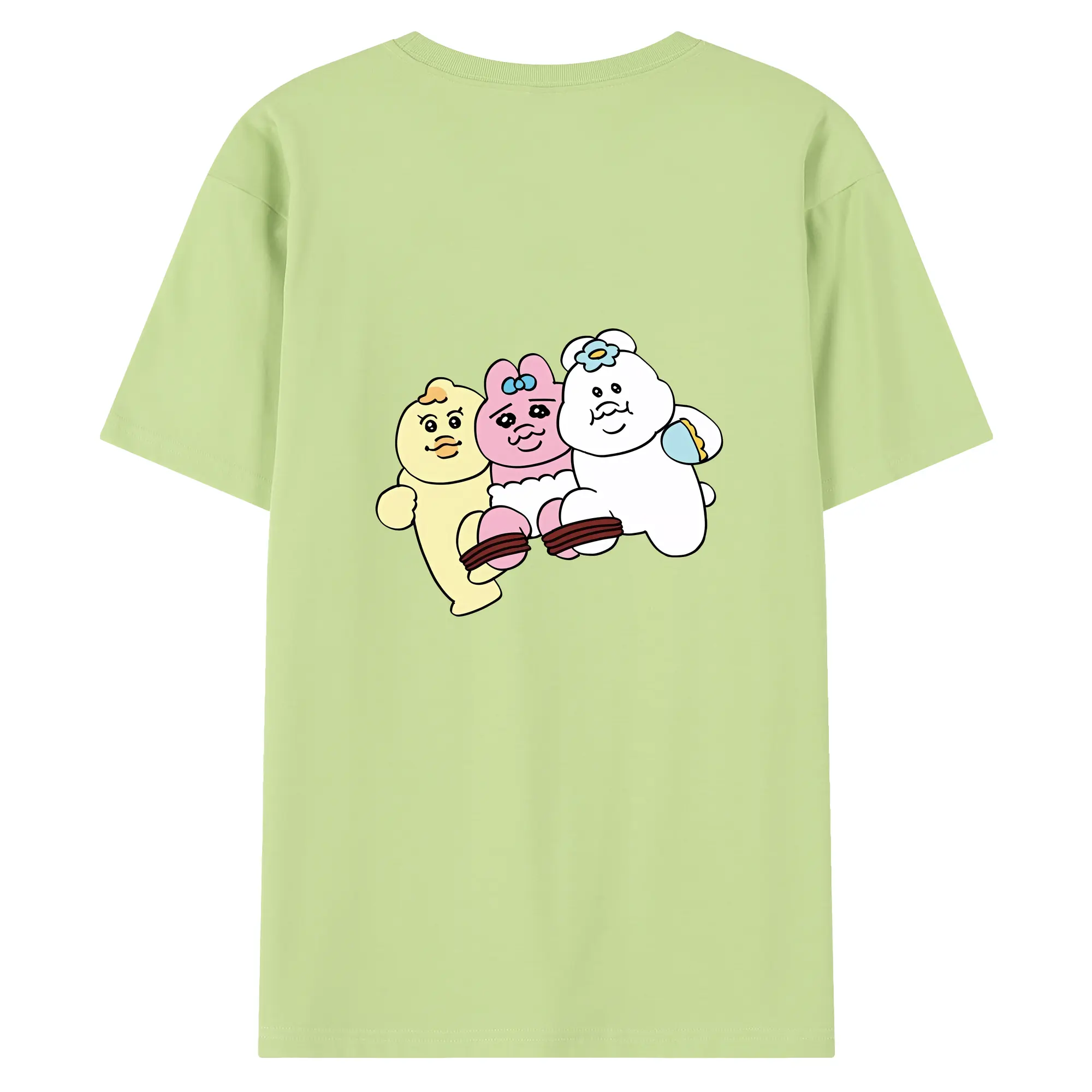おぱんちゅうさぎ グッズ おぱんちゅうさぎ - 綿100% ヴィンテージ風 半袖Tシャツ ・ 背面プリント ・ 柔らか肌触り ・ 通気性 快適 ・ スポーツ カジュアル 外出用