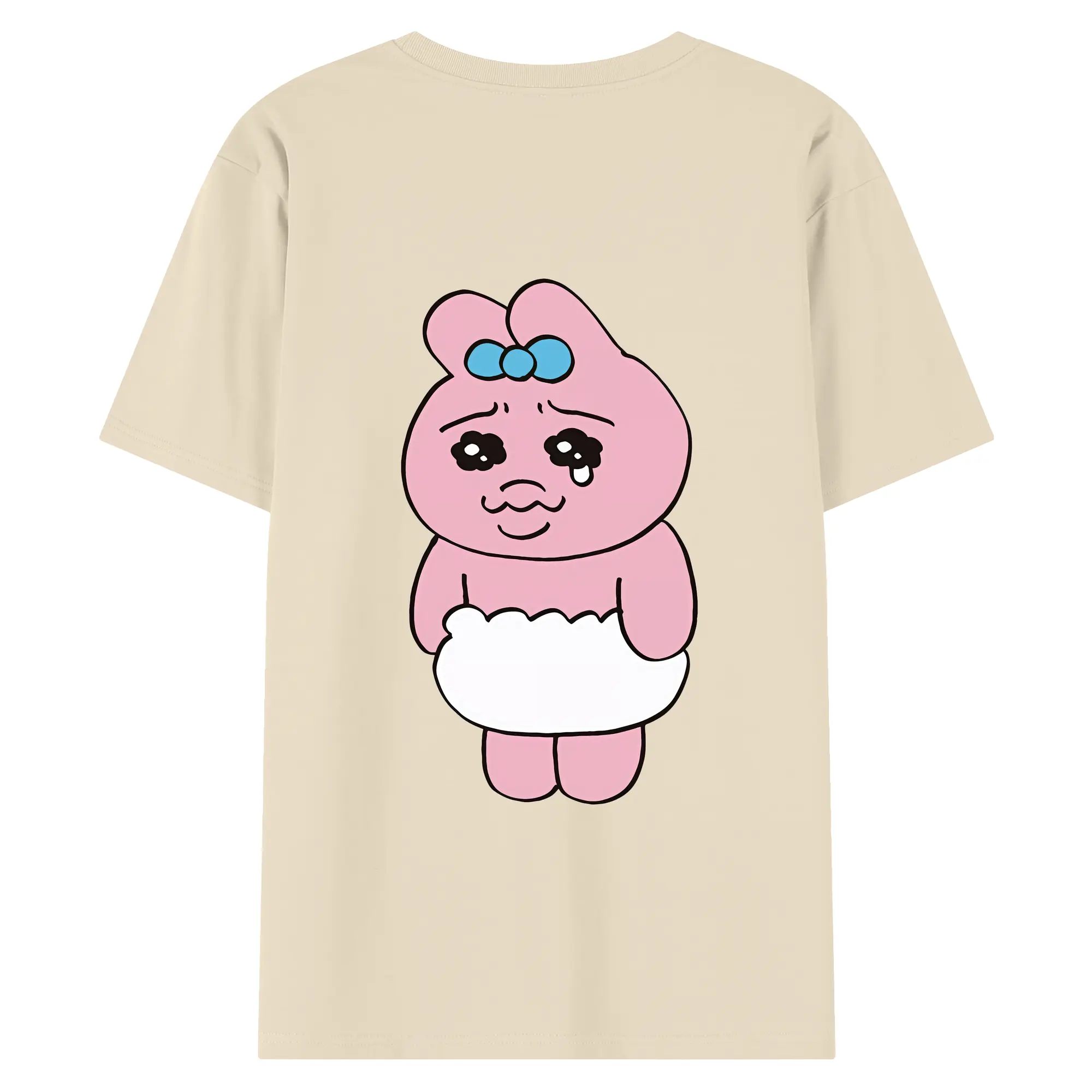 おぱんちゅうさぎ グッズ おぱんちゅうさぎ - 綿100% ヴィンテージ風 半袖Tシャツ ・ 背面プリント ・ 柔らか肌触り ・ 通気性 快適 ・ スポーツ カジュアル 外出用