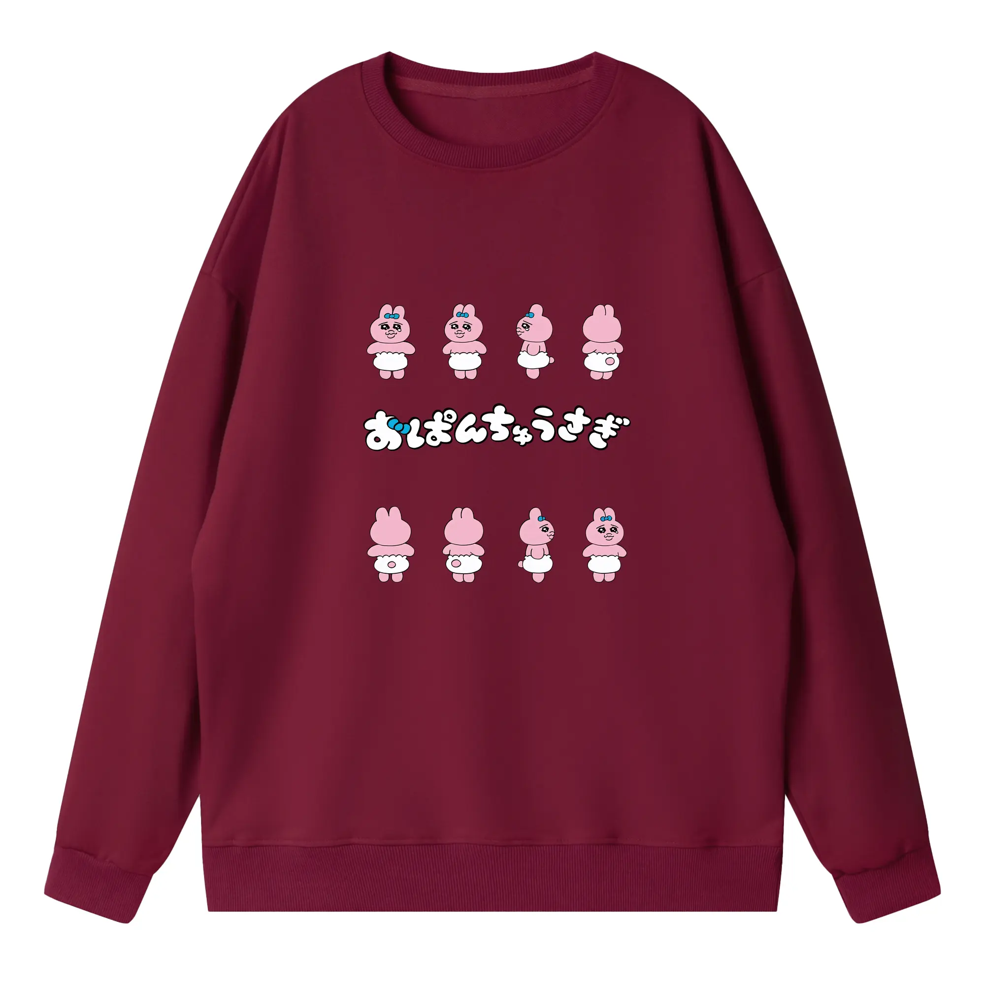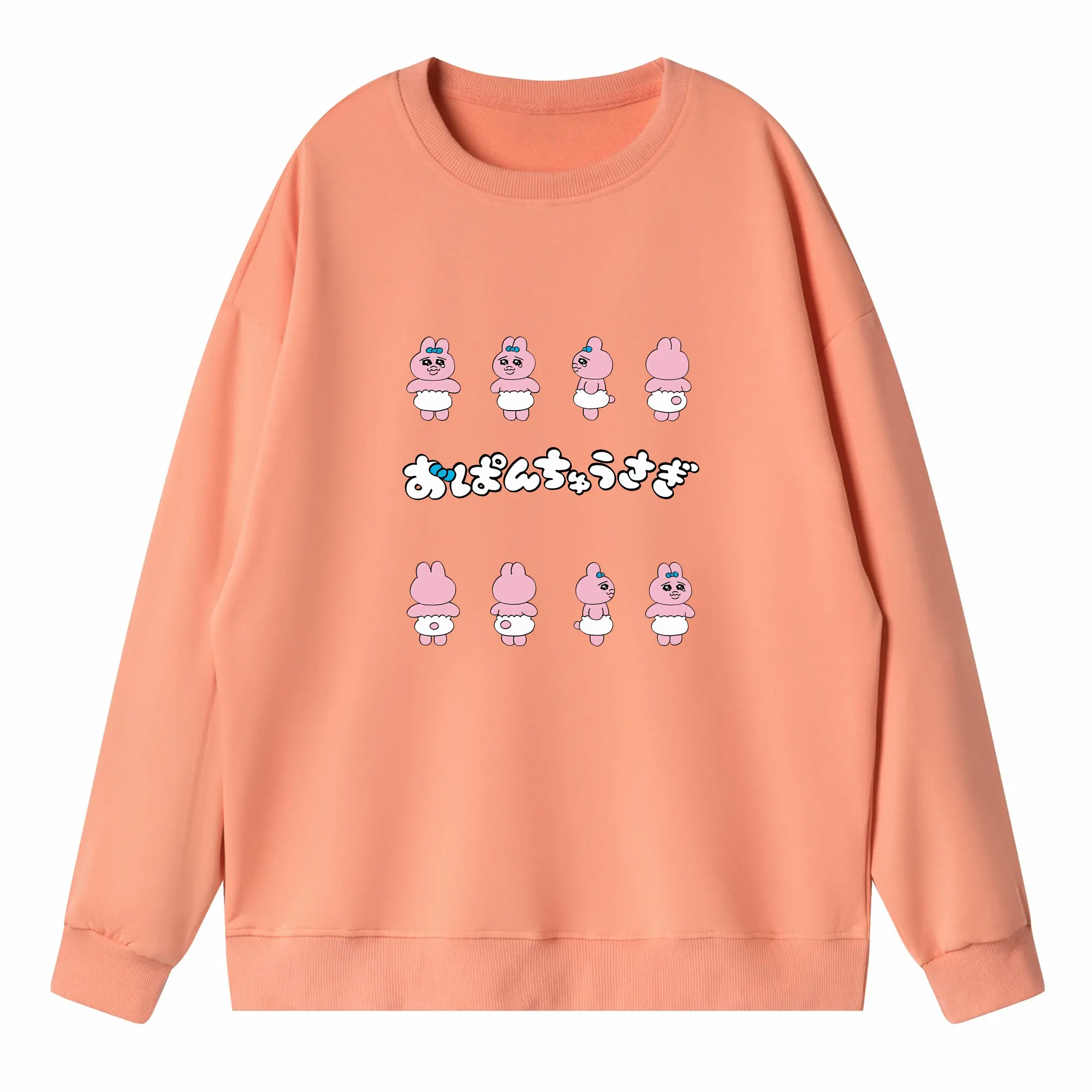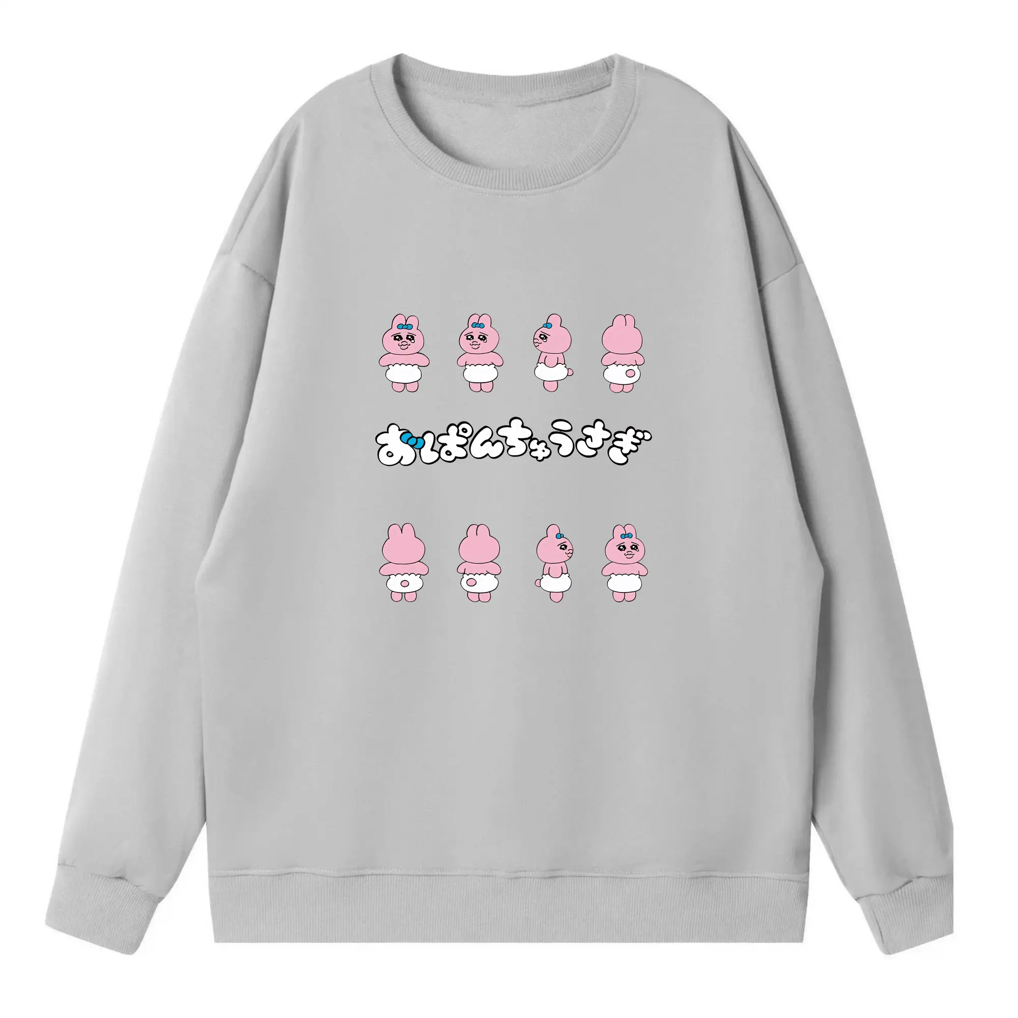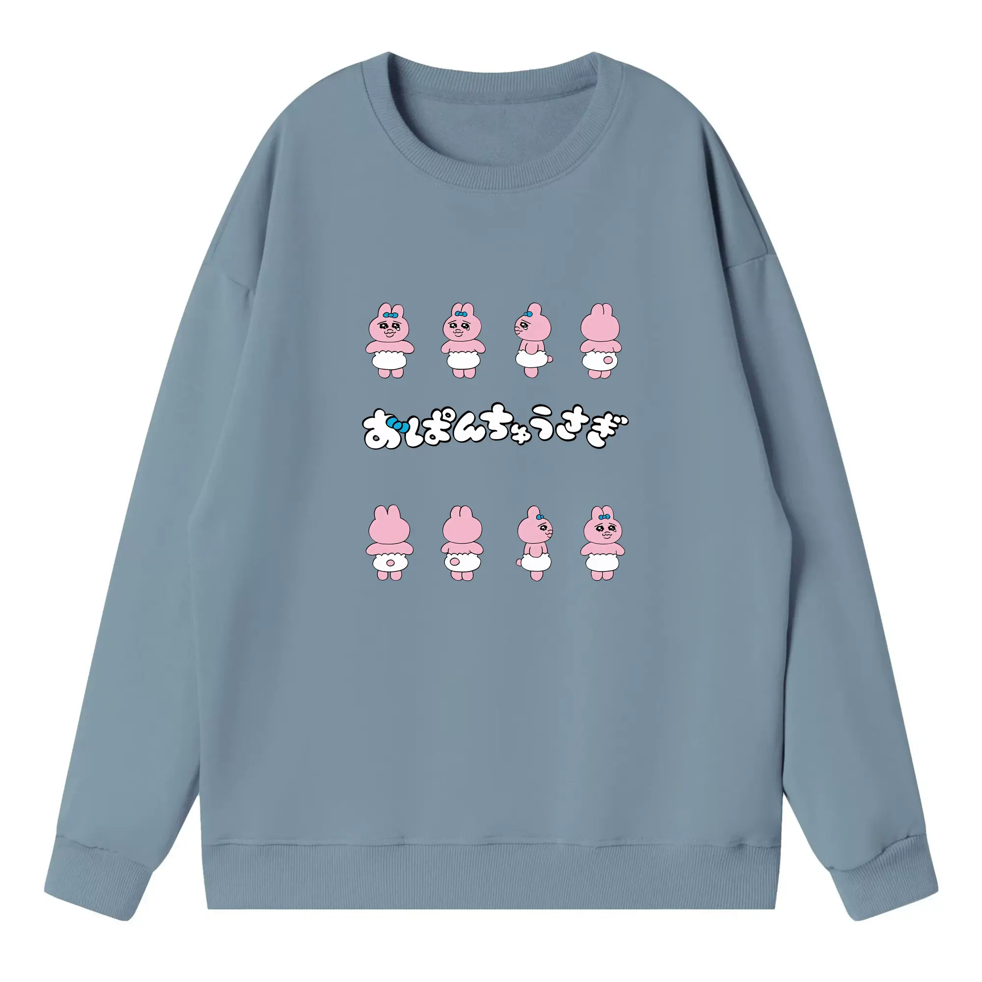 おぱんちゅうさぎ グッズ おぱんちゅうさぎ - 高品質 クルーネック スウェット ・ コットン59% ポリエステル41% ・ ユニセックス 長袖 トレーナー ・ カジュアル デイリー スポーツ 散歩用