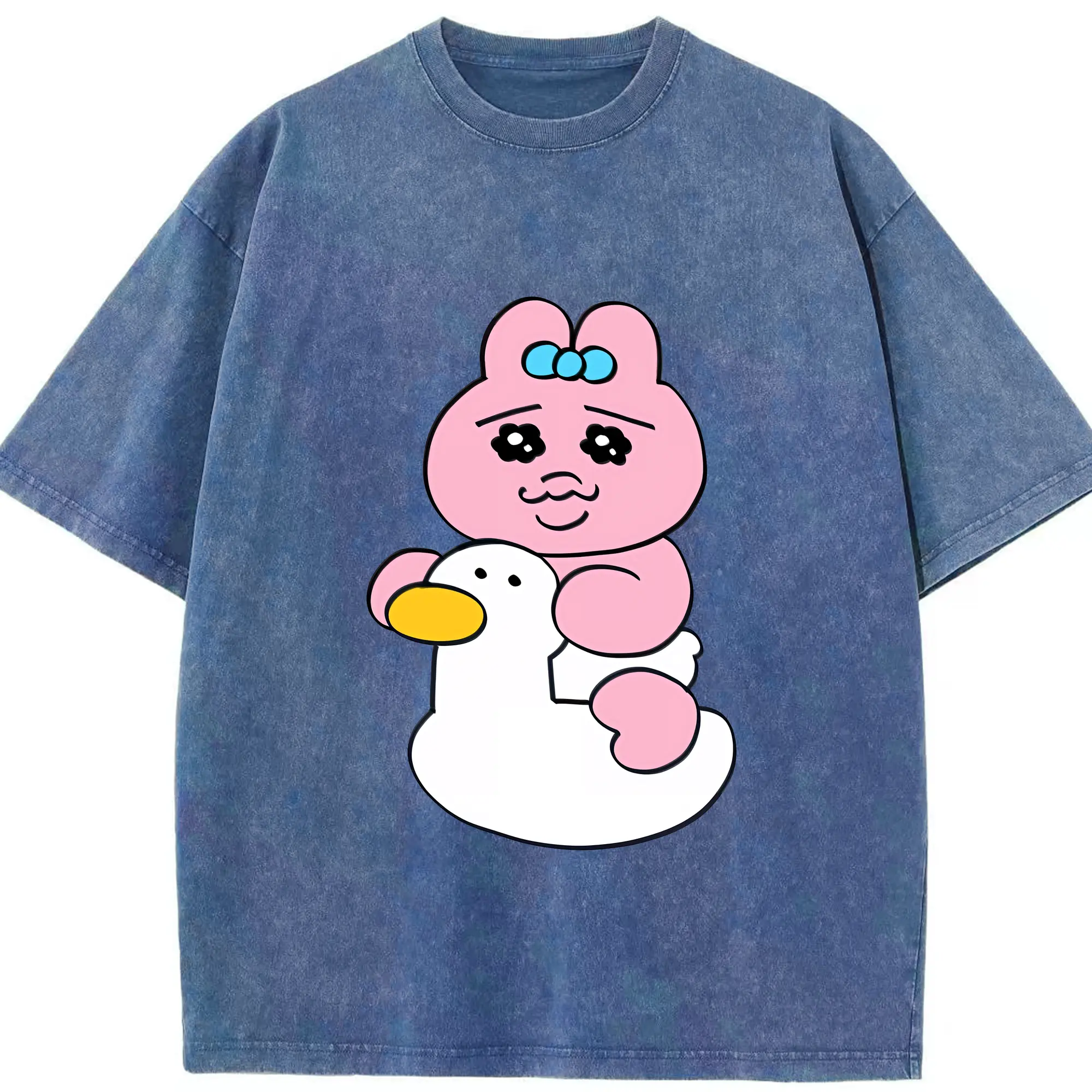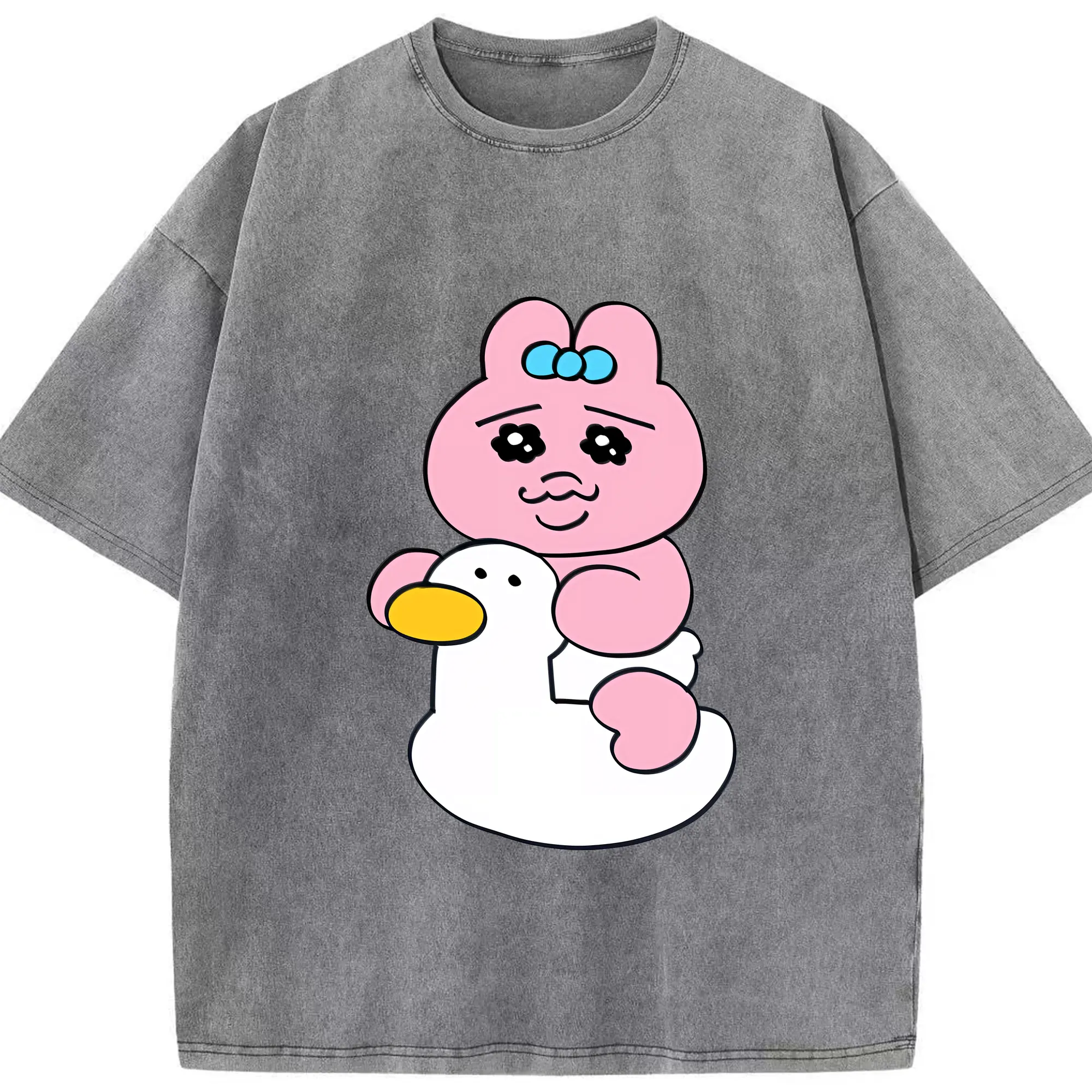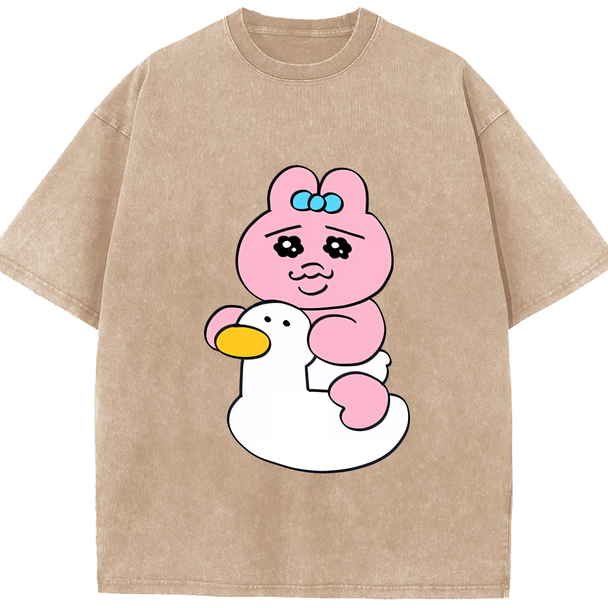 おぱんちゅうさぎ グッズ おぱんちゅうさぎ - 綿100% ヴィンテージ風 半袖Tシャツ ・ 背面プリント ・ 柔らか肌触り ・ 通気性 快適 ・ スポーツ カジュアル 外出用