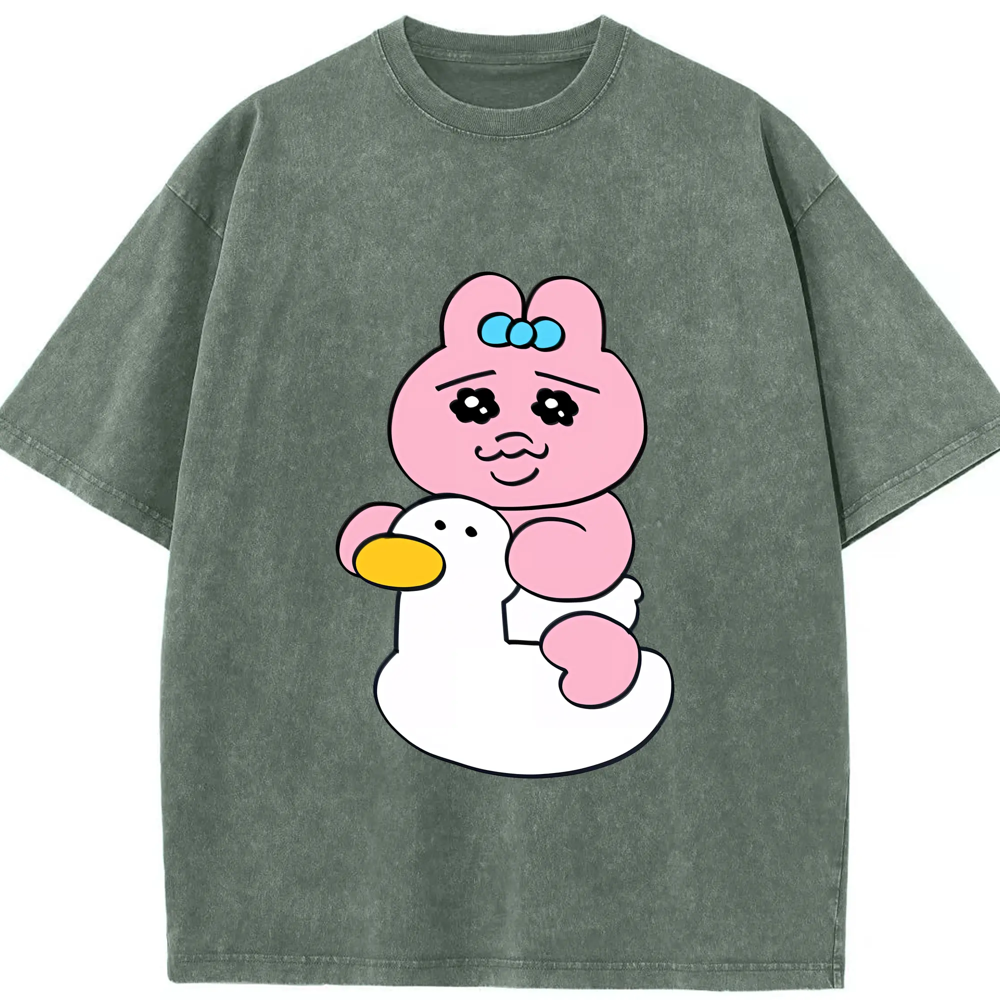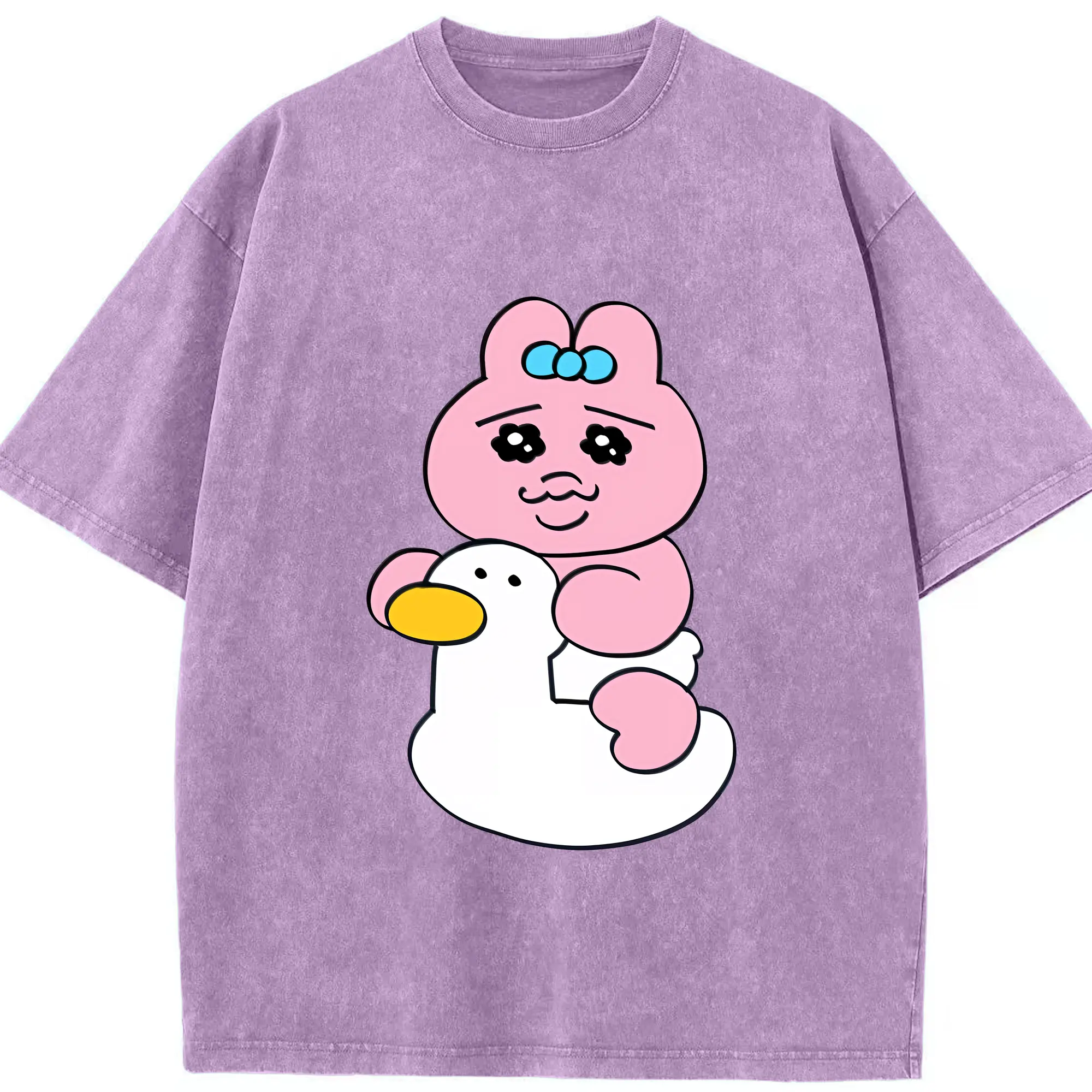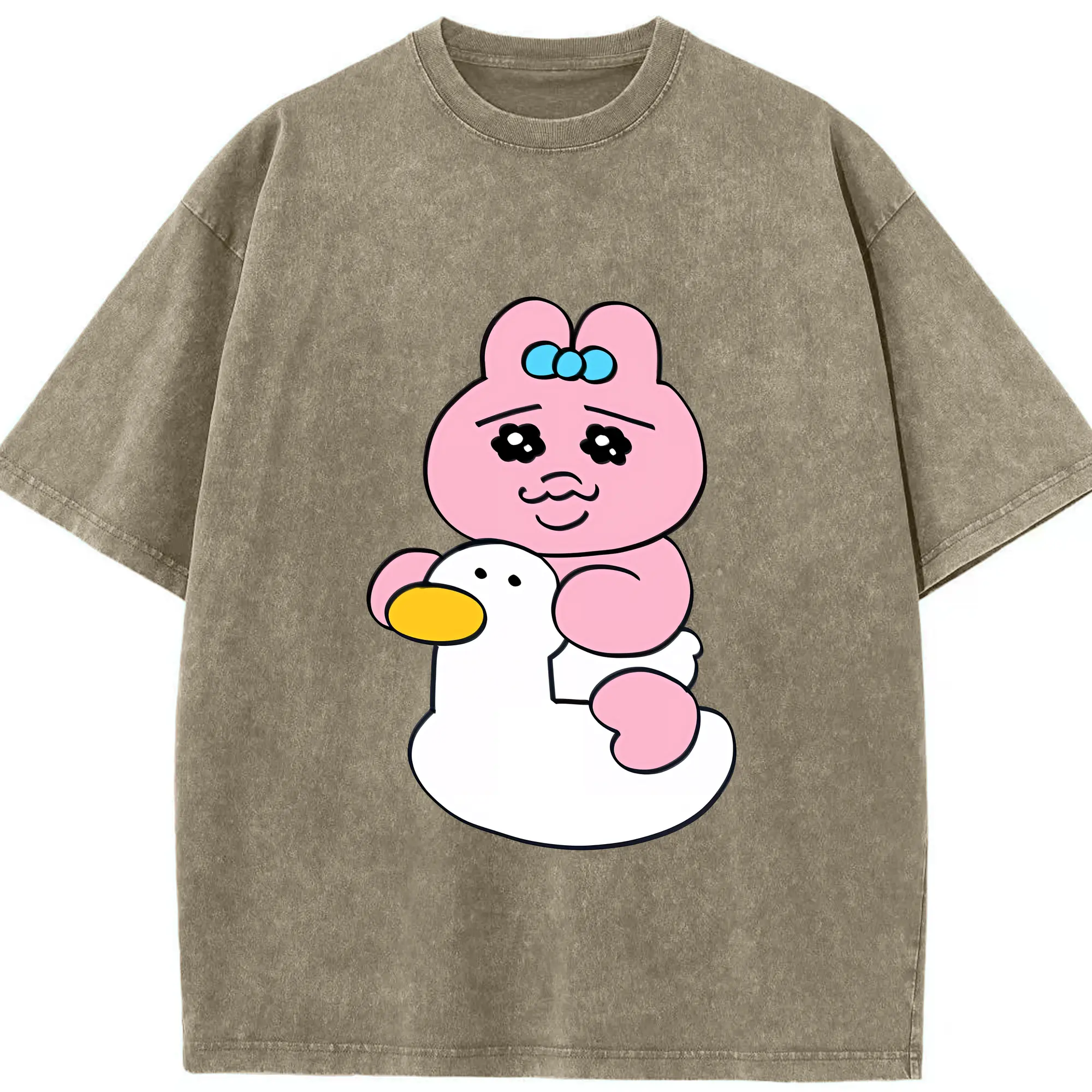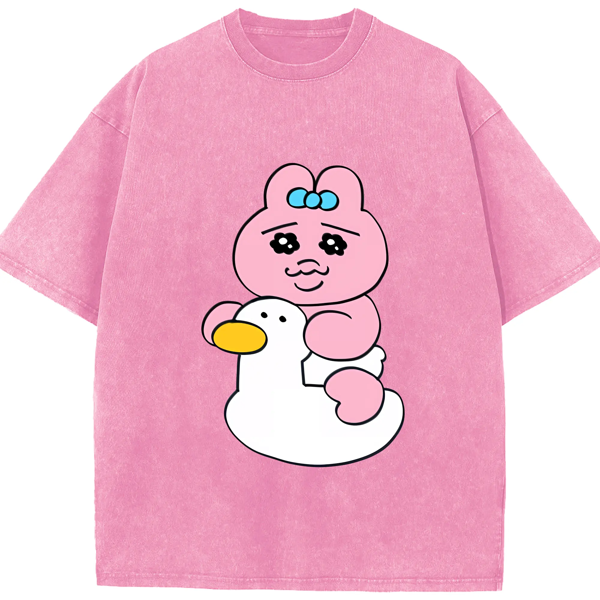 おぱんちゅうさぎ グッズ おぱんちゅうさぎ - 綿100% ヴィンテージ風 半袖Tシャツ ・ 背面プリント ・ 柔らか肌触り ・ 通気性 快適 ・ スポーツ カジュアル 外出用